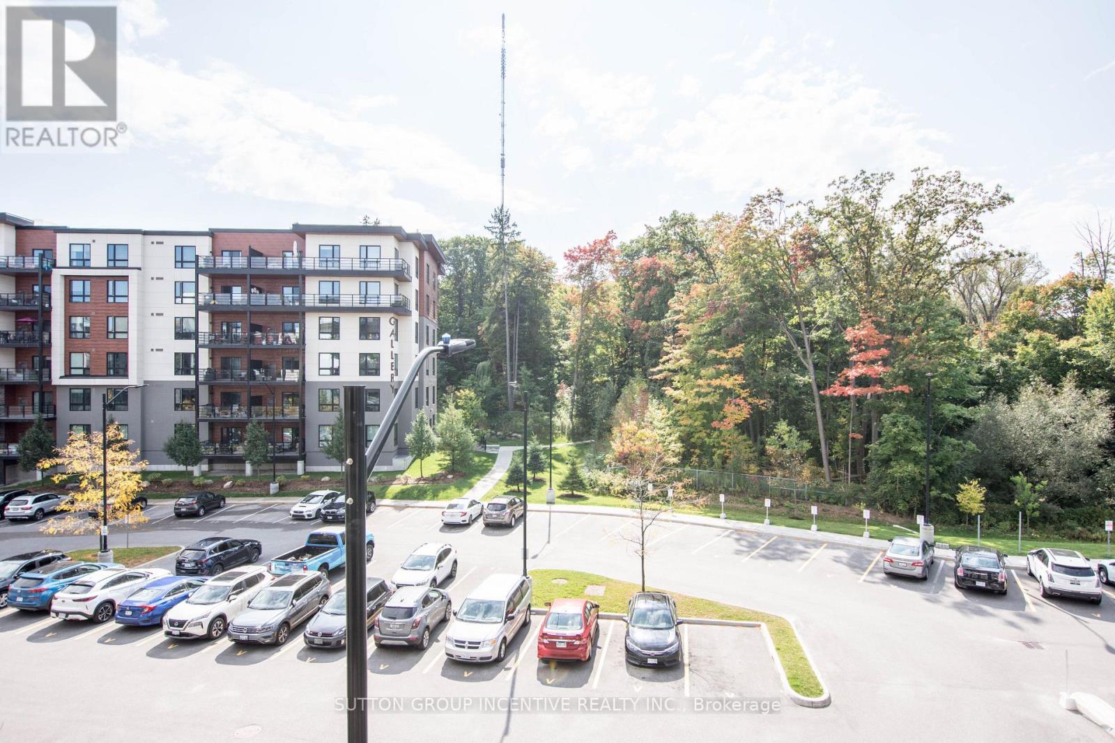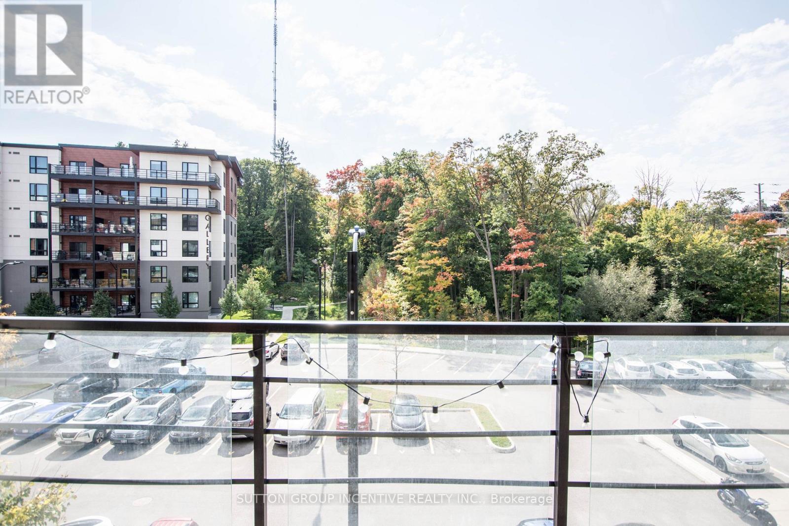 Large principal rooms throughout this well-maintained unit at The Gallery. Spacious living area with walkout to an oversized balcony overlooking a forested setting. Generous sleeping area with large closet. Stainless steel appliances and quartz countertops. Fresh paint and newer flooring in the living and bedroom areas. Located in a landmark art-themed condominium community set on 18 acres of mature forest with walking trails and lookouts. Easy access to Highway 400 for commuters. Crosstown bus service from Mapleview/Park Place to Downtown Barrie and RVH stops right out front. Rare offering with two deeded parking spaces - one underground and one outside. Move-in ready. (42218619)