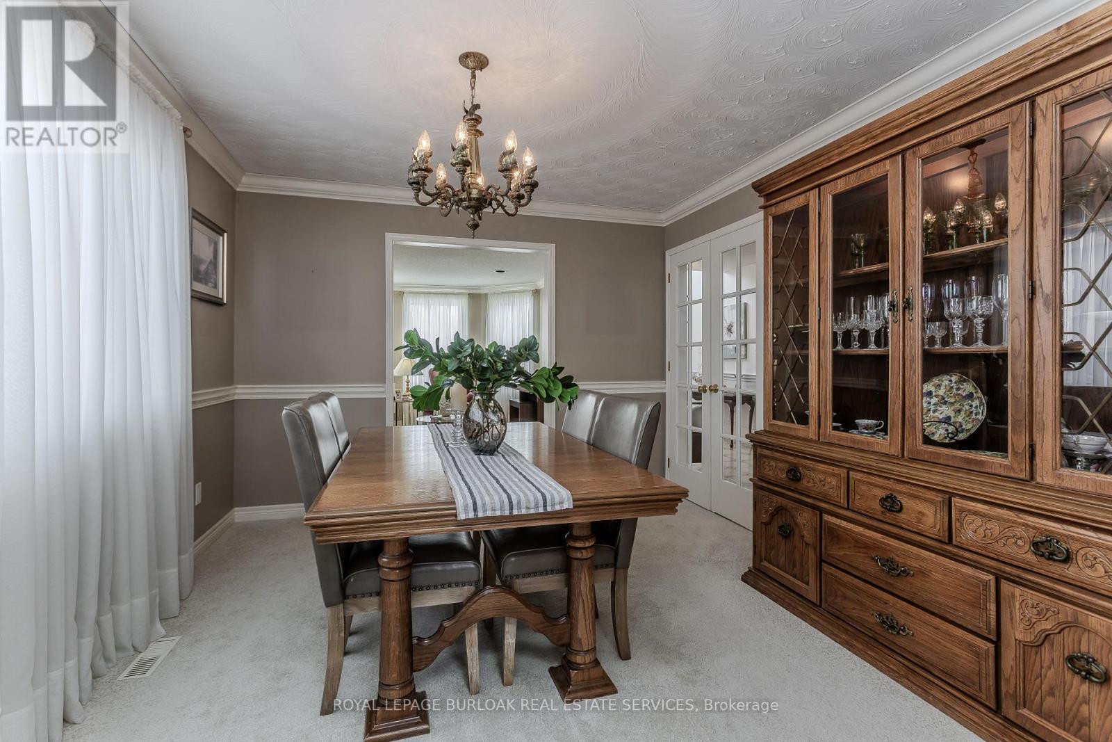 Tucked away on a quiet court in the heart of Stoney Creek Mountain, this exceptional family home sits on a rare pie-shaped lot and offers 3719 sqft of beautifully designed living space. Close to all daily amenities and quick highway access for your convenience. From the moment you arrive, the home impresses with lovely curb appeal, manicured gardens, a 4-car driveway, and a double garage complete with overhead storage and inside entry. The main level offers a warm, functional layout ideal for both everyday life and entertaining. A welcoming living room with French doors, elegant wainscoting, and timeless charm flows seamlessly into the formal dining room, highlighted by a large sun-filled window. The eat-in kitchen is the heart of the home, featuring vaulted ceilings, granite countertops, tile backsplash, stainless steel appliances, rich wood cabinetry with built-in wine storage, and a spacious breakfast area with walkout to the backyard. The family room showcases hardwood flooring and a cozy wood-burning fireplace - the perfect place to gather. A convenient 2pc powder room completes the main floor. Upstairs, hardwood flooring continues throughout. The spacious primary retreat features a walk-in closet and a 4pc ensuite with soaker tub and walk-in shower. Three additional well-sized bedrooms and a 4pc main bathroom provide plenty of space for growing families. The fully finished lower level offers fantastic in-law potential, complete with laminate flooring, a large recreation room, full kitchen, and a 3pc bathroom with walk-in shower - ideal for multi-generational living, guests, or added flexibility. Step outside to your private, pool-sized backyard oasis featuring mature trees for privacy, beautiful landscaping, a concrete patio with pergola, two garden sheds, and plenty of green space for kids and pets to play. A wonderful opportunity to enjoy space, comfort, and a true family-friendly setting in one of Stoney Creek's most desirable neighbourhoods. (42218642)