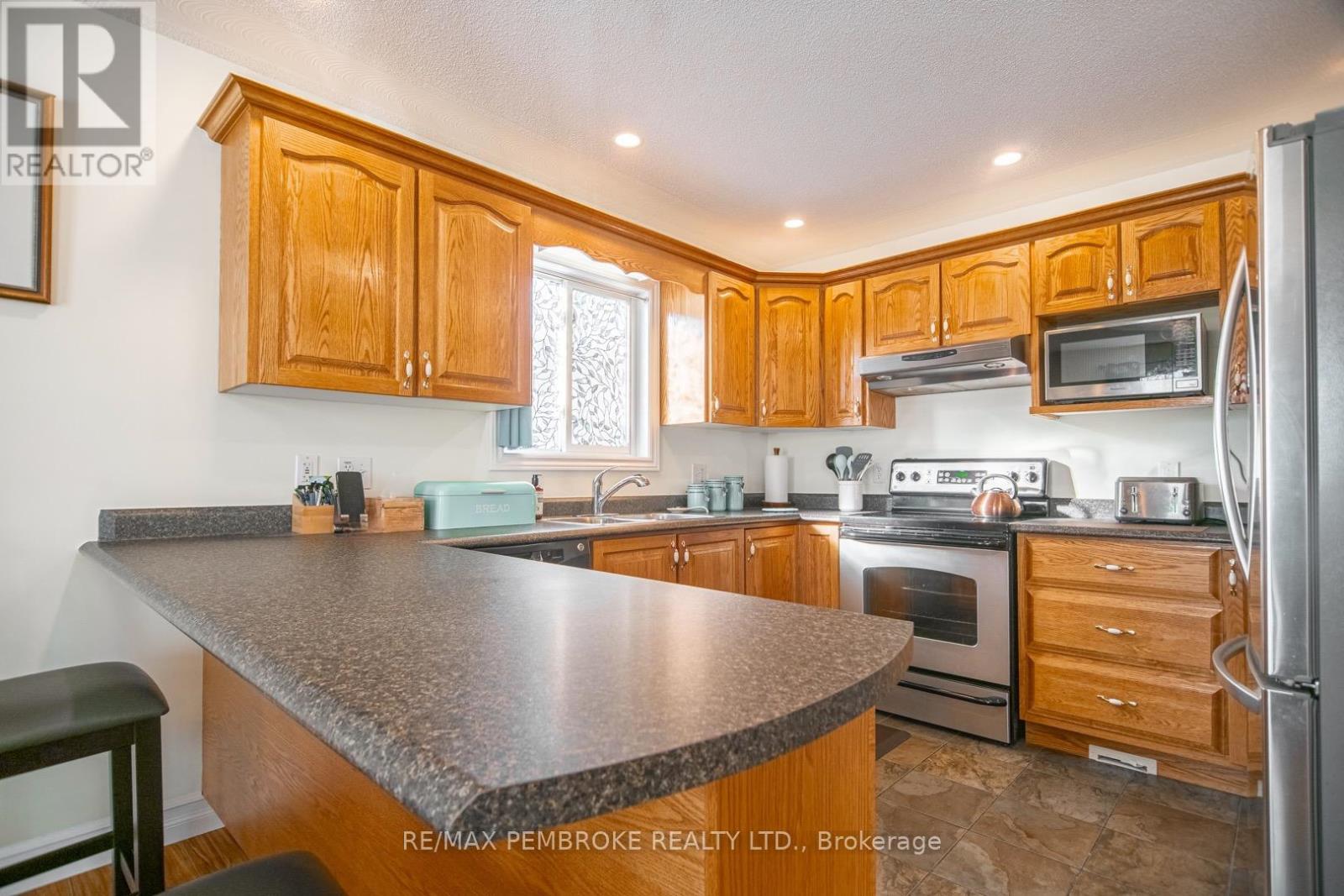 Welcome to this turn-key bungalow situated in the East End of Pembroke. Offering open concept main floor with modern kitchen, large Living room, full bathroom and 2 spacious bedrooms. Lower level has large family room, 2 additional bedrooms and a 3 piece bathroom. Both levels have direct access to expansive garage Private back yard with fencing & hedging with tool shed with hydro. Double wide paved driveway. Efficient Gas heat, Central Air All appliances included. Close to many schools & the Pembroke Regional Hospital. (42218981)