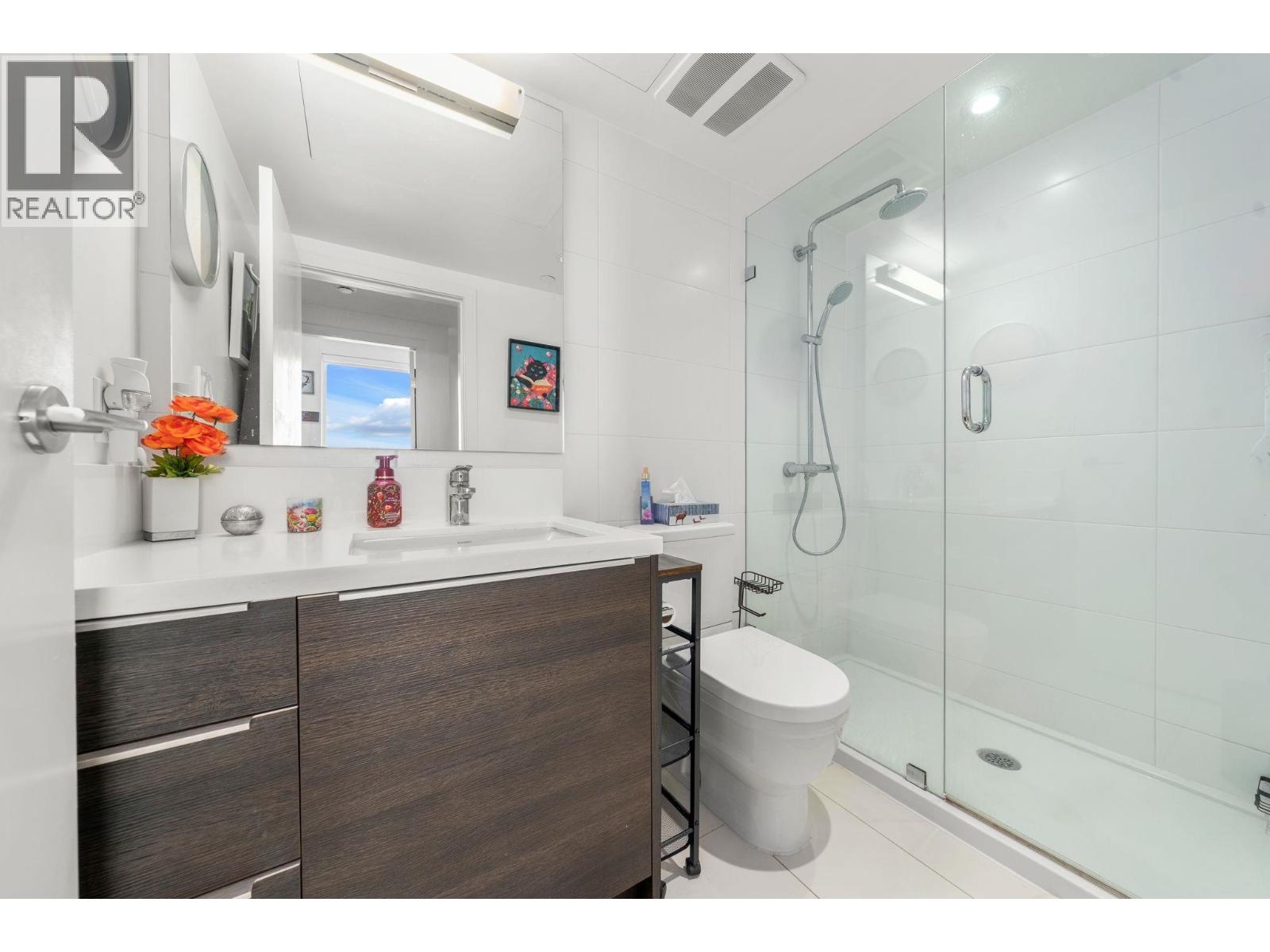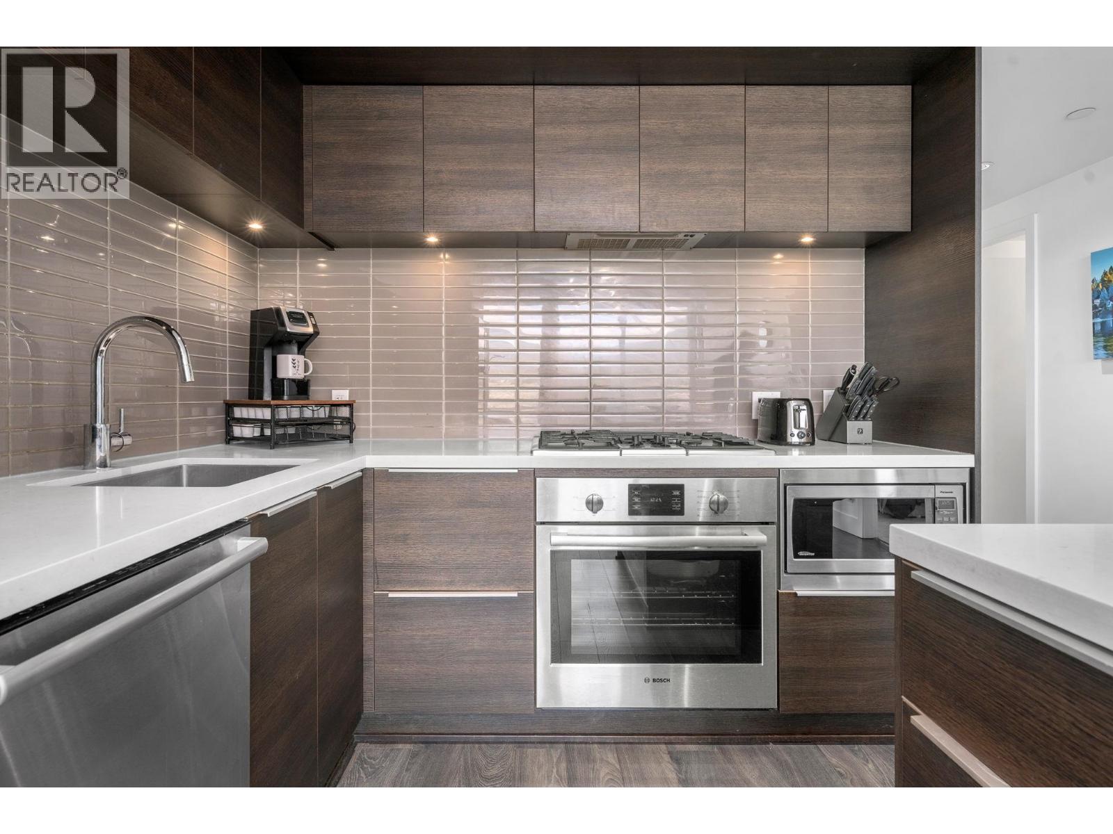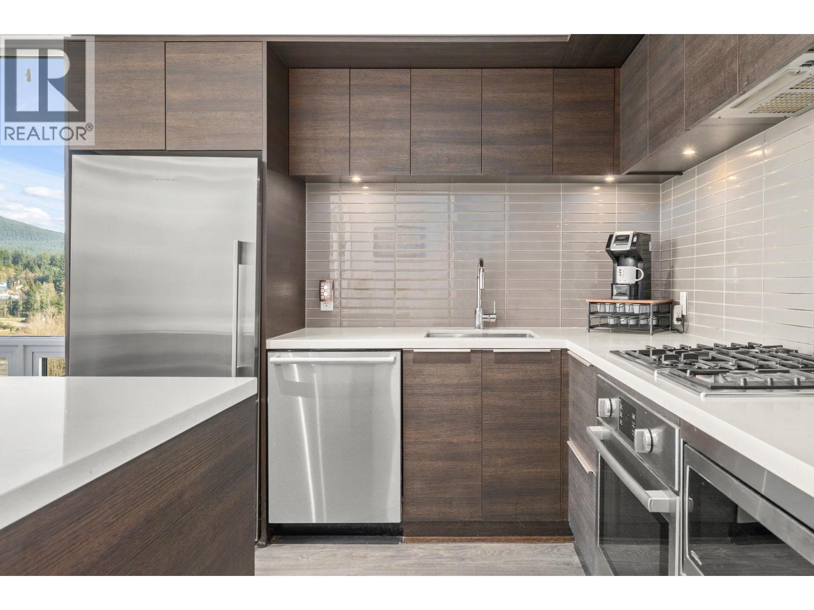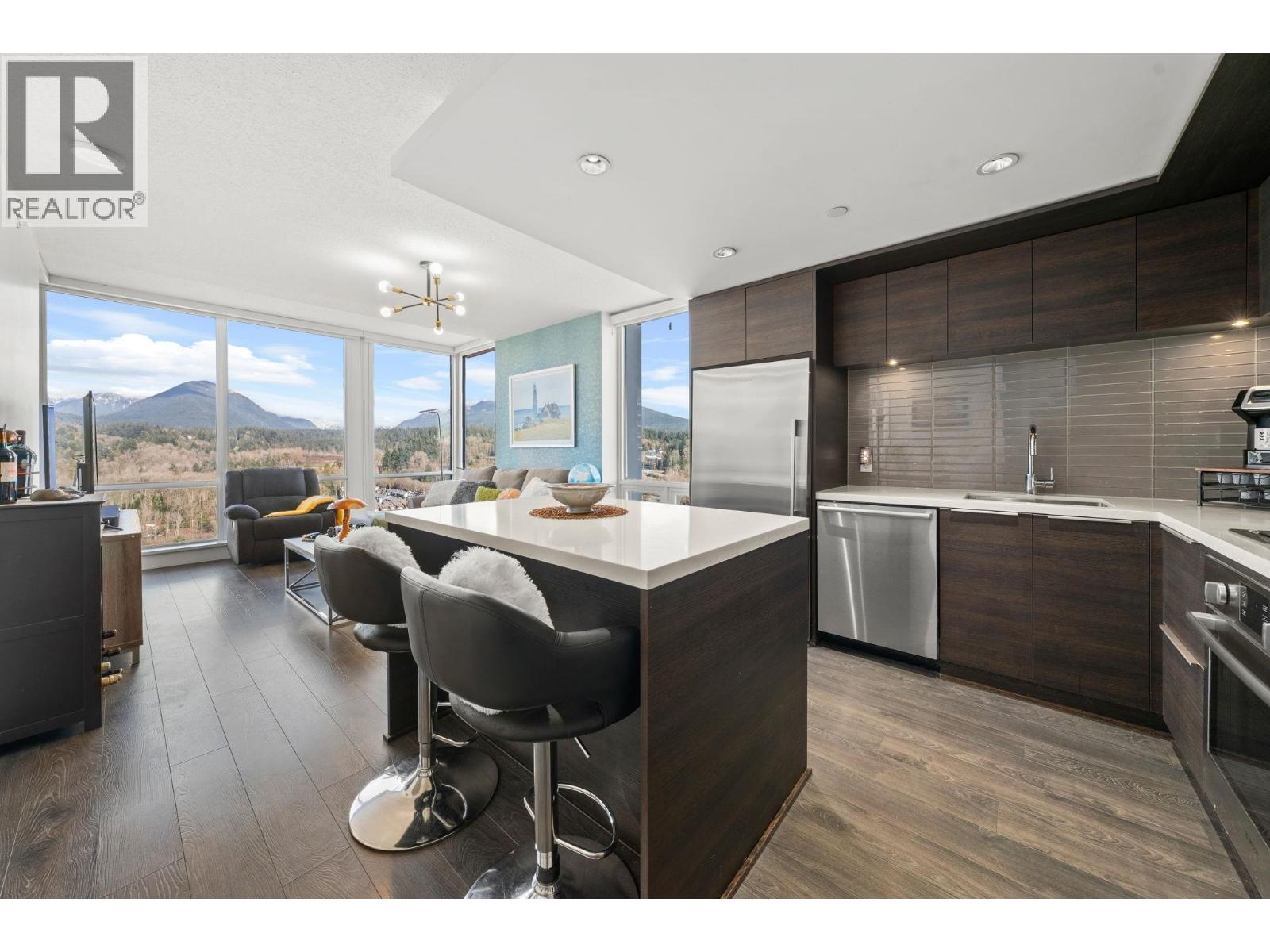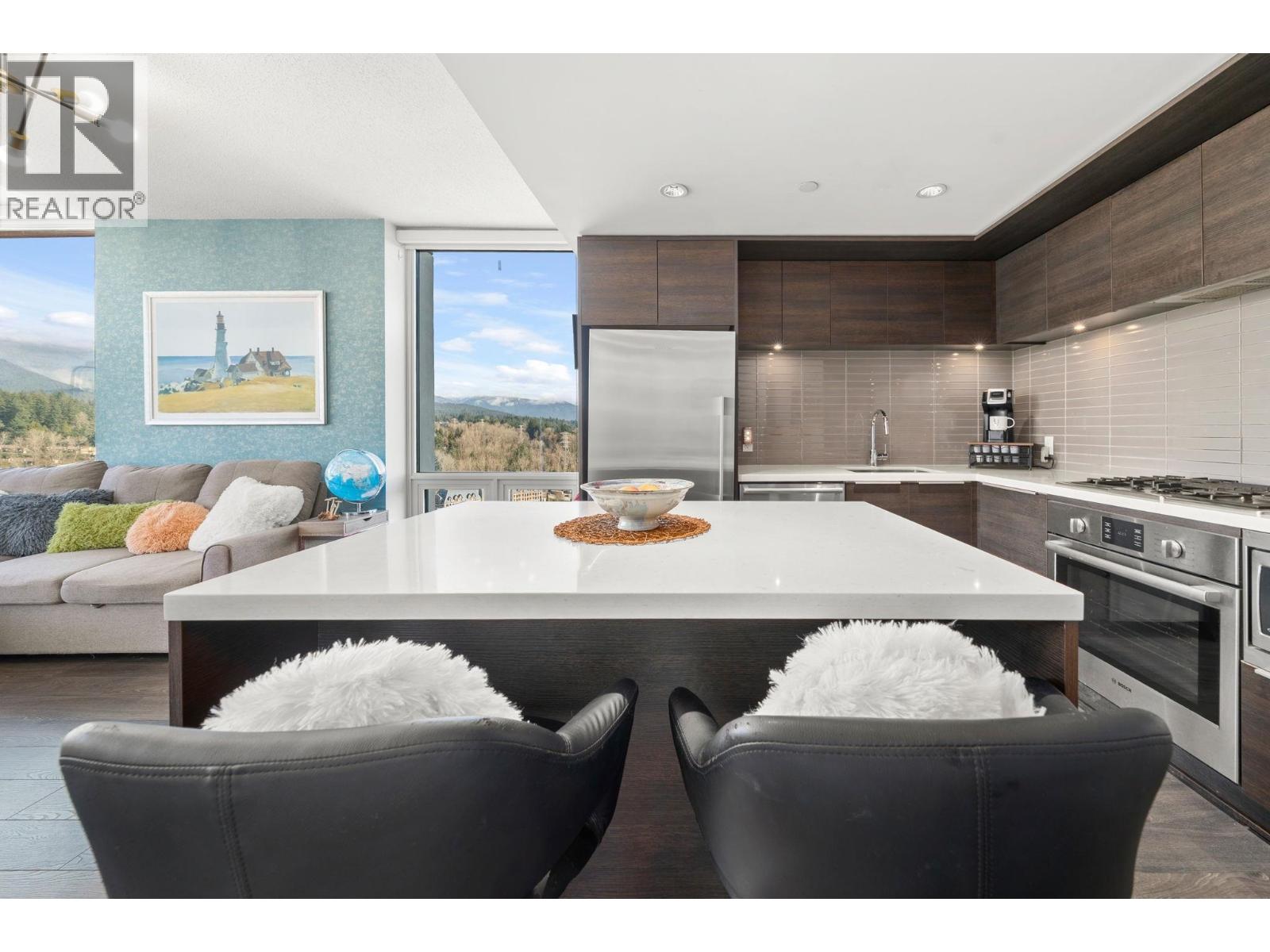 Stunning views of the North Shore's snow capped mountains! This 2 bed 2 bath open concept corner suite features floor to ceiling triple glazed windows throughout, immersing you in mountain views and allowing natural light on two sides of the home. The kitchen is spacious and features a gas range and lots of counter and cabinet space. Excellent layout with bedrooms on opposite sides for additional privacy, plus over $20k in closet upgrades with integrated California Closets in both rooms. The home features geothermal heating and cooling for year round comfort. Enjoy access to Denna Club - 14,000+ sqft. resort-style facility with 25m infinity lap pool, spa, yoga/dance studio, fitness centre, guest suite, daycare, and lounge with full kitchen for private functions. Pet and rental friendly! (32492342)