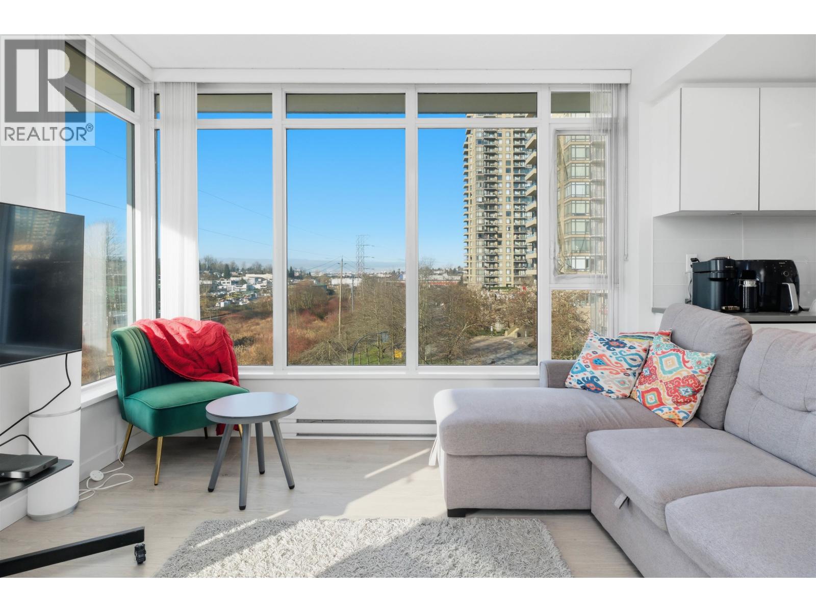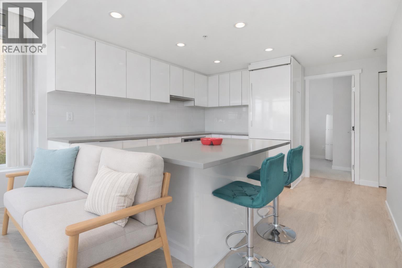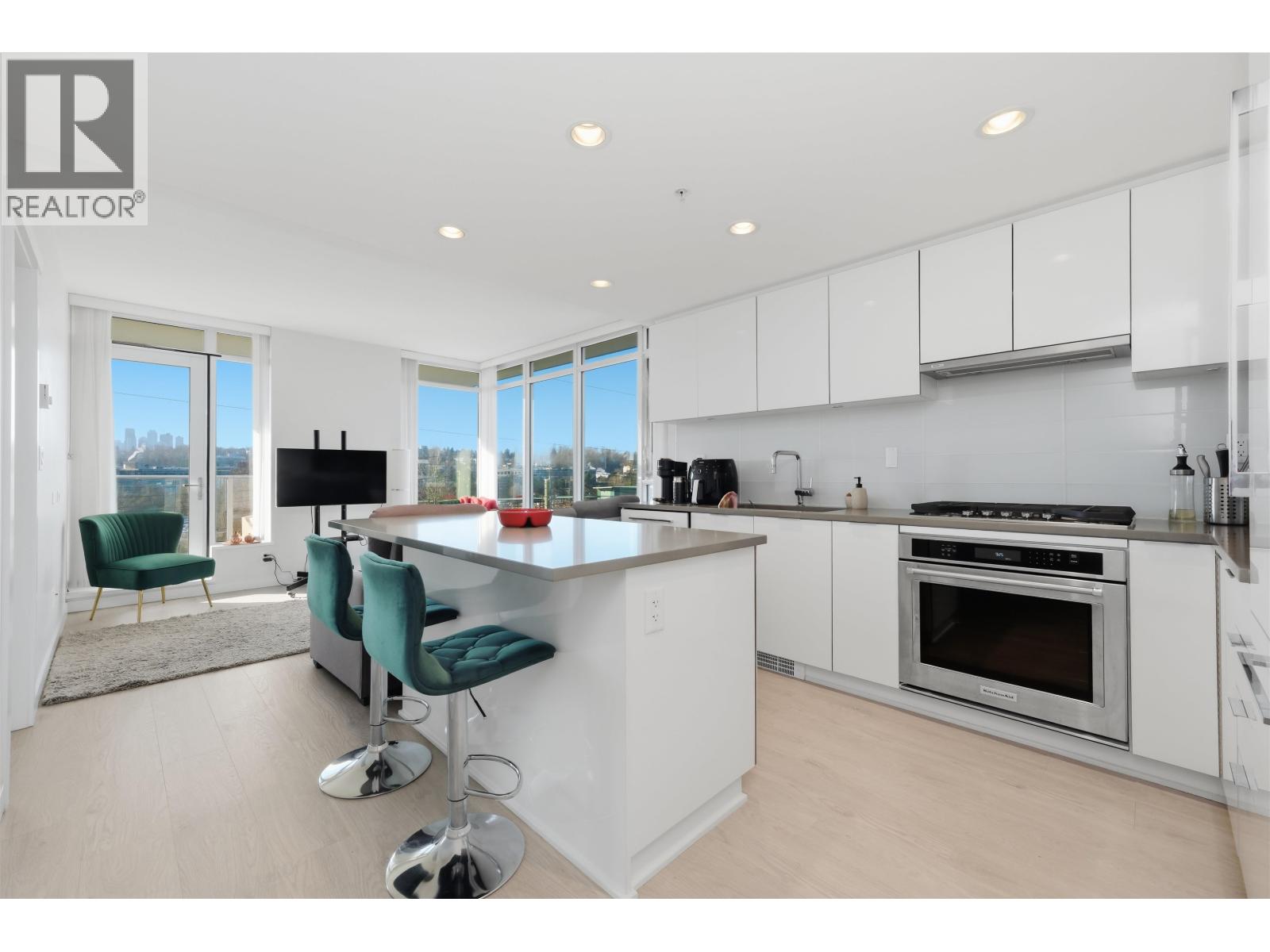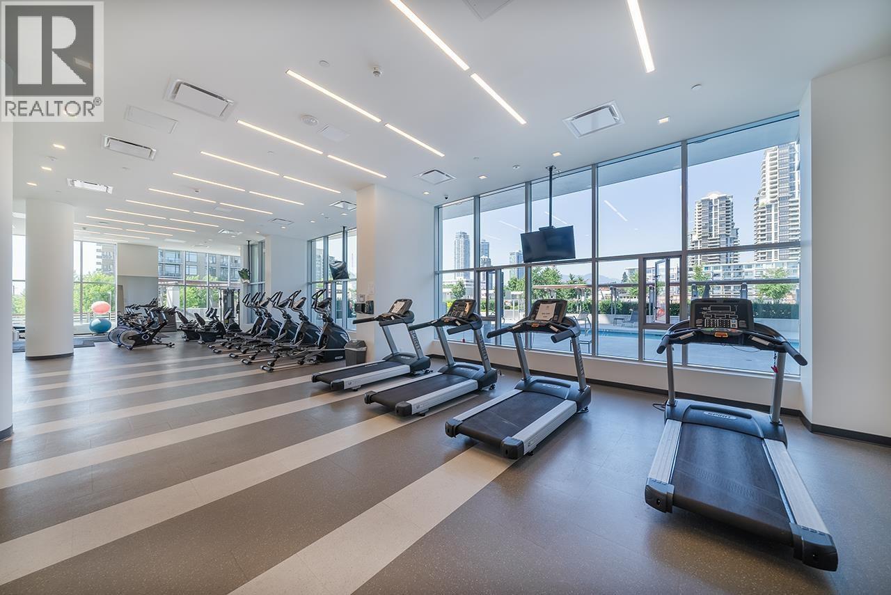 FULTON HOUSE by Polygon. This Southwest corner home offers 2 bedrooms and 2 bathrooms with a bright, open layout and a pleasant outlook. Approximately 800 sq. ft., the thoughtfully designed floor plan provides excellent privacy, with bedrooms positioned on opposite sides of the living area. The L-shaped kitchen features stainless steel appliances, a gas cooktop, and a generous island offering ample counter space. Soaring 9-foot ceilings and expansive windows allow for abundant natural light throughout. Residents enjoy access to the impressive 28,000 sq. ft. Fulton Club, complete with an outdoor pool, hot tub, sauna, and fully equipped fitness centre. Just steps to Gilmore SkyTrain and minutes to The Amazing Brentwood, shops, and restaurants. Includes 1 parking and 1 storage locker (32492382)