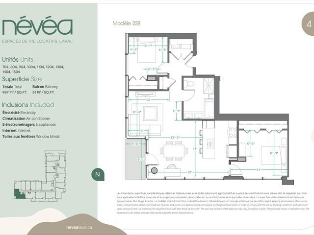 Le Névéa Laval -- L'élégance urbaine réinventée Bienvenue au Le Névéa, une adresse prestigieuse où le raffinement rencontre le confort absolu. Situé au coeur de Laval, cet immeuble signature de 15 étages en béton redéfinit l'expérience locative avec une architecture contemporaine, des espaces lumineux et une ambiance digne des plus beaux hôtels urbains. Ici, chaque détail a été pensé pour offrir un quotidien fluide, serein et inspirant -- un lieu où l'on ne fait pas que vivre... mais où l'on choisit un véritable art de vivre. (40668338)