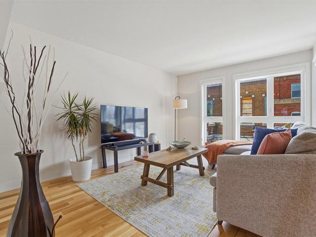 Adieu voisins du dessus, enfin la paix! Superbe 3 ½ traversant au dernier étage, baigné de lumière. Ici, personne ne piétine votre plafond. 58,5 m² optimisés : cuisine ouverte, bain et douche séparés, et le luxe d'une salle de lavage. Inclus : votre stationnement et un locker en sous-sol. La copropriété de 6 unités est gérée comme une horloge suisse (budget, plan de gestion etc. Rare: 2 balcons: Un café à l'arrière le matin, et la détente au soleil en fin de journée. C'est ça, la belle vie. Un petit bijou calme, rare et prêt pour vous ! (50547215)