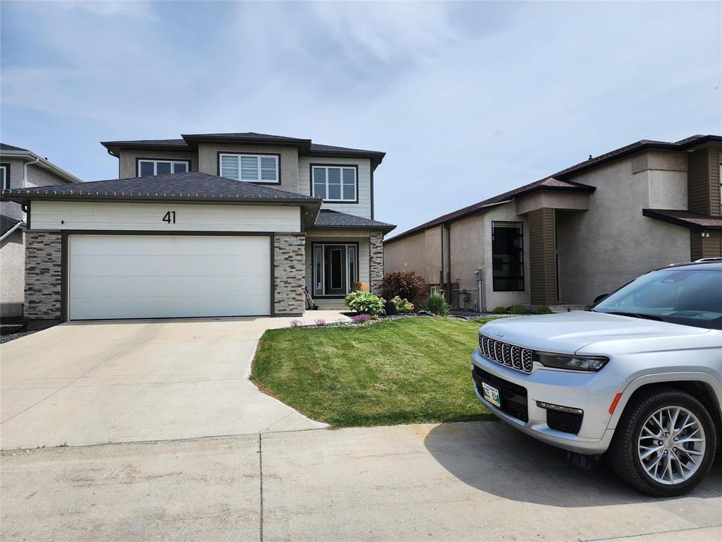 1R//Winnipeg/SS now! Offers as received. All measurements are +/- Jogs.Welcome to 41 Eaglewood Drive in the desirable community of Prairie Pointe! This stunning 2017-built, 1,832 sq. ft. two-storey former Signature Homes show home offers style, space, and quality throughout. The main floor welcomes you with an impressive 18-ft high ceiling foyer, a huge living area filled with natural light from large windows, a modern kitchen with quartz countertops, a spacious dining area, and a convenient half bathroom quartz counters continue throughout the entire home. Upstairs features a huge primary bedroom with its own attached ensuite, two additional generously sized bedrooms, and a full bathroom. The unfinished basement provides a fantastic opportunity to design and customize the space to suit your needs. Step outside to enjoy the huge deck and fully fenced backyard, perfect for entertaining, along with an attached double garage for added convenience. This beautiful home truly has it all! (232002384)