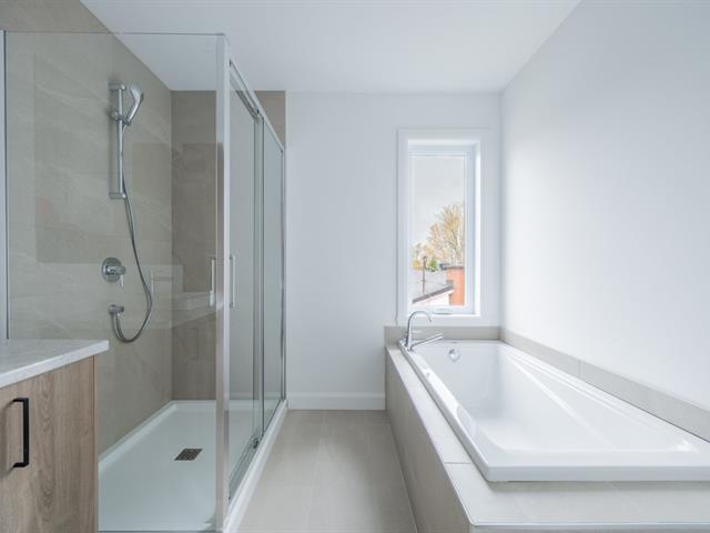 Bi-familial jumelé cottage 22X32 pieds, 3 chambres à coucher à l'étage, walk-in + une garde-robe à la chambre principale, petit walk-in à la 2ème chambre à coucher, escalier de bois, céramique 12x24, armoires jusqu'au plafond, bain podium, douche indépendante en céramique, installation laveuse/sécheuse au sous-sol. Frais de copropriété 120$/année. Plan parcellaire et nouveaux lots à venir. Les photos sont à titre indicatif GST/QST must be added to the asking price (55666695)