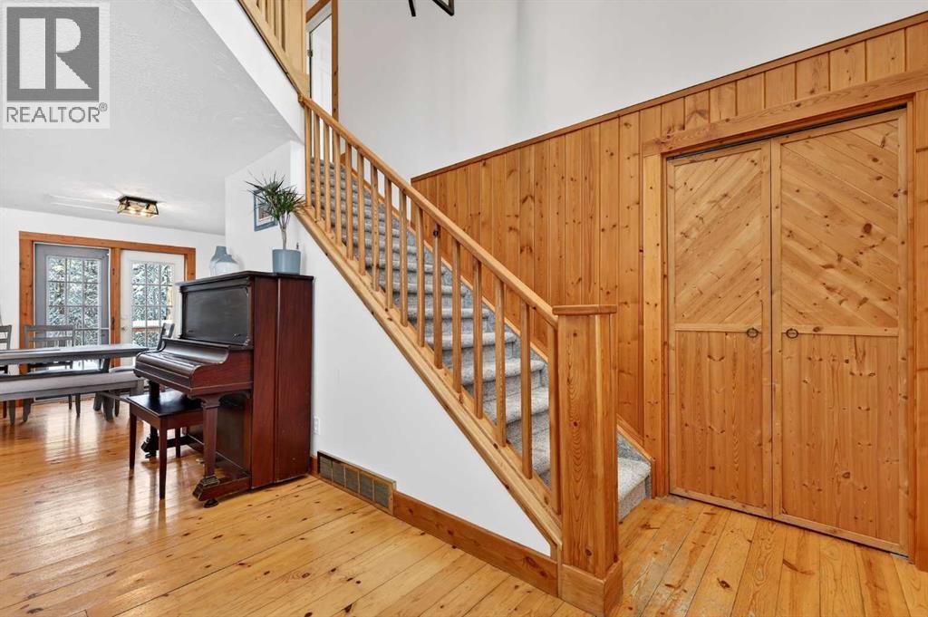 Open House Saturday February 28th at 10am to 12 noon. Charming country home located on a quiet acreage backing onto the Creek in the Wild Rose Estates area of West Bragg Creek. Imagine relaxing on your front covered porch, coffee or wine in hand and enjoying the sounds of nature surrounding you and your picturesque country farmhouse. Walking in, the vaulted foyer welcomes you to the large living room featuring a wood stove surrounded by brick. Rustic hardwood floors lead you to the dining area and country kitchen with artisan cabinetry and tiles, and stainless-steel appliances including a gas stove. The main floor family room off the kitchen is streaming with natural light, a wood burning fireplace and lots of lovely built-ins, waiting for memories to be made. The side entrance has a large and functional terracotta tiled mud room. Off the mud room is the well-lit office, a nice space for working, and one of the many bedrooms of the house, is currently being used as a gear room – so functional to be able to bring the bikes and skis into this ground level room. There is access off to the rear of the house and the main level 3-piece bathroom leading to the living room, perfect for any extended family to stay in that portion of the house. Walk upstairs to the bright, vaulted master suite with cozy sitting nook, ensuite and walk in closet. There is a peaceful feeling a person gets with the view out of your bedroom window into the tree canopy. The 2nd bedroom upstairs is currently being used as a home office with 4-piece bathroom out its door. Then the 3rd upper bedroom, a very large space indeed, is also vaulted and can serve as a gorgeous sleeping and hang out space for kids or guests alike. What a cool space this home is! The undeveloped basement features lots of storage, laundry area, workout space, and your finishing touches to make it how you want. Updates to the home in the last handful of years are substantial and include: new roof (2021), new sump pump (2025), n ew hot water tank (2025), new in-floor heating system and boiler (2023), new oven (2021), new Fridge (2021), main floor paint (2021), new upstairs carpet (2026), main floor bedroom and office new flooring (2024). With ongoing service and maintenance of property systems having the 2 furnaces cleaned and serviced (2025), Water System Services - ION filters (2023), storage tanks (2025), reverse osmosis (2025), well shock (2025), septic cleaned (2025), chimney and fireplaces cleaned (2025). A huge bonus, there is fibre optic to the property. The oversized double detached garage has lots of space for some toys and yard maintenance tools. The beautiful outdoor living space including a back deck, front porch, firepit, lawn area and woodlands leading down to the creek. The Wild Rose community has a lovely, shared lake, tennis courts and community firepit. If the meandering driveway didn’t sell you on the way in, it will be the cherry on top when you leave. (31687023)