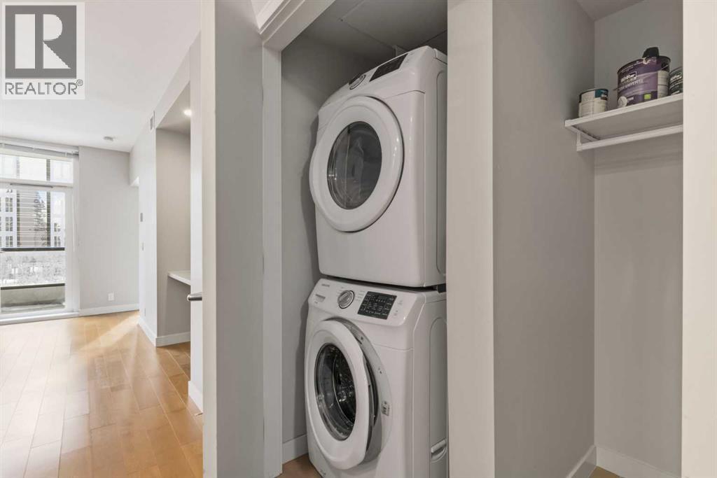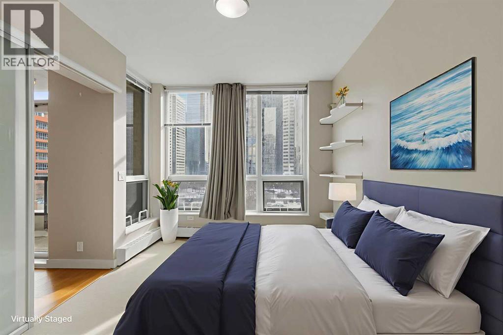 Step into elevated inner-city living in the sought-after Flats Tower at Waterfront, where contemporary design meets everyday comfort in one of Calgary’s most vibrant downtown settings. This well-appointed 2 bedroom, 2 bathroom condo offers a bright, airy layout enhanced by soaring 9-foot ceilings and expansive floor-to-ceiling windows that flood the space with natural light while showcasing dynamic city surroundings. Designed with both style and functionality in mind, the open-concept living space flows seamlessly from the kitchen to the dining and living areas, creating an inviting environment for entertaining or unwinding at home. The sleek kitchen is beautifully finished with quartz countertops, a generous central island, full-height cabinetry, and a premium stainless steel appliance package that will impress any home chef. Clean lines and modern finishes throughout add to the home’s refined yet comfortable appeal. Both bedrooms are thoughtfully positioned to provide privacy and flexibility, ideal for professionals, small families, or guests. The primary suite offers a relaxing retreat, while the second bedroom works perfectly as a guest room or home office. Additional highlights include in-suite laundry, air conditioning for year-round comfort, an assigned parking stall, and a dedicated storage locker for added convenience. Residents of Waterfront enjoy access to an exceptional collection of resort-inspired amenities that enhance daily living. From professional concierge service and a fully equipped fitness centre to a rejuvenating hot tub and sauna, every detail is designed to support a balanced lifestyle. Entertain friends in the social lounge, host movie nights in the private theatre, or unwind outdoors in the beautifully landscaped garden patio. Visitor parking and an on-site car wash further add to the ease of ownership. Perfectly situated along the Bow River, this prime location offers direct access to scenic walking and cycling pathways, with Princess Isl and Park just moments away. Enjoy the convenience of being within walking distance to downtown offices, Chinatown, Eau Claire Market, East Village, and an array of shops, cafés, and restaurants that define Calgary’s urban experience. Whether you’re a first-time buyer seeking a sophisticated start, a professional craving walkable city living, or an investor looking for a desirable addition to your portfolio, this impressive condo delivers an exceptional opportunity to experience the best of waterfront living in the heart of the city. (31687986)