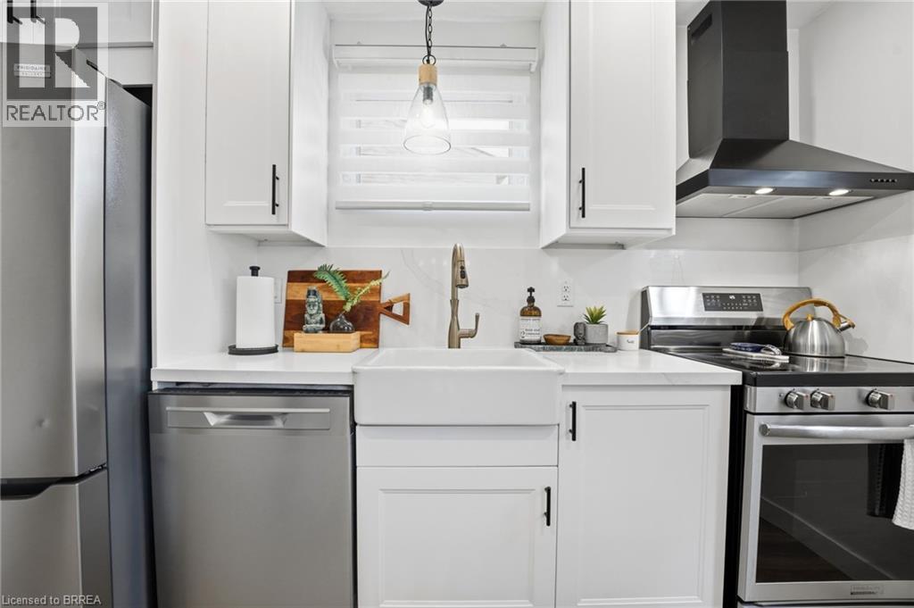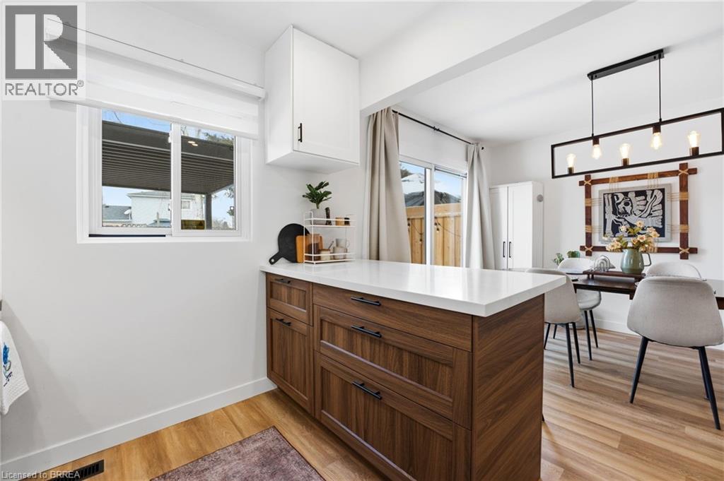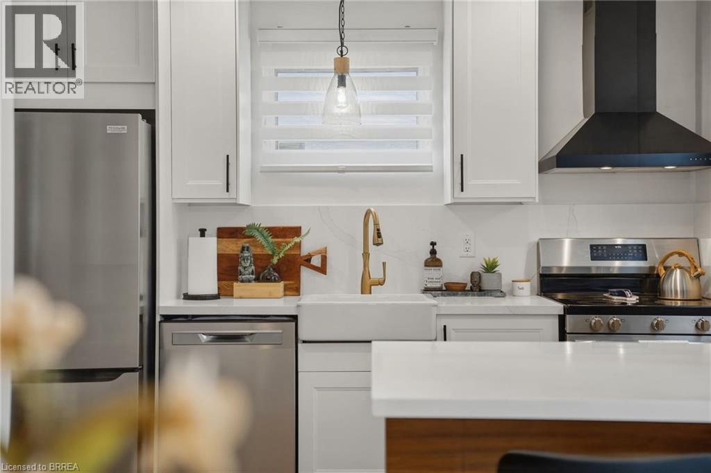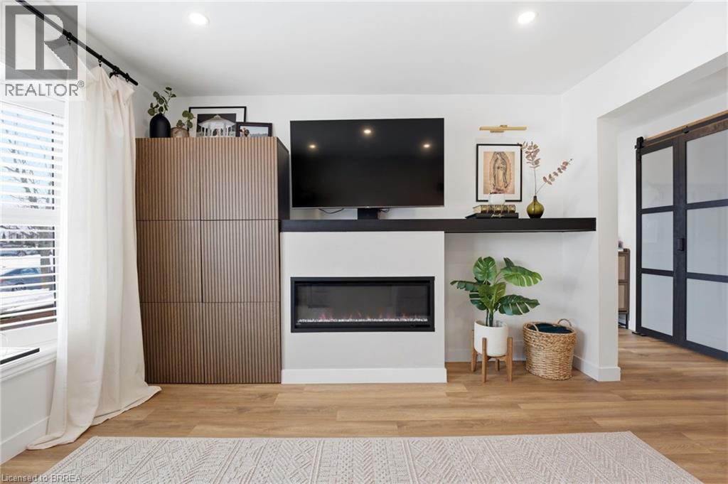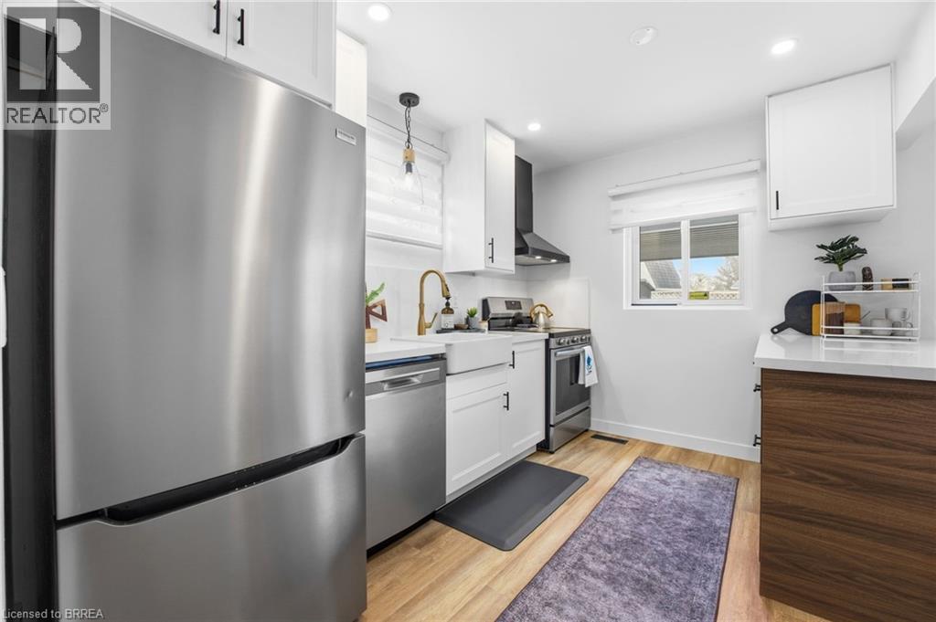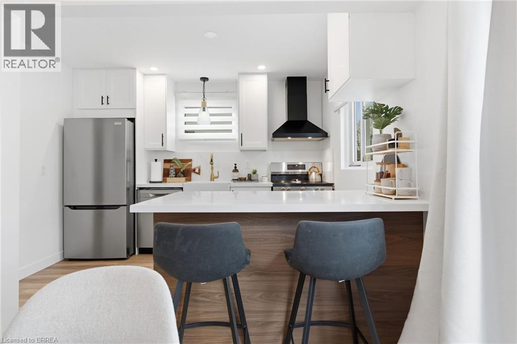 Welcome home to 104 White Owl Cres., Brantford. In a sought after Lynden Hills community find both luxurious finishes and affordability in this freehold 3 bed 1.5 bath semi detached home. Just minutes to schools, parks, Costco, all major north end amenities and highway access! Nearly $45,000 in renovations in last 4 years including custom built feature wall and fireplace, entryway feature wall, modern closet doors in master bedroom as well as a stylish feature wall. More notable upgrades include new flooring throughout, finished recreation room in basement, new modern front door and entry closet barnyard door, brand new reconfigured kitchen with new appliances and added a dishwasher and built in island. The kitchen boasts large soft close cabinets, farmhouse sink with gold faucet and quarts countertops. Additional upgrades include pot lights through main and upper floor, new water softener, large cement pad and modern gazebo in backyard. Exterior upgrades also include resodded yard - additional storage shed, new eavesdrops, downspouts and gutter guards. Roof was redone approx. in 2018, as well as some electrical upgrades and furnace and AC were also replaced that year. Turn key ready, just move in and enjoy! (70206519)