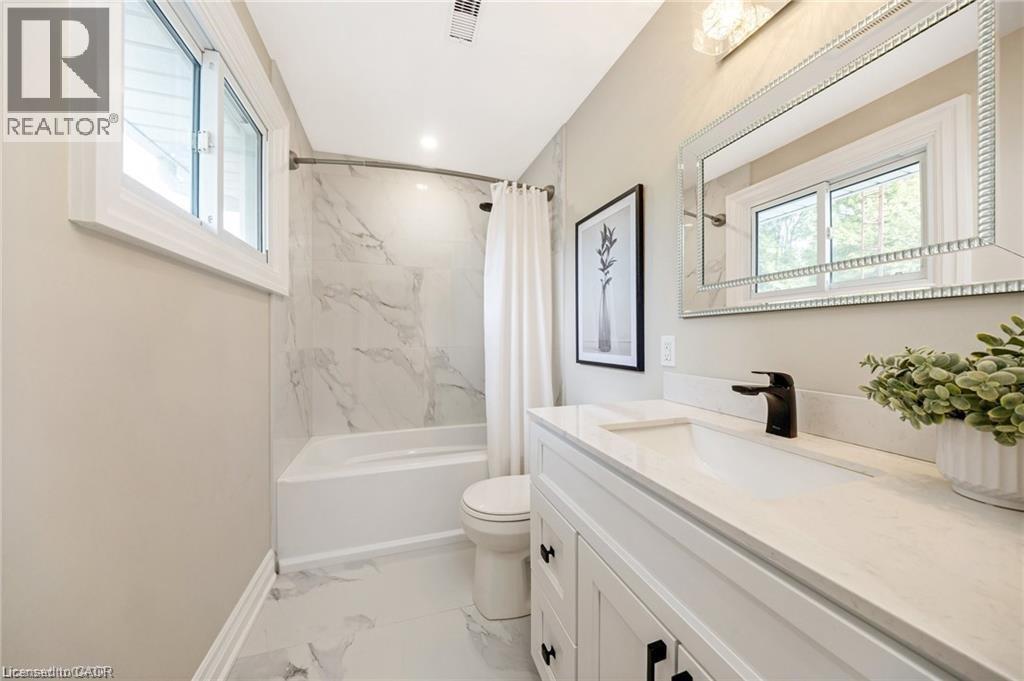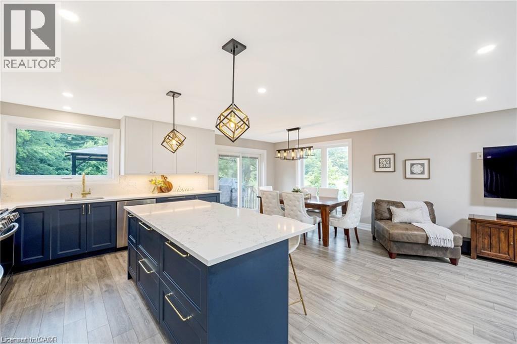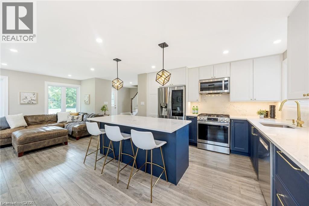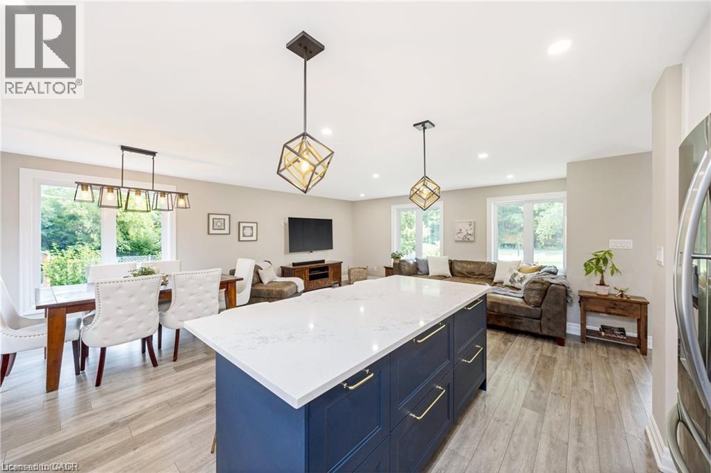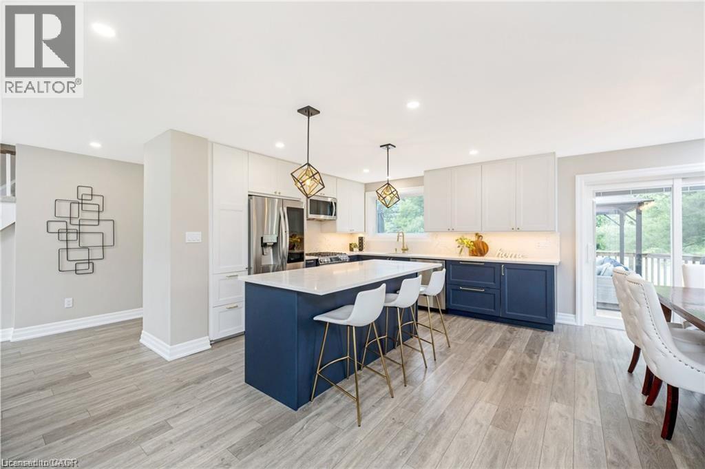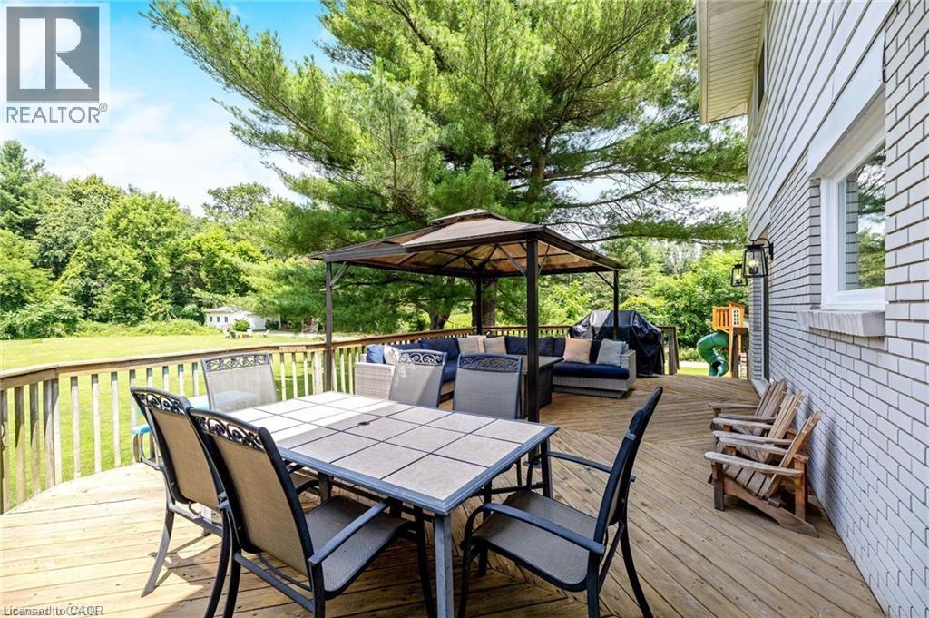 You will fall in love with this SERENE PARK-LIKE SETTING and wonderfully RENOVATED 4-BEDROOM FOREVER HOME, nestled on a PRIVATE ONE ACRE LOT backing onto woodland in sought-after Campbellville. It has been beautifully updated w/$350K in recent PROFESSIONAL RENOS. Enjoy your drive home along tree-lined Limestone Rd and take in the beautiful curb appeal w/stately new stone facade (2024), new garage door (2023), new soffits, eaves and gutters (2024). Enter the OPEN CONCEPT main level to the large living/dining room, w/WO to deck, gorgeous WHITE EI KITCHEN w/quartz counters, SS appliances (2022), massive island w/ breakfast bar, undercabinet lighting ... you will never want to leave this space! There is a main level powder room, family room w/ WO to the 3-season SUNROOM and laundry w/garage access. The upper level has a beautifully reno'd 4-pc bathroom and FOUR LARGE BEDROOMS, one being the primary w/ lovely 3-pc ensuite. The lower level has large above-grade windows, massive rec room, gym/office, cold cellar and 100 amp breaker. Addt'l Features: Parking for 20+ in driveway, a 1.5 car garage w/more parking in workshop, spray foam insulation (2022), epoxy floor in garage, updated light fixtures, FULL-HOME GENERAC GENERATOR. Unlike many rural properties, this home is heated w/NATURAL GAS and has HI-SPEED INTERNET. The property is beautiful ... WIDE OPEN SPACE for the kids, tall mature trees for privacy and a putting green! 2nd driveway to the insulated workshop w/electricity at back of the property. Ideally located SOUTH of the 401 close to Milton, Burlington & Guelph and minutes to Campbellville's quaint downtown - restaurants, post office, pharmacy, grocery, LCBO, spa, coffee, parks. Easy hwy access, conservation areas/skiing, golf, 25 min drive to Pearson Airport and in the highly desirable Brookville PS catchment. This type of property is highly sought-after but rarely offered for sale. (70206015)