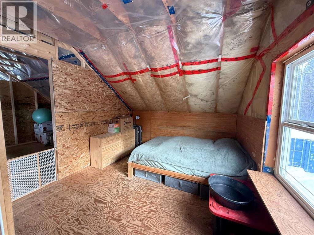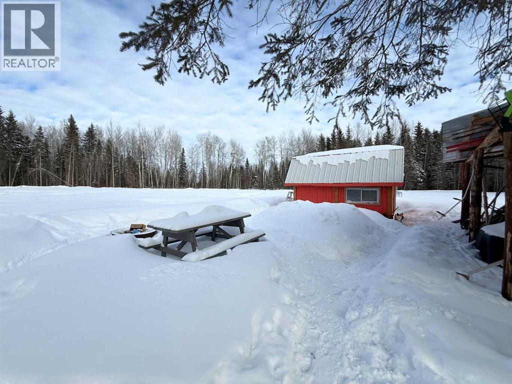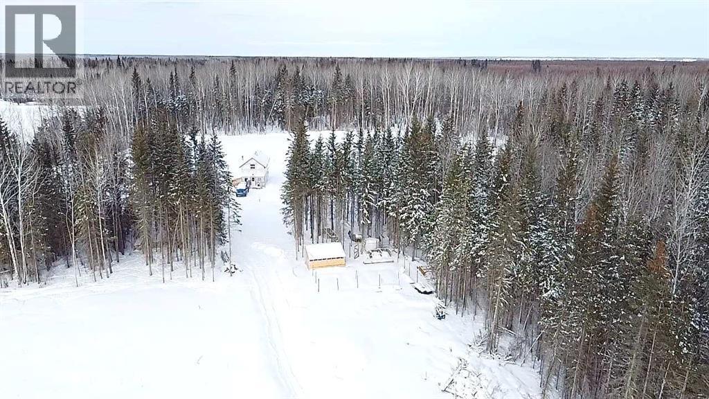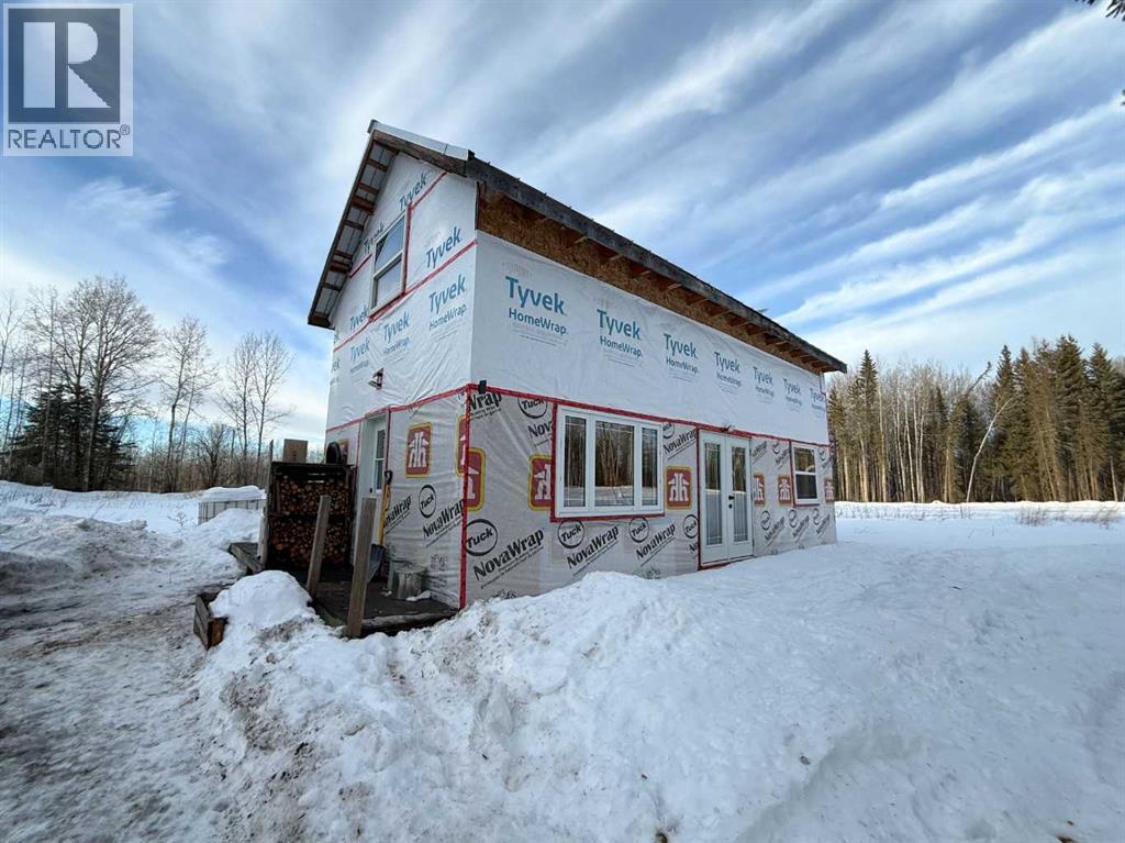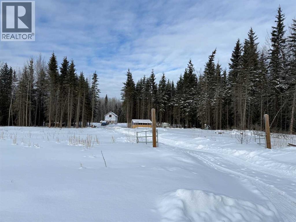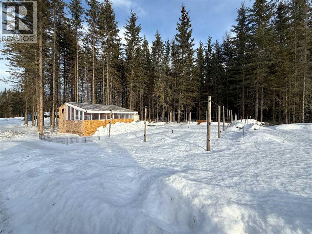76.94 acres with 937 sq ft, 1 and a half storey home. Currently lived in year round, but would also make an amazing cabin retreat. Main level is 505 sq ft with kitchen, living room and roughed in bathroom with tub. Upper level is 432 sq ft with 2 bedrooms and flex space. 4 – 20 ft seacans for secure storage, one with power. Chicken coop and greenhouse. Land is mostly bush with approximately 3-4 acres recently cleared, plus open yard site. Access to an old well site with lease revenue $1500/yr, reclamation in process and is scheduled for completion by 2030. Excellent location if you enjoy the outdoors, with direct access to crown land bordering the north and east sides of the property. Just over 1 mile to the north is a staging area for the Peace River Trail. (31688390)
