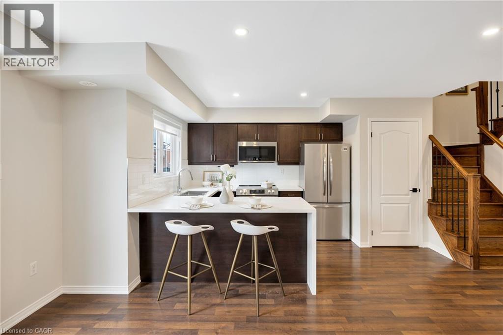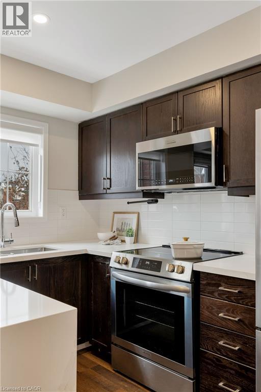 A Luxurious 2-Bedroom Fernbrook Condo awaits in Uptown Core, Oakville. Positioned in the heart of Oakville's sought-after Uptown Core, this stunning 2-bedroom Fernbrook condominium has the perfect blend of modern elegance & urban convenience. Within walking distance to shopping, restaurants, & essential services, & just minutes from Oakville Hospital, major highways, & public transit, this prime location ensures effortless connectivity. The beautifully maintained complex grounds feature a serene central courtyard, lush gardens, & picturesque walking paths, while nearby ponds, scenic trails, & ravines invite exploration & outdoor enjoyment. Step inside this spacious & sunlit suite, where large windows flood the space with natural light, complementing the rich dark laminate flooring & designer marble-look tiles. The sophisticated oak staircase with wrought-iron pickets adds a touch of timeless elegance. The open-concept living & dining area is perfect for entertaining or unwinding after a long day, with garden doors leading to a private balcony overlooking the tranquil courtyard. The modern kitchen is a chefs delight, featuring quartz countertops, dark-stained cabinetry, pot lighting, & deluxe stainless steel appliances. Upstairs, the primary bedroom provides a peaceful retreat, sharing a beautifully appointed 4-piece bathroom with the second bedroom. A convenient upper-level laundry area adds to the homes practicality. With its stylish finishes, prime location, & inviting ambiance, this exceptional Oakville condo offers a rare opportunity to experience refined living in Uptown Core. (70194806)