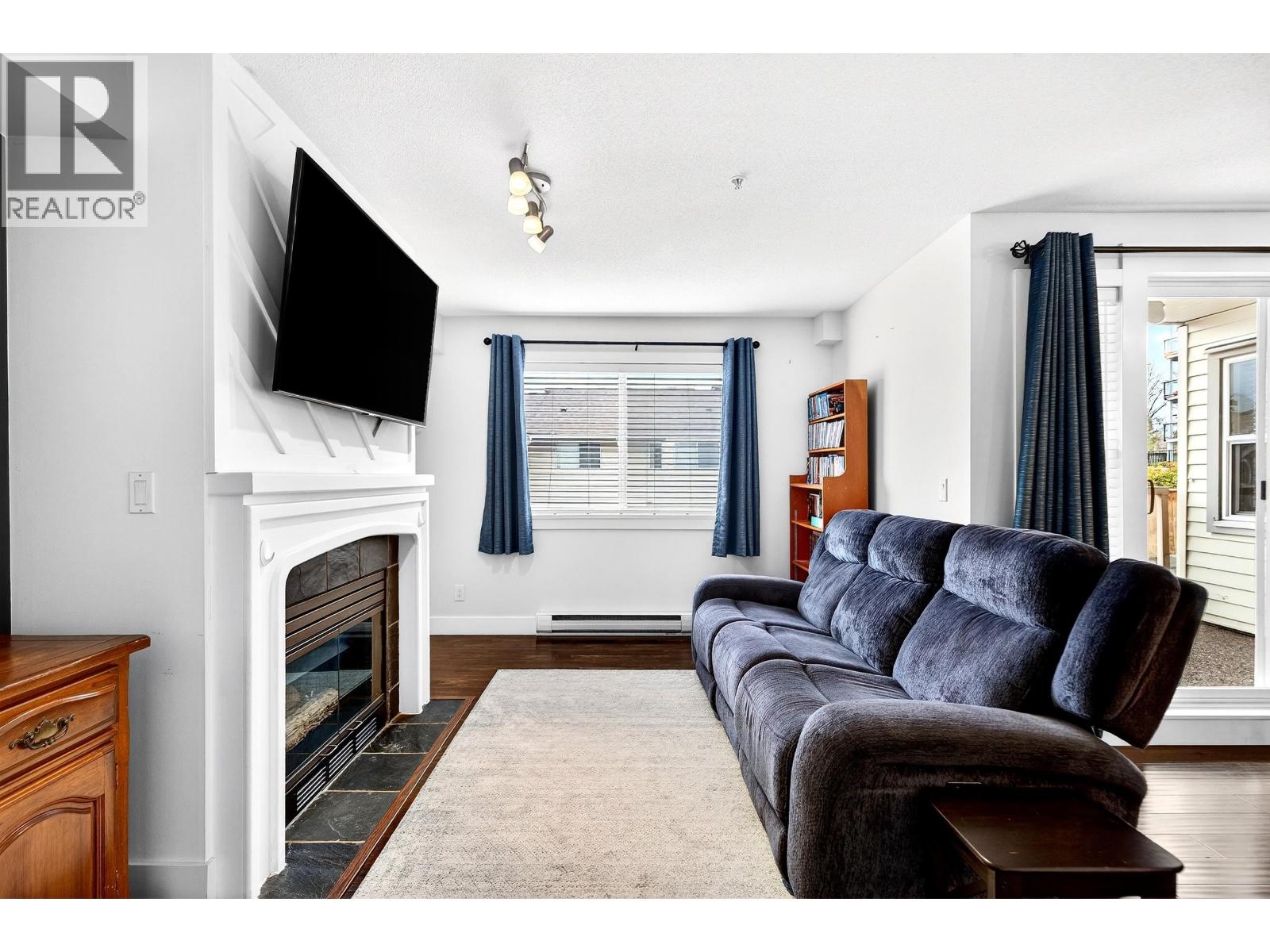 Mountain View Terrace - Welcome to this beautifully maintained 2 bed, 2 bath corner home tucked away on a quiet no through street. This raised garden level property is thoughtfully designed for seamless indoor outdoor living, featuring two generous patios for year round enjoyment, including a private retreat off the primary suite. The renovated ensuite is sure to impress, while the cozy gas fireplace adds warmth and ambiance. Enjoy the convenience of in suite laundry, 2 parking stalls, and a storage locker. Walking distance to schools, town, and transit just one block away. An exceptional blend of comfort, privacy, and convenience. (32493240)