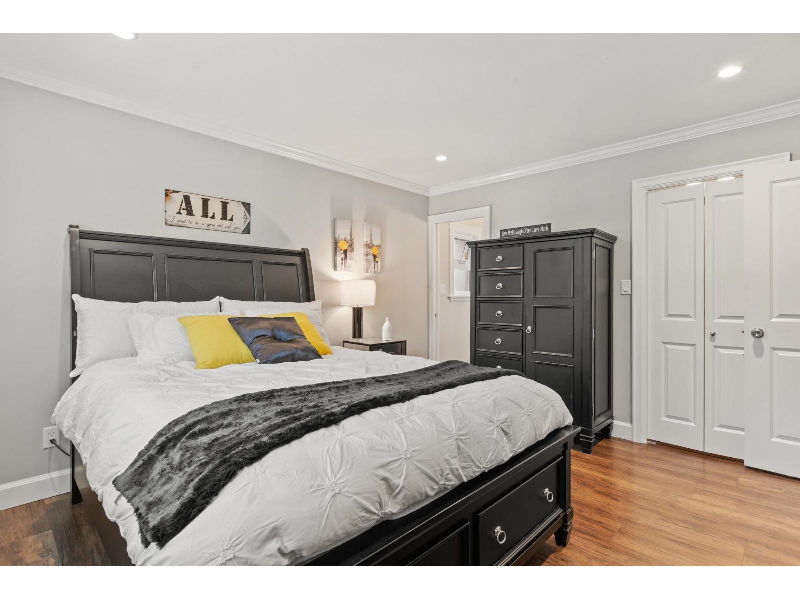 This stunning home, set on a spacious half-acre lot, perfectly blends modern design with functionality. The open-concept kitchen is a standout, featuring a large oversized island that flows seamlessly into the bright and airy living space, ideal for both entertaining and everyday living. Large windows throughout fill the home with natural light and offer views of the expansive, private backyard. The main level includes two generously sized bedrooms, while the basement features a third bedroom and a versatile flex space, easily adaptable to suit your needs. A true highlight of this property is the massive detached garage providing ample space for vehicles, storage, a workshop, or even a home-based business. This home offers the perfect mix of privacy and convenience in a prime location!! (32493226)