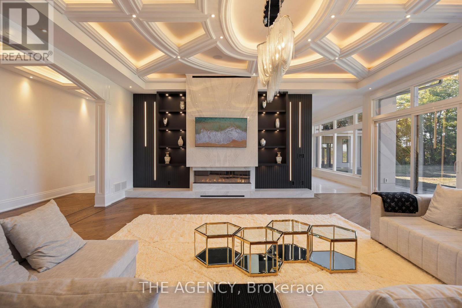 Introducing a residence of unrivaled grandeur, where architectural artistry meets timeless elegance. Nestled on ten acres of immaculate, level grounds, this extraordinary estate offers over 20,000 square feet of refined living space, where each room showcases exceptional craftsmanship and exquisite detail destined to surpass every expectation. A majestic foyer welcomes you with soaring ceilings and sweeping palace-inspired staircases, setting a regal tone for greeting guests in opulent style. Expansive entertaining salons boast custom 22-foot ceilings and walls of glass that frame panoramic vistas, immersing the interiors in natural light and breathtaking scenery. Indulge in eight sumptuous suites, including a master retreat designed as a sanctuary of comfort and serenity. Unwind in your private spa and sauna, enjoy cinematic experiences in the state-of-the-art theatre, or marvel at the serenity of an indoor waterfall that adds a touch of tranquility to your surroundings. Four elegant fireplaces enhance the ambiance throughout, while the gourmet kitchen is a chefs dream, equipped with a 60-inch Wolf gas range, Wolf hood, built-in Bosch coffee maker, offering a culinary experience as luxurious as the home itself. This estate is equipped with advanced amenities, including steam humidifiers, four furnaces, four air conditioning units, a comprehensive reverse osmosis water system, and a whole-home water softener, ensuring an uncompromising lifestyle defined by comfort and sophistication. Experience a property where luxury knows no limits, and every moment is elevated to an art form. You won't find this level of luxury, square footage and land combined anywhere else! (42220699)
