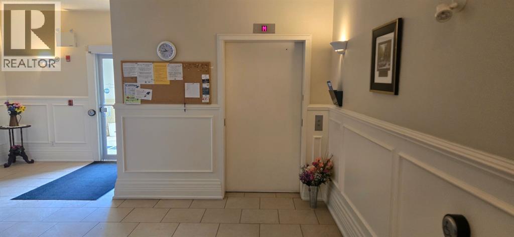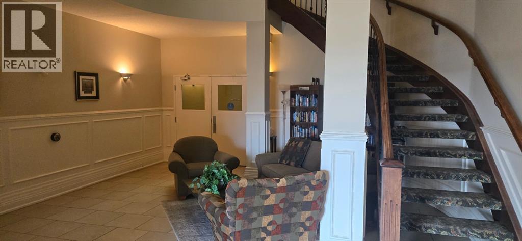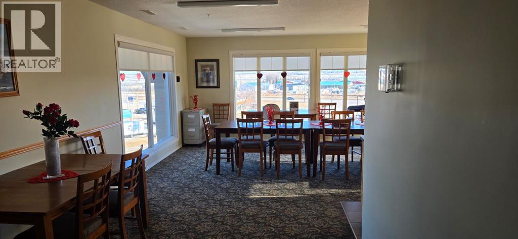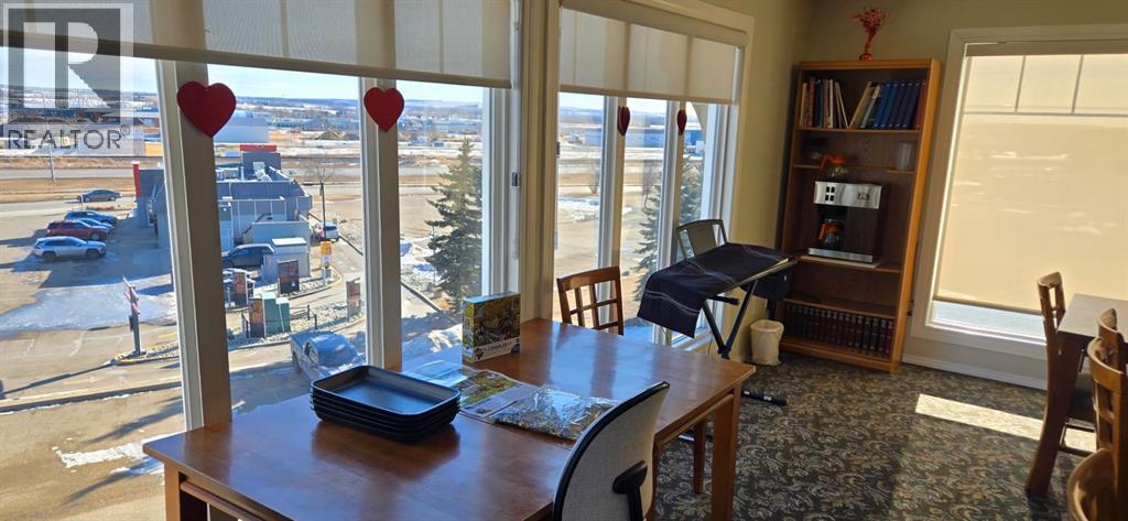 Come and check out this executive style condo that has been beautifully updated in the sought after Chateau Lacombe! Close to all of Lacombe's downtown amenities . This top floor west facing unit has 2 generous bedrooms , 2 bathrooms and adequate laundry room with awesome storage space. The open-concept layout showcases lovely hardwood flooring in the living room and tile in the kitchen. The bright and inviting kitchen offers an island and an abundance of cabinetry,& flowing seamlessly into the spacious living and dining areas complete with black out blinds included, as well with a great view to the west and panoramic view of those stunning Alberta sunsets . Patio door with retractable door screen leads to oversized balcony with a retractable awning that if forgotten about puts itself away! WOWZERS!! A private spot to relax on a summers evening to catch some sun and enjoy the views . The master bedroom has a large ensuite with shower plus huge walk in closet with custom Canadian Closet built ins with enough room for comfort and organization for everyone .There is also a common social room for visiting neighbours, hosting parties or playing cards or host a private function. This very well kept unit offers everything you need including titled underground parking so you never have to worry about parking in the outside elements . Across the parking lot or the street they have coffee until the cows come home with A&W and McDonalds close enough so you never have to drive if you so choose to. A gem waiting to be discovered for the discreet home Buyer in today's market. (31687957)