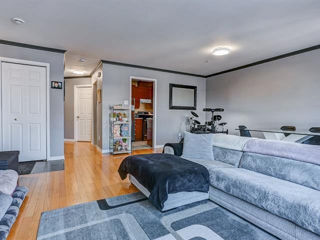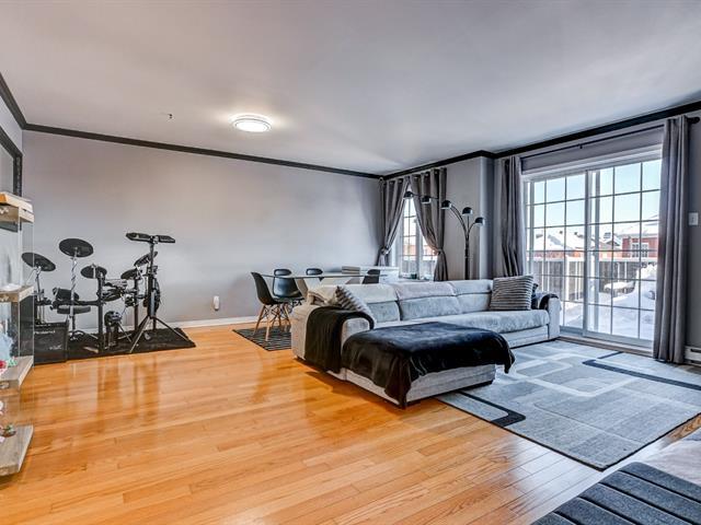 Beautiful condo meticulously maintained by its owner, located on the 3rd floor with no upstairs neighbors, offering peace and comfort. This bright unit features 2 good-sized bedrooms, an open-concept living space, and hardwood floors throughout. The laundry room includes a practical workshop and storage area, a rare condo feature. Ideally located close to all services: grocery stores, shops, parks, schools, quick access to Highway 640, and near the REM. A turnkey property perfect for enjoying a convenient and comfortable lifestyle. (50066071)