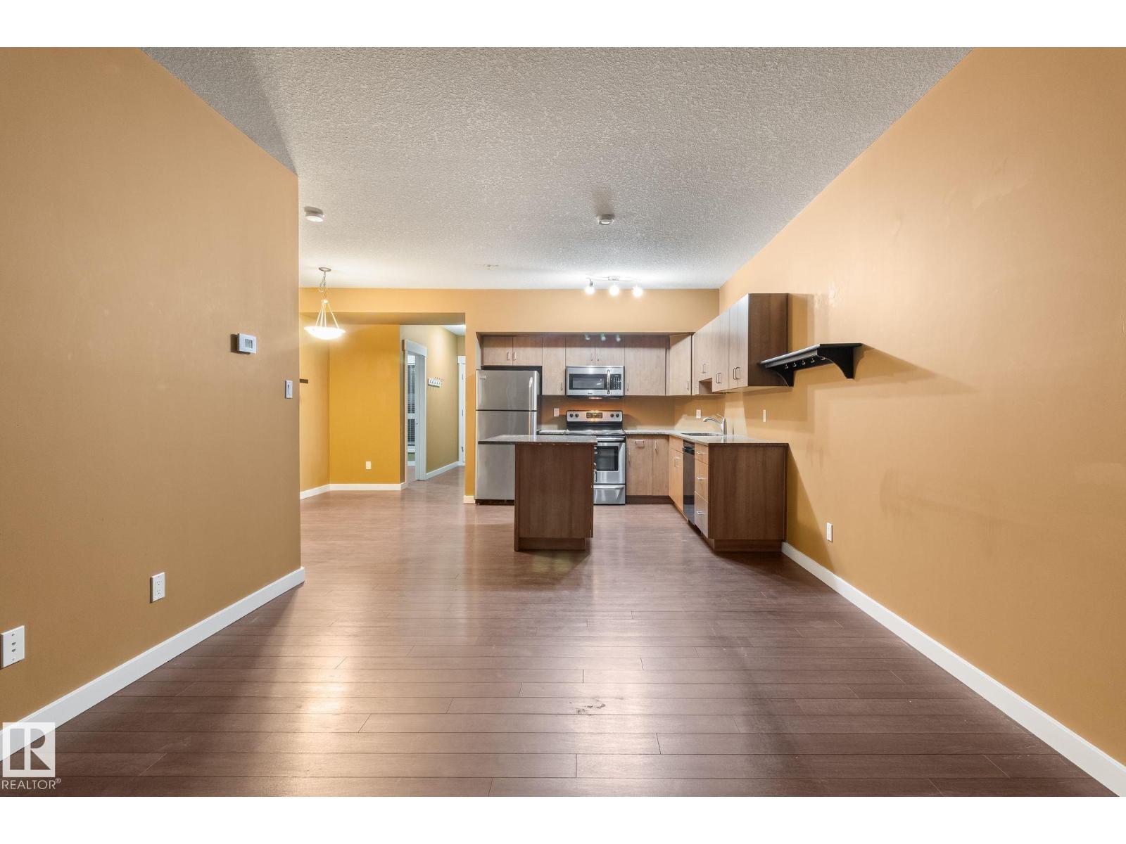 Minutes to downtown and close to Edmonton’s best restaurants, shopping, and nightlife, this 790 sq ft condo nails the “easy city living” vibe. Tall ceilings and an open layout make the space feel bright and airy, while large windows bring in tons of natural light. The kitchen is the centerpiece with granite counters, a big island for prep and hosting, and stainless steel appliances. Wood style flooring keeps it clean and durable. The primary bedroom easily fits a king bed and includes a private dressing area that leads into a modern ensuite with a glass shower. A second room gives you options as a home office, guest space, or flex room. You also get a second full bathroom, in suite laundry, and air conditioning for summer comfort. Step outside to an oversized balcony with a gas line for your BBQ and plenty of room for patio furniture, perfect for summer evenings. Complete the package with underground parking for secure, year round convenience. (33874847)