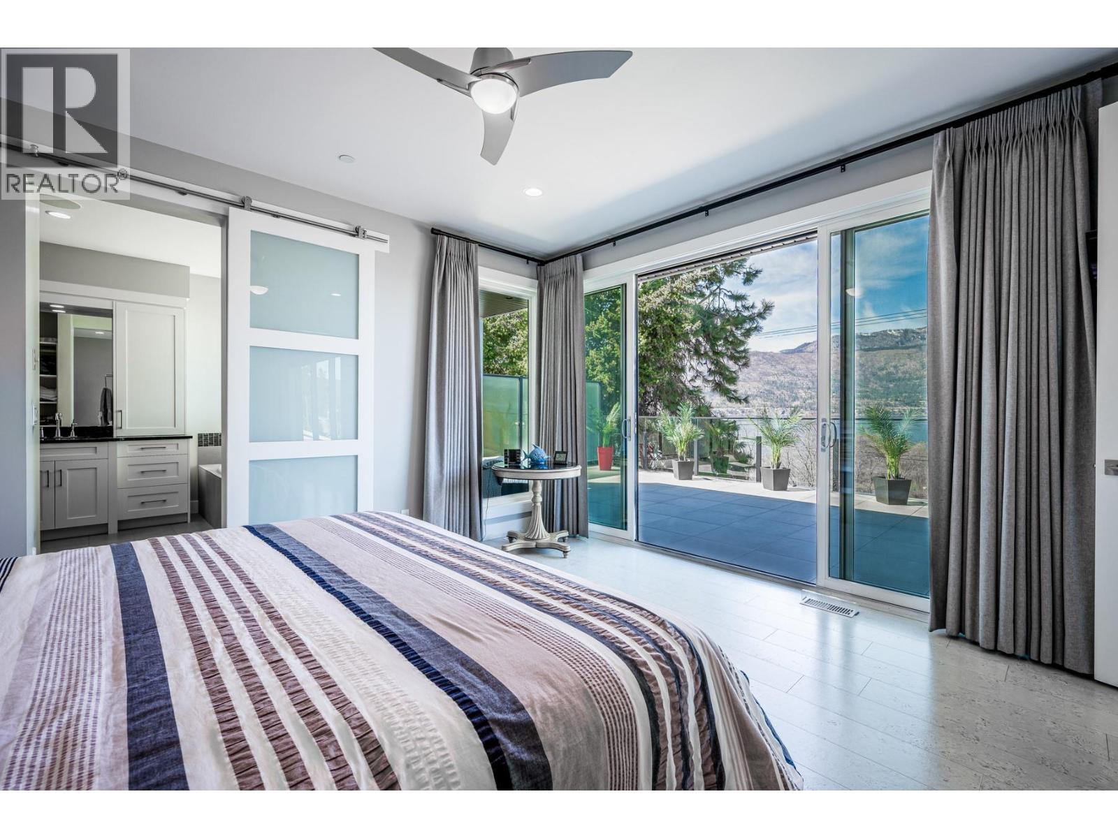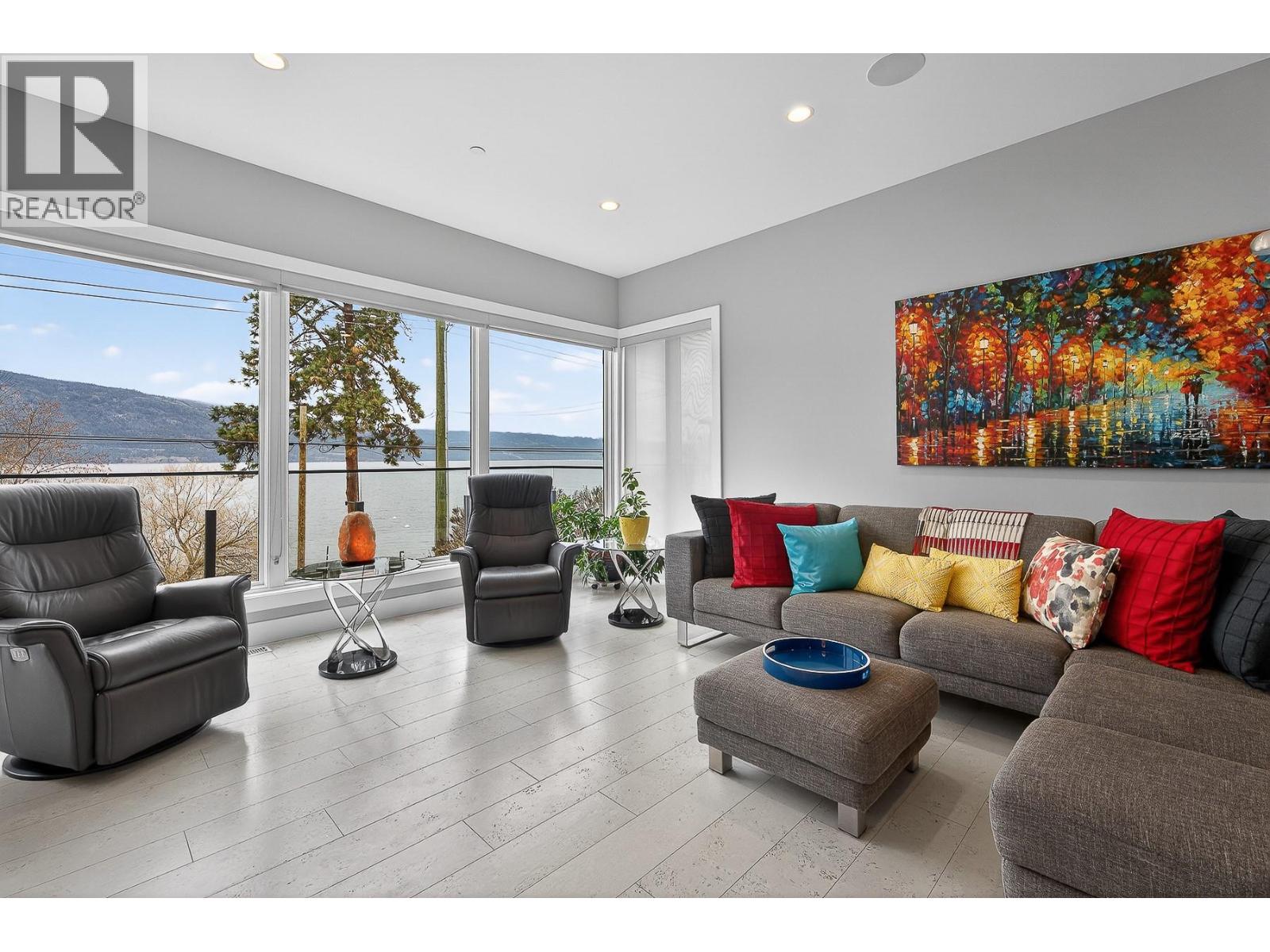 To truly embrace this home, you must step inside. From the moment you cross the threshold, the lake reveals itself - expansive, calming, ever-changing. Designed by a respected architect and built with exceptional attention to detail, this custom residence was intentionally positioned to capture Okanagan Lake from nearly every principal room. Clean modern lines, walls of glass, and expansive terraces create a seamless connection between indoors and out. Each level offers its own perspective of water and sky, whether you’re enjoying morning coffee on the covered patio or watching the sun set across the mountains from the upper terrace. The kitchen is both refined and functional, anchored by rich granite surfaces, premium appliances, and effortless flow to outdoor dining. A dramatic open staircase serves as an architectural statement while maintaining the home’s sense of openness and light. The primary suite is a private retreat, with direct terrace access, a spa-inspired ensuite, soaker tub, dual vanities, and a generous walk-in closet complete with secondary laundry. The lower level offers flexibility for guests, family, or entertaining, with walk-out access and easy connection to the beach just steps away. Paddleboard at sunrise, tie your boat to the buoy, stroll the shoreline path, or visit nearby wineries and cafés. This is lake living...... elevated, intentional, and designed to be experienced. Come view it. (39777254)