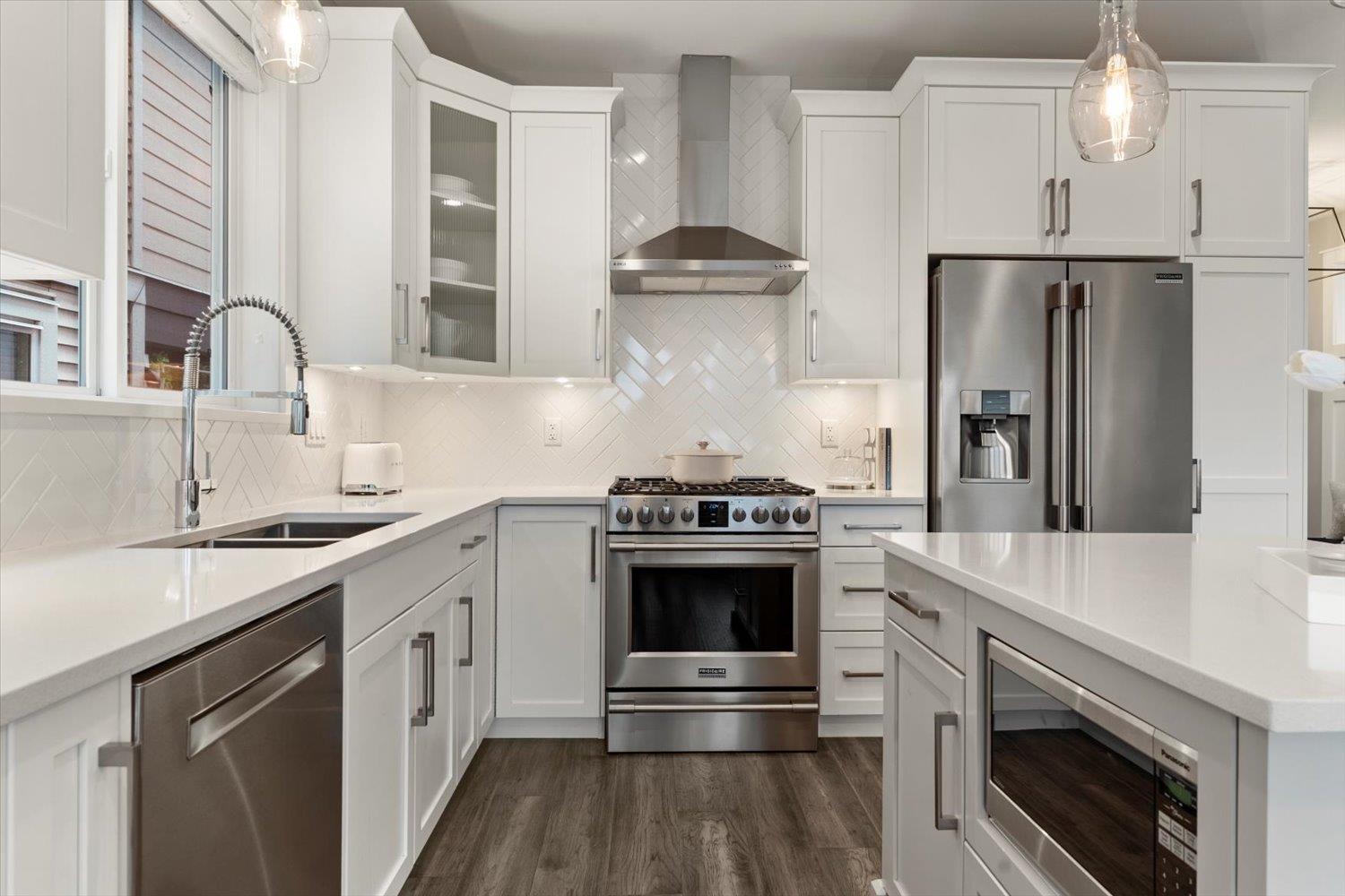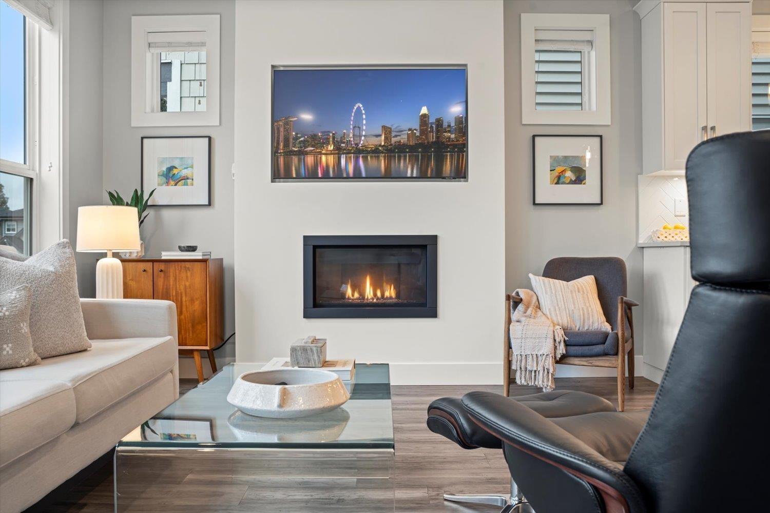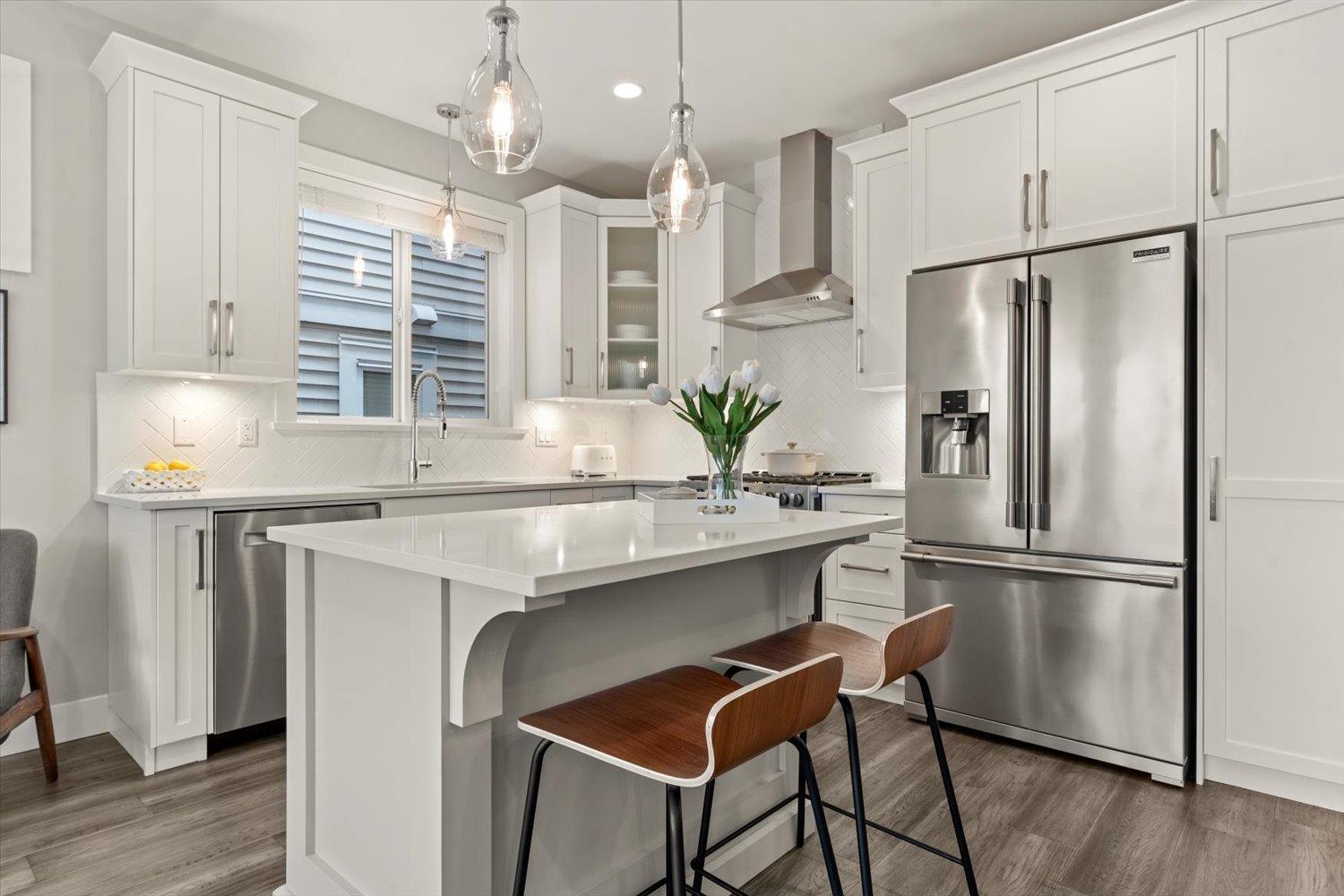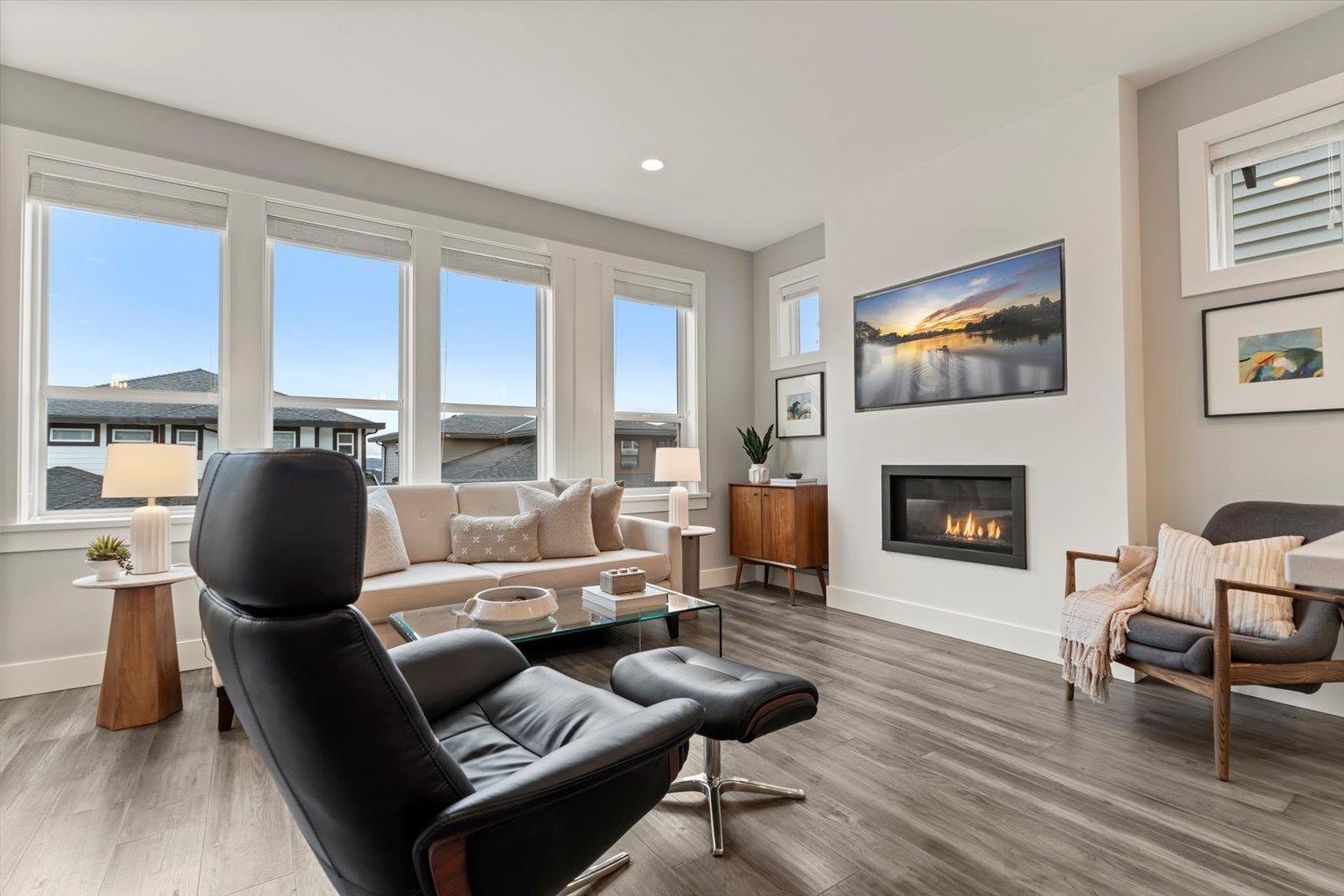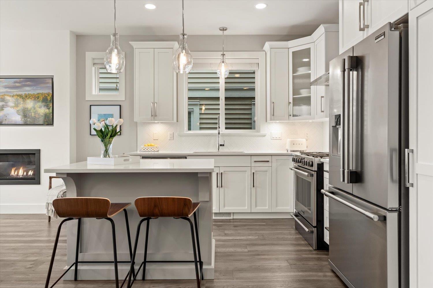 Welcome to upscale living in sought-after Sunspring Estates. This move-in-ready detached home offers 3 bedrooms, 3 bathrooms, multi-functional flex room, and 1,821 sq ft of modern family living. Enjoy standout curb appeal with brick and Hardie board exterior, plus a bright interior featuring 10' ceilings, engineered hickory floors, recessed lighting, and central A/C. The open-concept main floor includes a linear gas fireplace and a chef-inspired kitchen with quartz counters, white shaker cabinets, large island, pantry, and herringbone backsplash. The primary suite offers sunset views, a walk-in closet, and spa-like ensuite. Complete with upper laundry double garage with EV rough-in, fenced yard, and prime Sandyhill location near schools, trails, and amenities. (32492887)