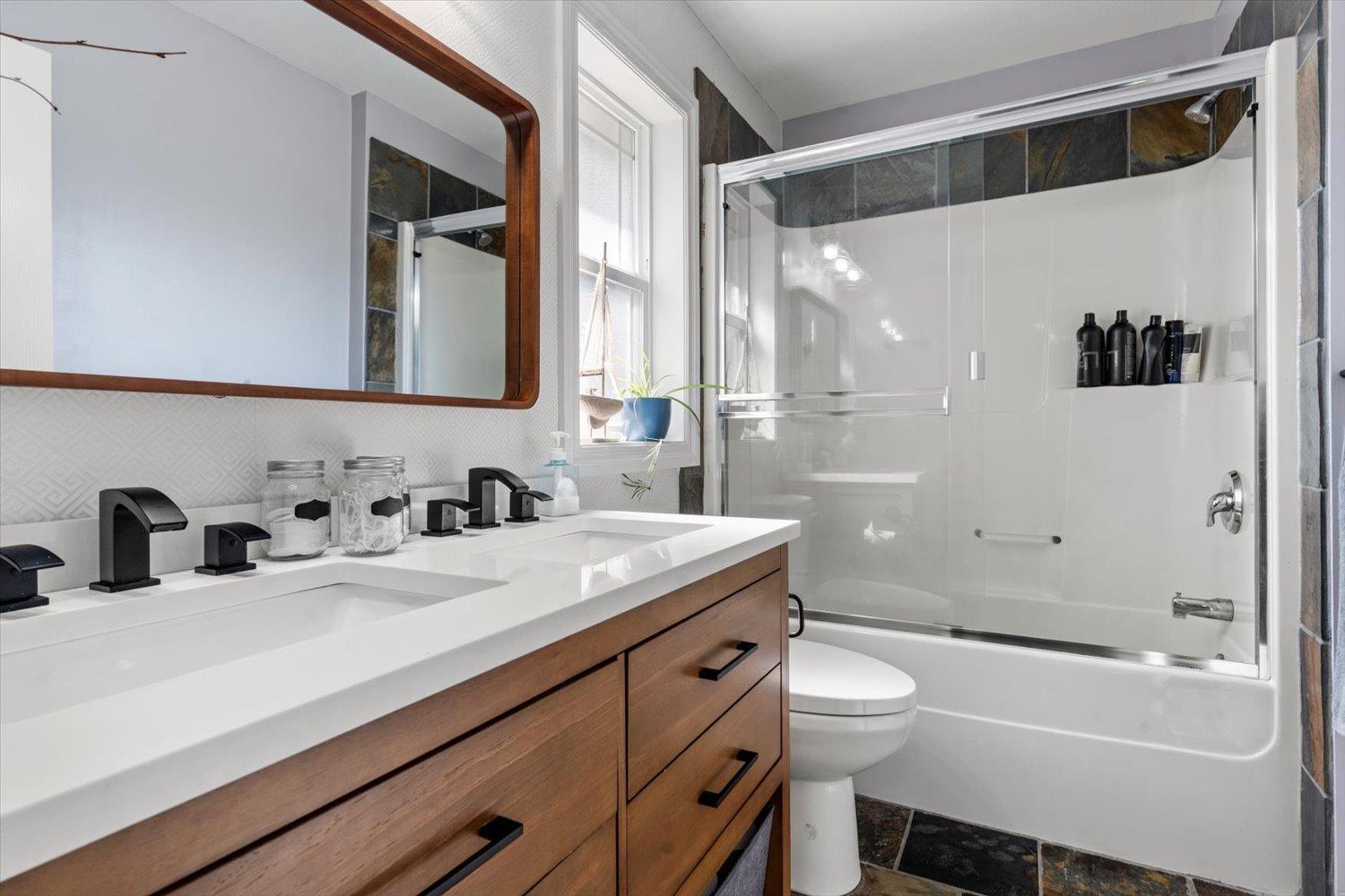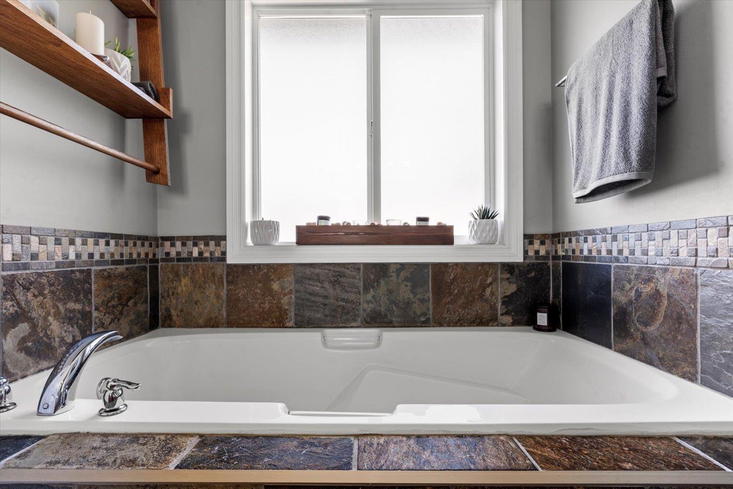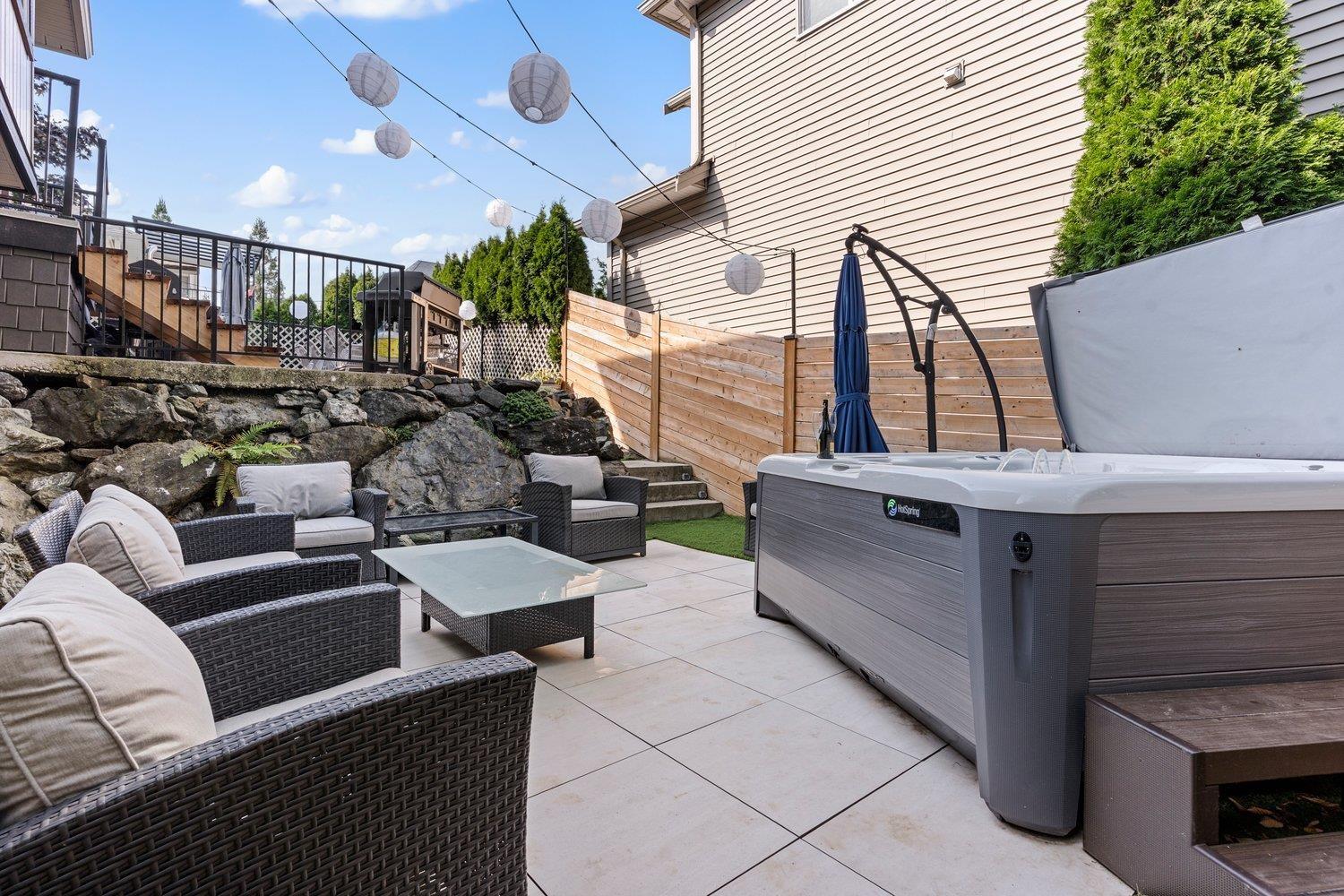 Exquisite 3,350 sq. ft. home on a large corner lot with a private ravine view. Featuring 5 bedrooms and 4 bathrooms, PLUS an office! This residence blends comfort and style with central air conditioning, new carpet, hardwood floors, and slate stone tile accents in the kitchen and baths. The kitchen shines with quartz countertops, high end appliances, updated lighting, and modern fixtures. The converted garage offers a unique man cave retreat. Step outside to your private, zero-maintenance patio, perfect for entertaining or relaxing in your saltwater spa. Added retaining wall for extra parking! This property will not disappoint. Call to book your showing today! * PREC - Personal Real Estate Corporation (32493621)