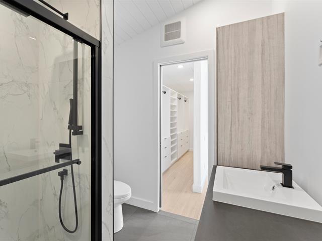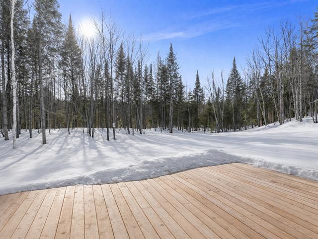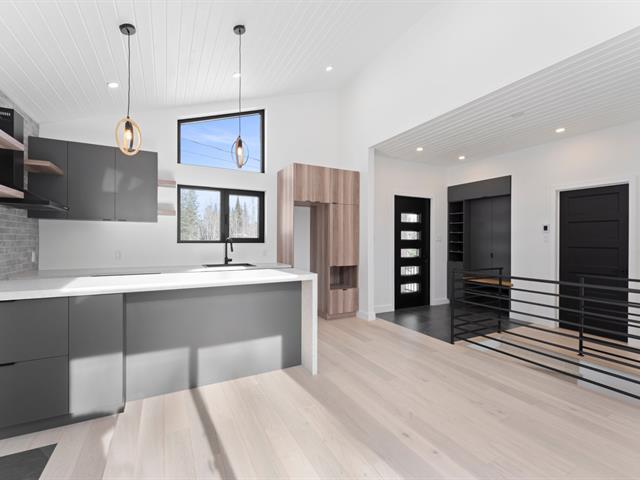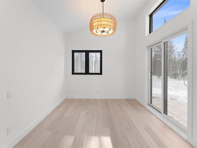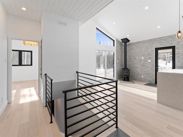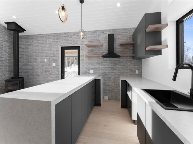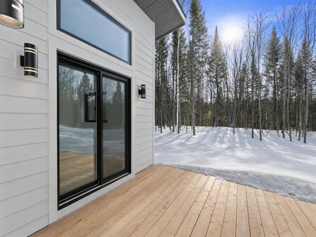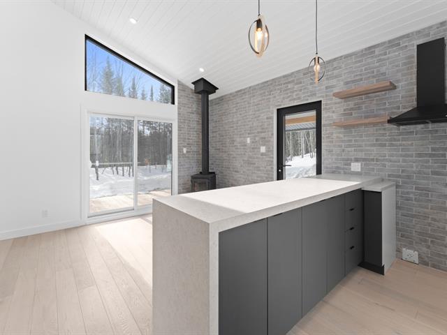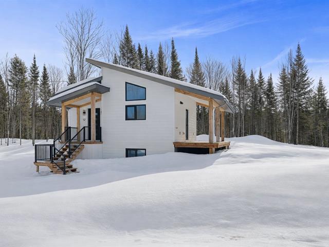 Residence offering 1,138 sq ft of comfort over two intelligently designed levels. Brand-new turnkey mini-home nestled in nature, with nearby walking trails. Featuring a cathedral ceiling and remarkable brightness thanks to abundant windows. Quality construction with heated floors on both levels, built-in storage, and optimized layout. Large terrace with optimal sun exposure. Ideal as a primary residence, pied-à-terre, or investment. Notarized access to Lac Baron, a navigable lake -- a highly sought-after distinctive feature. (41473811)