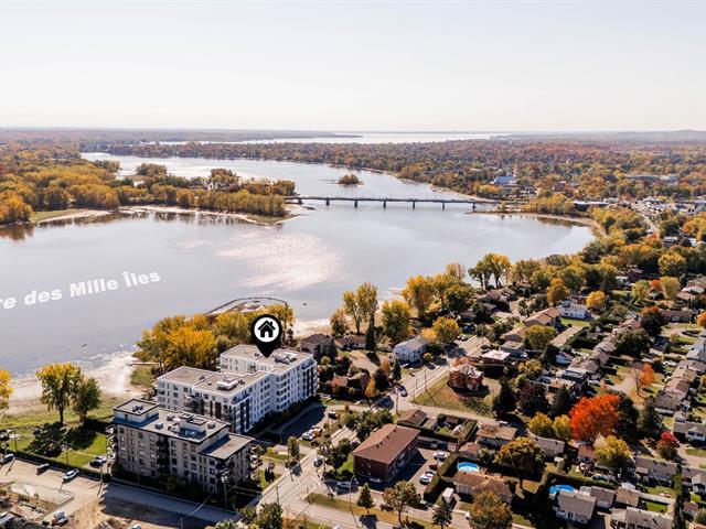 Vivez au sommet dans ce magnifique Penthouse avec une vue spectaculaire sur la rivière-des-Mille-Îles. Ce penthouse d'une superficie de 1445 pi2 est situé au 6e et dernier étage. Il vous offre 3 chambres à coucher,2 salles de bain complète, une cuisine haut de gamme avec comptoir de granite, salle de lavage indépendante, salon avec foyer au gaz,2 grands balcons avec meubles de jardins inclus(voir inclusions).2 espaces de stationnements intérieurs, rangement intérieur privé, ascenceur, piscine extérieure chauffée au sel, salle de sport, gazebo, quai. Un coup de coeur assurée, une visite s'impose! (55916624)