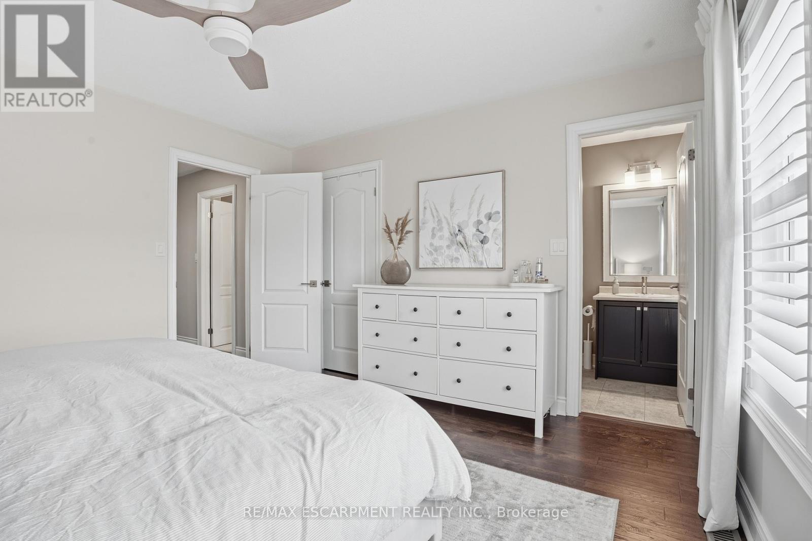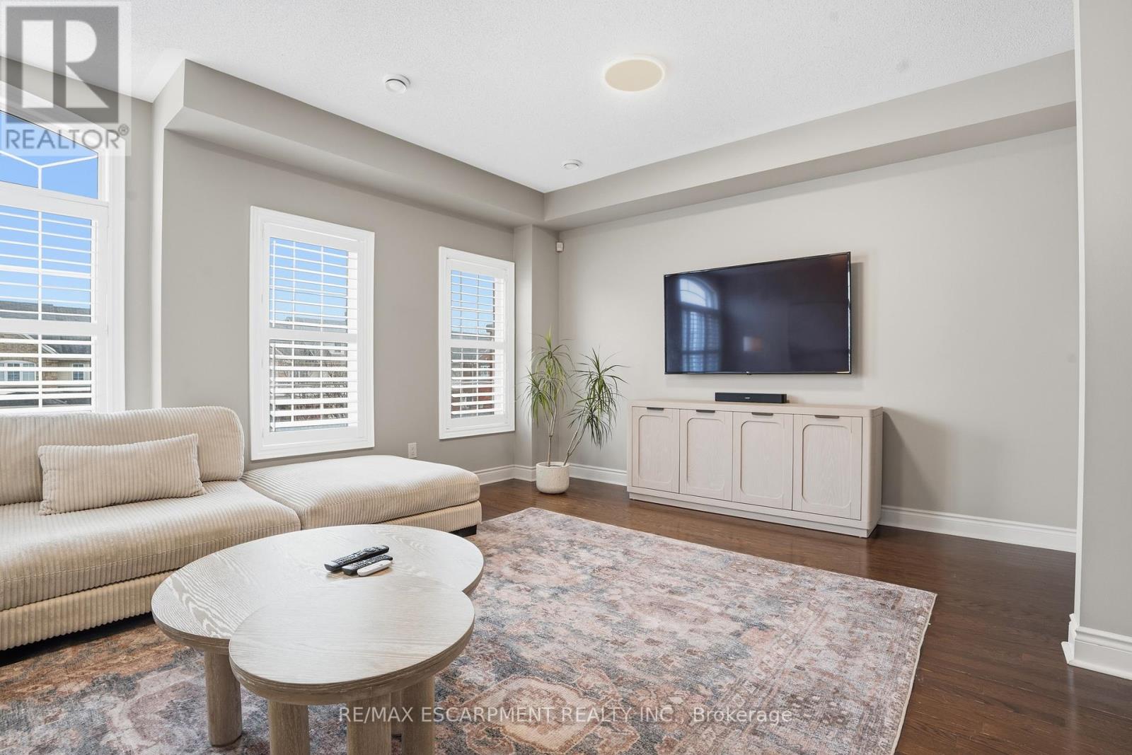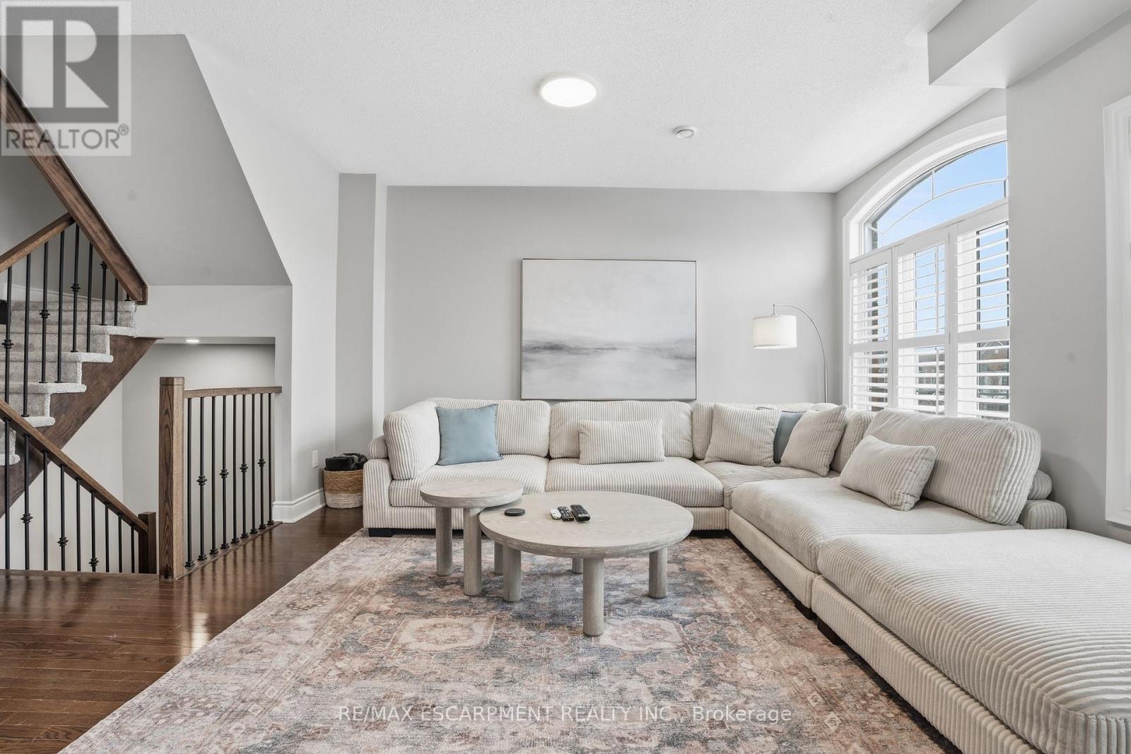 Welcome to this exceptional 3-storey, 4-bedroom townhouse condo in sought-after Alton Village! Offering rare functionality and thoughtful design, this beautifully maintained home features a double car garage plus double driveway parking - comfortably fitting 4 vehicles. Inside, you'll find a highly desirable ground-floor bedroom complete with its own private ensuite, perfect for in-laws, guests, a home office, or multi-generational living. The main level showcases a bright, open-concept layout with tasteful updates throughout, ideal for today's discerning buyer. The spacious kitchen flows seamlessly to a large private balcony - perfect for barbecuing, outdoor dining, and relaxing evenings. Upstairs, three bedrooms provide ideal separation for families, including a well-appointed primary retreat. An unfinished basement offers excellent storage or future potential to customize additional living space. Stylish, functional, and move-in ready - this is a rare opportunity in one of Burlington's most family-friendly communities, close to schools, parks, shopping, and commuter routes. Turnkey living with space, parking, and flexibility - this one checks all the boxes. Upgrades: California shutters, Railings, Powder room vanity, Entry floor tile, Quartz Countertops (kitchen), Kitchen appliances (dishwasher, stove, microwave, fridge), Kitchen backsplash, Updated lighting/ceiling fans, Landscaping, Furnace/AC/humidifier (2020) (42221493)