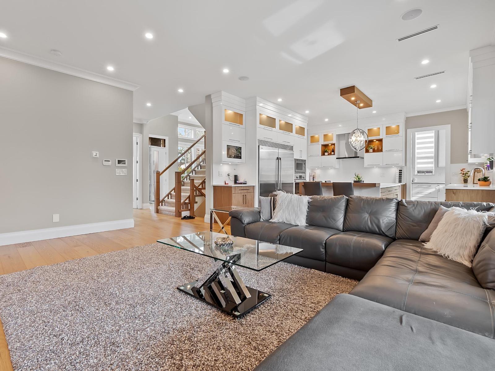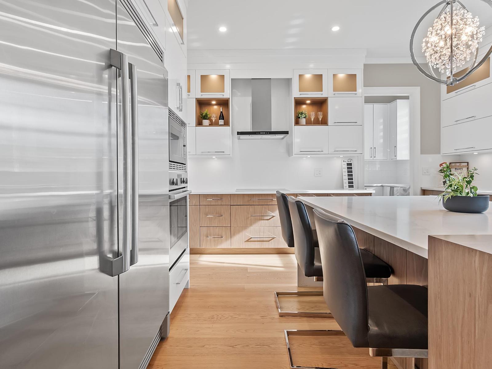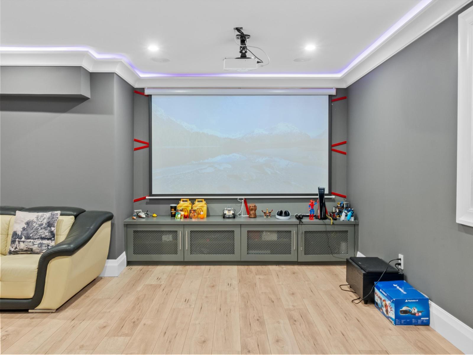 Welcome to this luxurious and tastefully designed 3 level home in NORTH DELTA sitting at huge 7900+ sf lot. Grand entrance leading to formal living, dining room. Gourmet kitchen with Bosch appliances, fully equipped wok kitchen. Guest bedroom with ensuite. This home features 8 bedrooms, 7 baths, Den, Theatre room with BAR area and 2 bedrooms LEGAL suite. All high end finishing including Hardwood flooring, AC, HRV, security cameras. Huge covered Sundeck for all your entertainment needs. Convenient location close to school, transit and Rec center. Call today for private showing. (32493638)