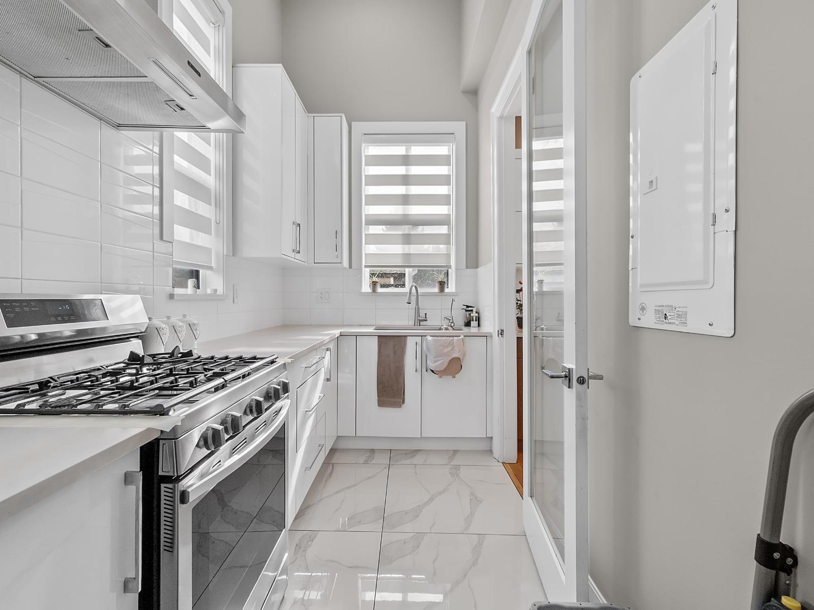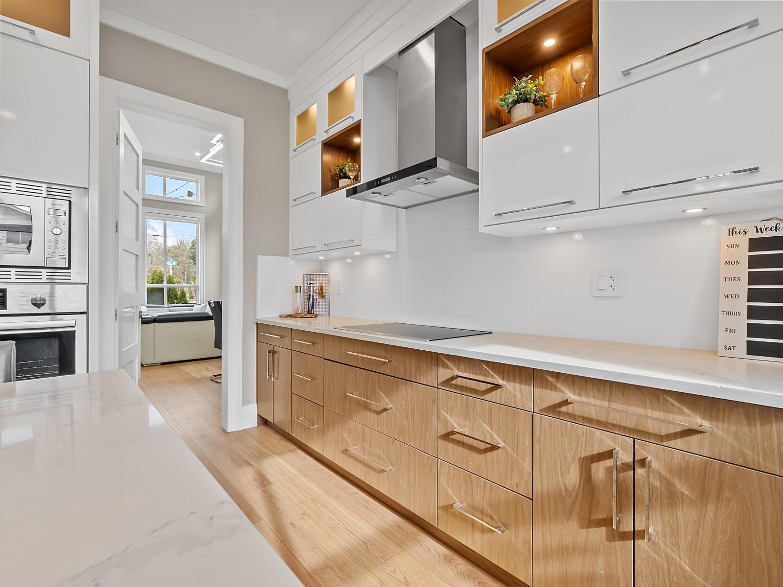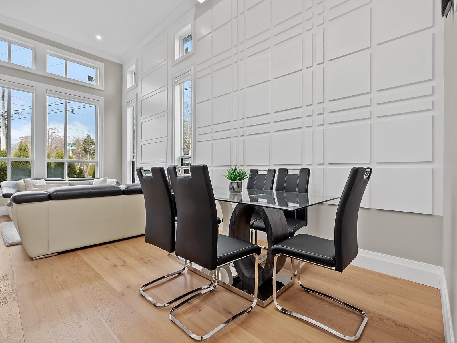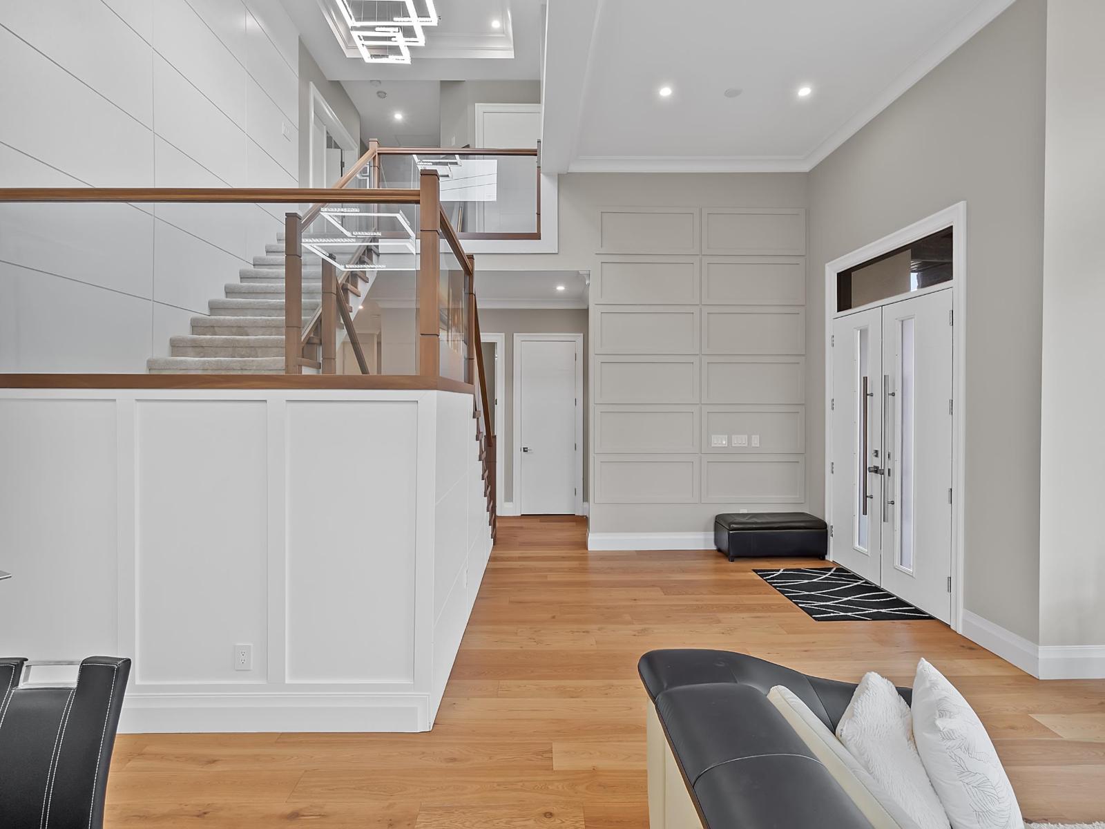Welcome to this luxurious and tastefully designed 3 level home in NORTH DELTA sitting at huge 7900+ sf lot. Grand entrance leading to formal living, dining room. Gourmet kitchen with Bosch appliances, fully equipped wok kitchen. Guest bedroom with ensuite. This home features 8 bedrooms, 7 baths, Den, Theatre room with BAR area and 2 bedrooms LEGAL suite. All high end finishing including Hardwood flooring, AC, HRV, security cameras. Huge covered Sundeck for all your entertainment needs. Convenient location close to school, transit and Rec center. Call today for private showing. (32493638)
