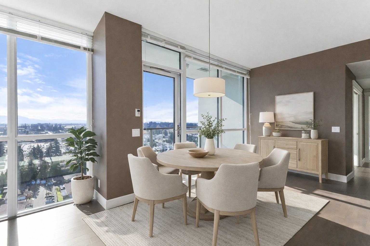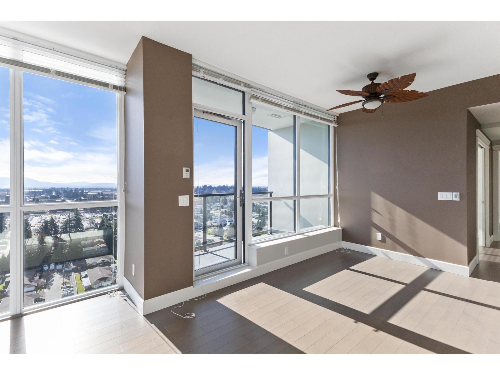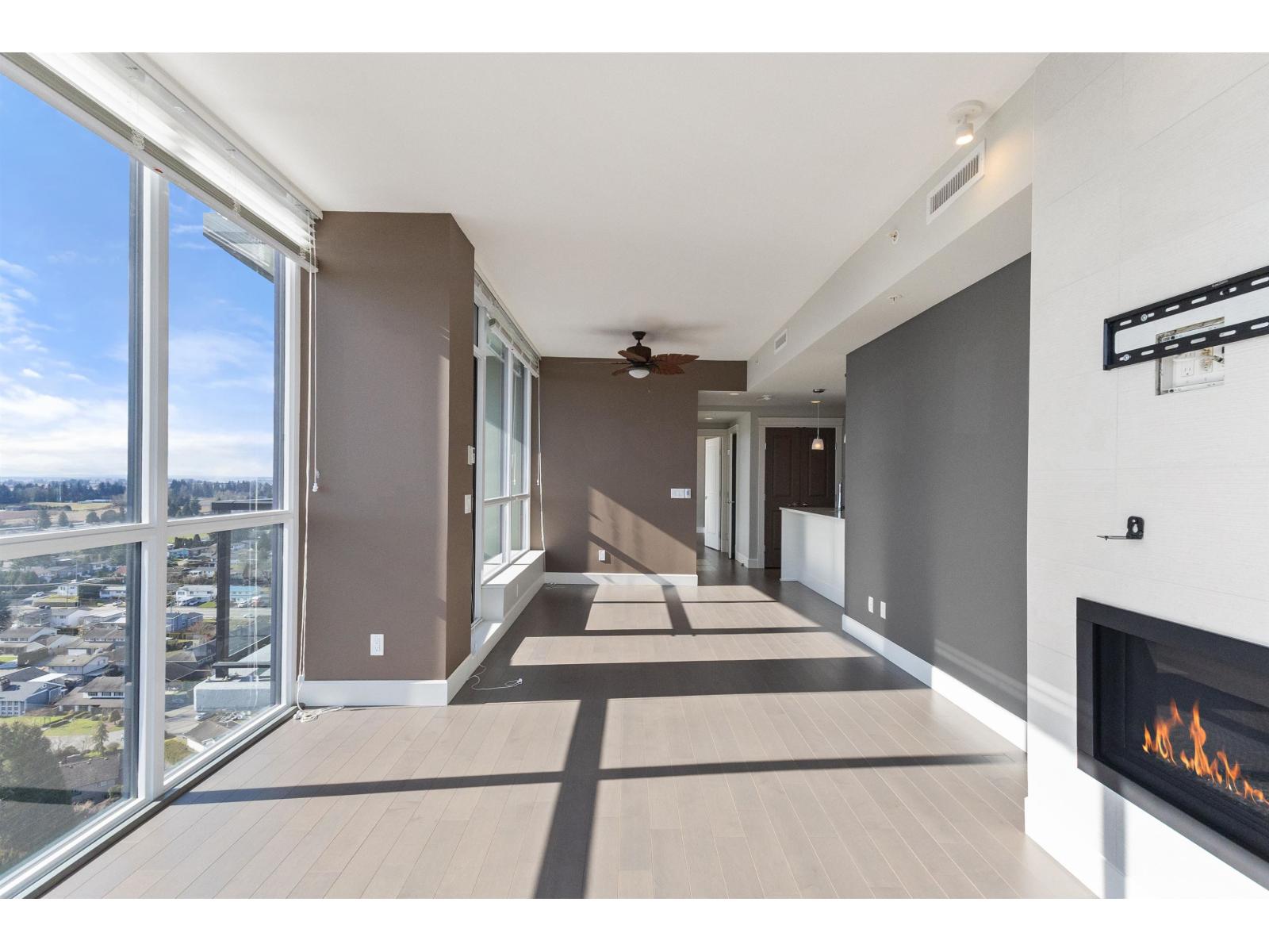 Amazing corner condo on the 22nd floor with wall-to-wall, floor-to-ceiling windows. Fantastic views of Mt. Baker & Valley. This 2 bdrm, 2 bath condo was upgraded & should be in a magazine. Modern kitchen w/high-end S/S appliances, quartz counter tops, bright dining area& a living room with a gas fireplace. Covered sundeck to adore the gorgeous view & sunsets. 2nd bedroom/office has a wall of cabinets, murphy bed. Deluxe primary suite w/walk through closets & ensuite, 2 sinks, tiled walk-in shower. Full-size laundry rm. Lots of extras here. Geo cooling & heating. Parking for 1 plus a storage locker. Amenities galore- indoor pool, hot tub, fitness centre, club room, workshop, 2 guest suites, restaurant & doctor's office in building& pet-friendly. Walk to Mill Lake, shopping, and the hospital (32494183)