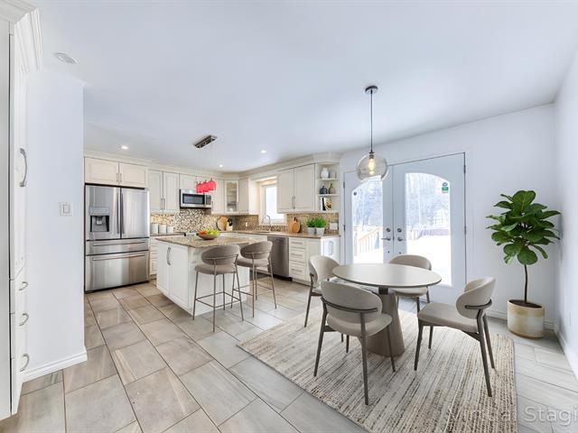 A true gem! Completely renovated stone bungalow offering refined comfort and quality finishes throughout. The custom kitchen features granite countertops, a central island, under-cabinet lighting, and heated floors. The beautifully updated bathroom includes a glass-enclosed shower, double vessel sinks, a deep soaker tub, and heated floors. The finished basement is intelligently laid out with three separate rooms, providing outstanding versatility for home office space, a gym, or recreation areas. Completing this level are an expansive laundry room, a generously sized workshop, and a full bathroom. (44535408)