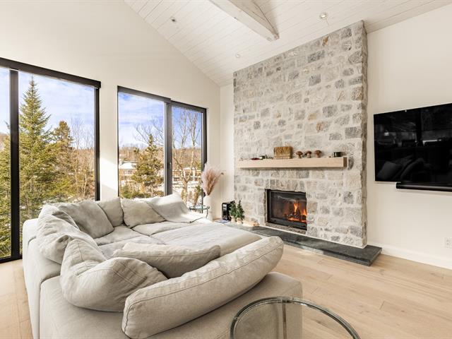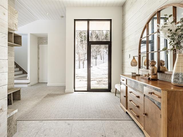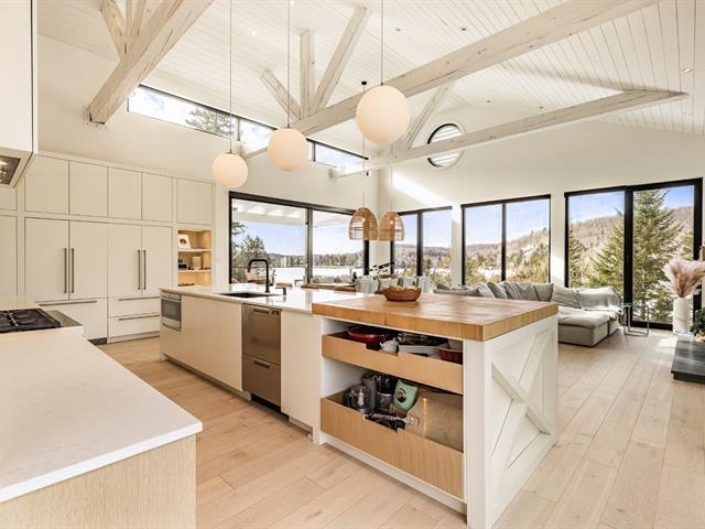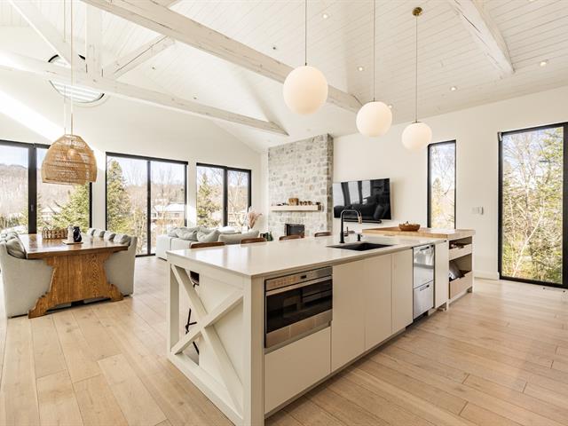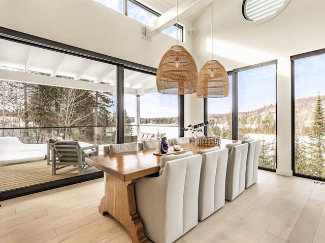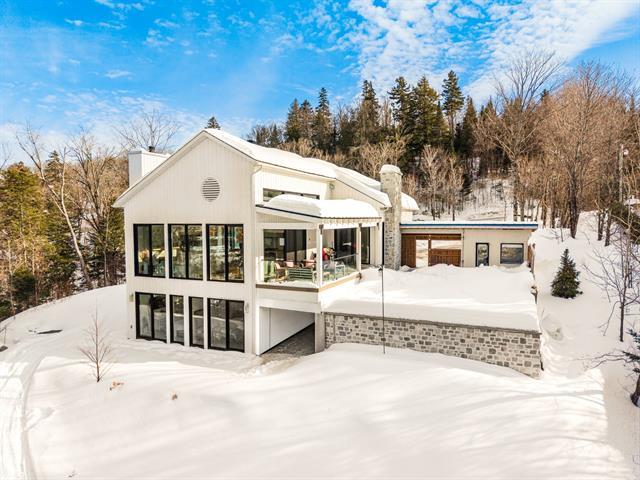 Set on the pristine shores of Lac du Nord in the upscale Laurentian community of Estérel, this 2021 construction boasts breathtaking lake and forest views with all day sunshine and spectacular summer evening sunsets over the water. The turn-key 4-bedroom home was designed to make the most of indoor/outdoor living as exemplified by the easy access to the gorgeous pool and lounge area off the main living space. Features abound such as oversized windows, soaring ceilings, a fabulous designer kitchen and bathrooms, gorgeous oak floors, a fabulous integrated double garage with extra height and so much more. This is lake living at its best! (57508232)