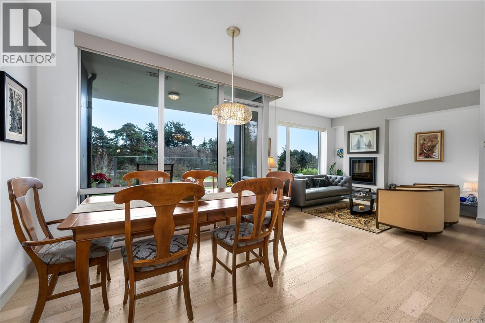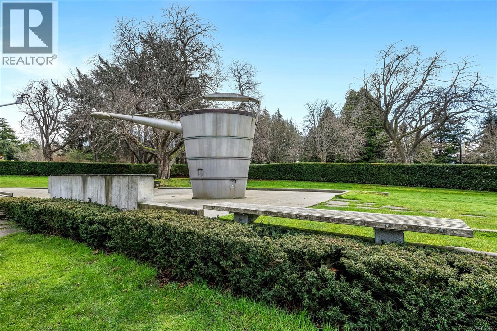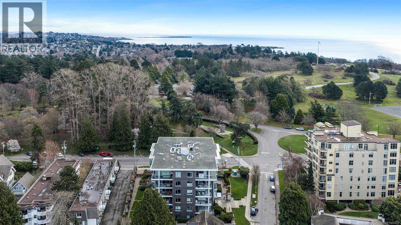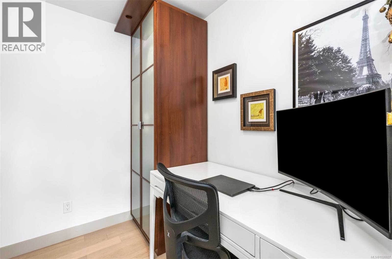 Experience luxurious urban living in this bright, beautifully appointed 4th-floor unit at “Douglas on the Park,” a premier steel-and-concrete building with stunning unobstructed Beacon Hill Park views and steps from the Dallas Rd waterfront. This 860+ sqft residence offers 1 bedroom + spacious den (ideal office or 2nd bedroom) and 1 elegant bath. Features include 9' ceilings, floor-to-ceiling windows, hardwood floors, and a modern fireplace. The chef-inspired kitchen boasts quartz countertops and premium stainless-steel appliances. The generous primary bedroom provides ample closet space, while the spa-like bath offers dual vanities, a soaker tub, glass shower, and heated floors. Includes secure underground parking, large storage locker, bike storage, EV charging, and pet-friendly living. Prime James Bay location near Cook St Village and downtown—walkable city living surrounded by nature, oceanfront paths, and vibrant community amenities. (30427626)