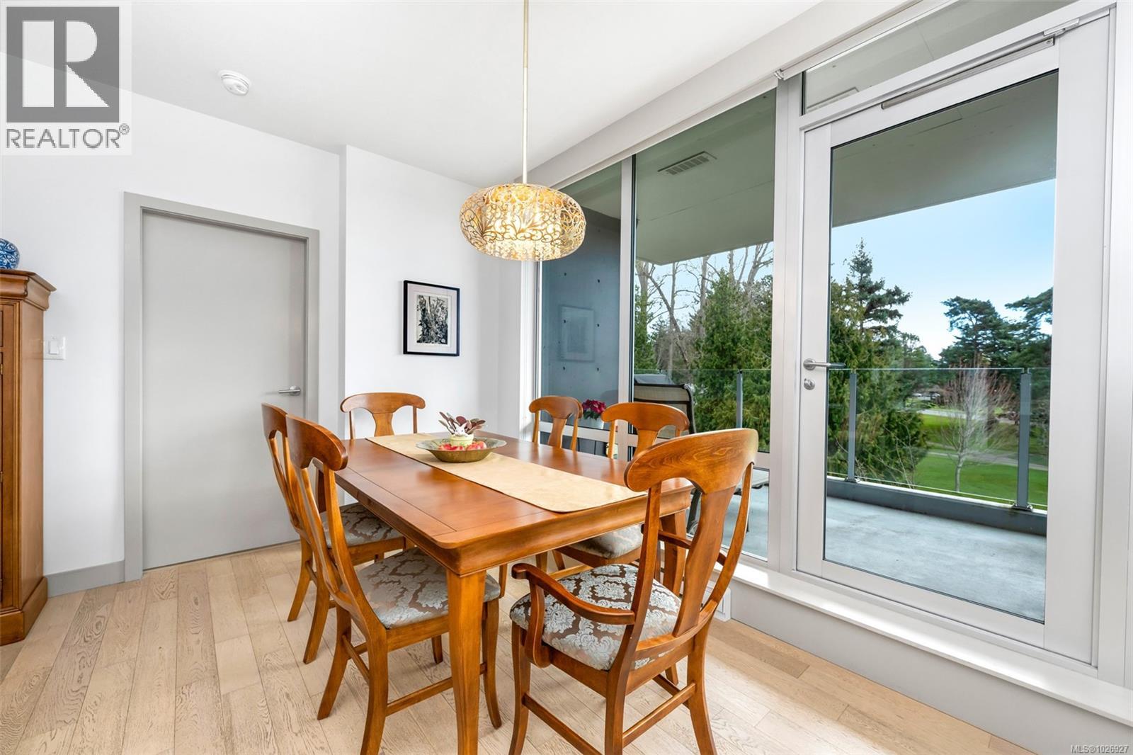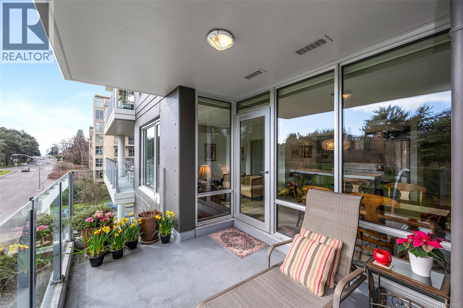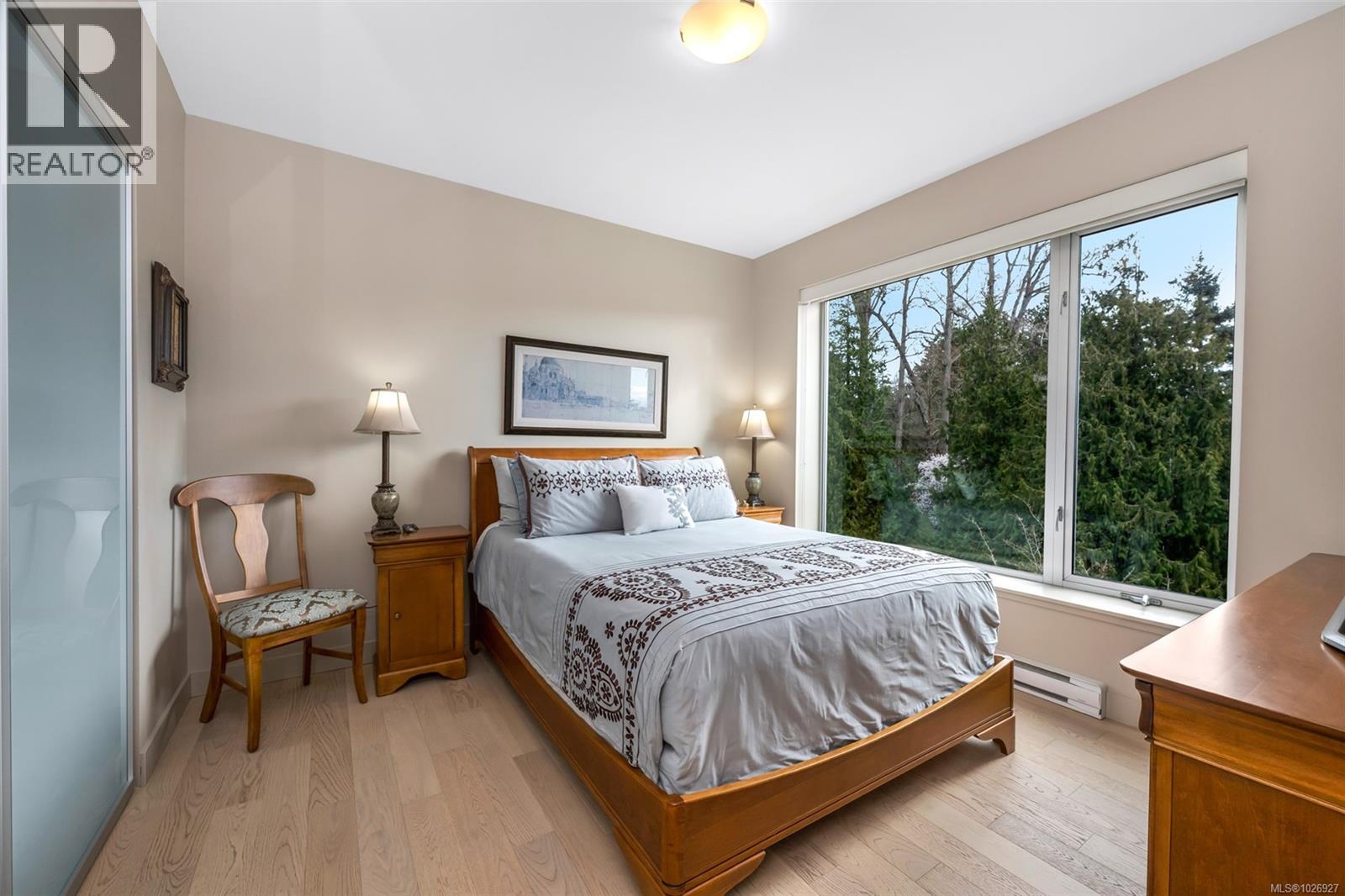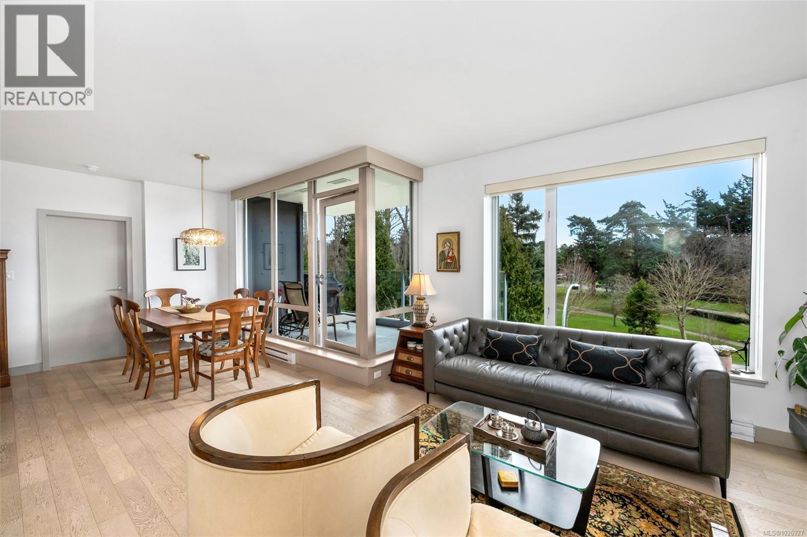 Experience luxurious urban living in this bright, beautifully appointed 4th-floor unit at “Douglas on the Park,” a premier steel-and-concrete building with stunning unobstructed Beacon Hill Park views and steps from the Dallas Rd waterfront. This 860+ sqft residence offers 1 bedroom + spacious den (ideal office or 2nd bedroom) and 1 elegant bath. Features include 9' ceilings, floor-to-ceiling windows, hardwood floors, and a modern fireplace. The chef-inspired kitchen boasts quartz countertops and premium stainless-steel appliances. The generous primary bedroom provides ample closet space, while the spa-like bath offers dual vanities, a soaker tub, glass shower, and heated floors. Includes secure underground parking, large storage locker, bike storage, EV charging, and pet-friendly living. Prime James Bay location near Cook St Village and downtown—walkable city living surrounded by nature, oceanfront paths, and vibrant community amenities. (30427626)