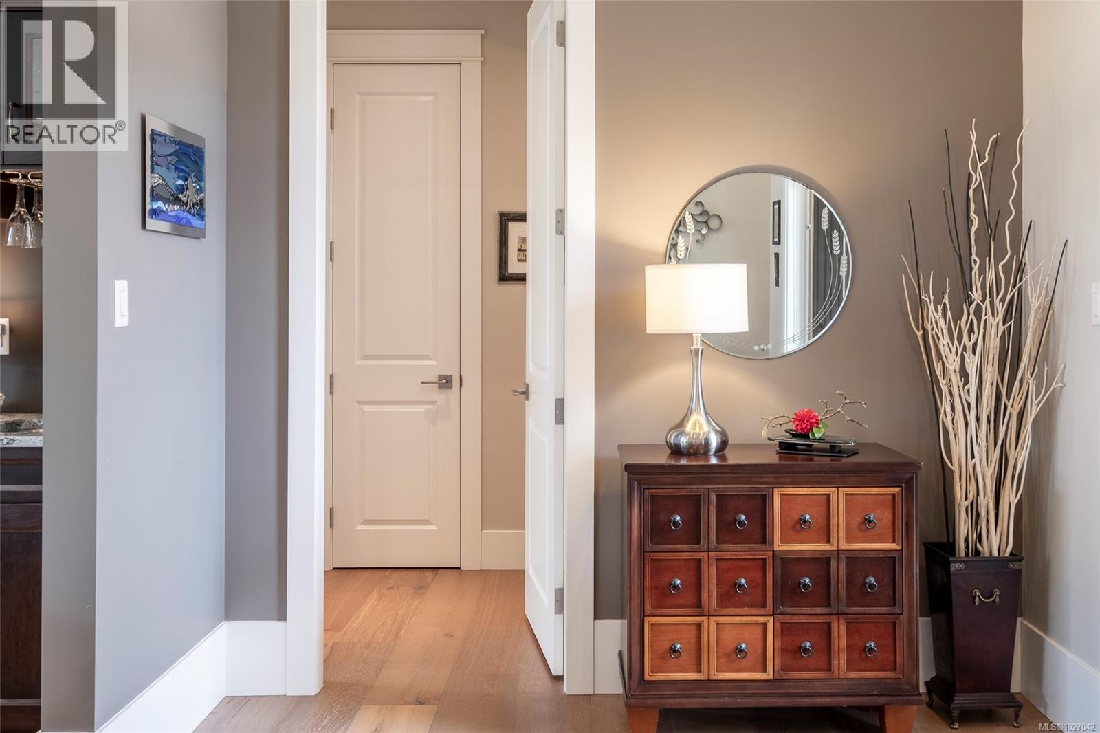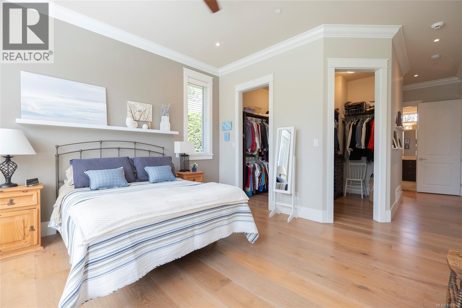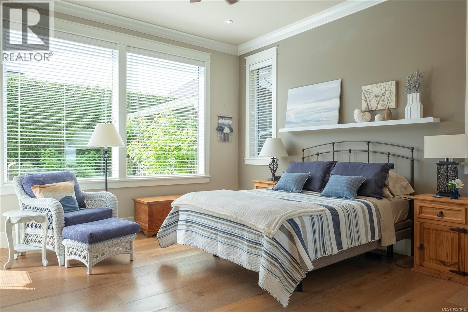 This exquisite custom-built rancher, completed in 2016, is nestled in an exclusive enclave of charming homes just steps from the beach. Boasting meticulous craftsmanship and high-end finishes, this residence offers luxury and comfort. Upon entering, you are greeted by an expansive open design with 11-foot ceilings. The chef's kitchen features a gas cooktop, double ovens, built-in microwave, an instant hot water tap, and a garburator. The home includes three spacious bedrooms and 2 ½ baths, with heated floors in both full bathrooms. For entertaining, there is a bar area with a wine fridge and a living room with a built-in entertainment center. Hardwood and ceramic floors add sophistication. The private garden offers sunny exposure and a sprinkler system. Additional features include HRV, a variable-speed heat pump, fire suppression sprinklers, hot water on demand, central vacuum, an oversized double garage, a garden shed, and phantom screens. 75'' TV in living room included in sale. (30427765)
