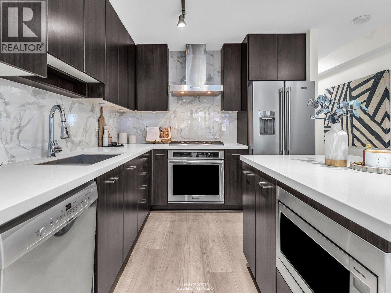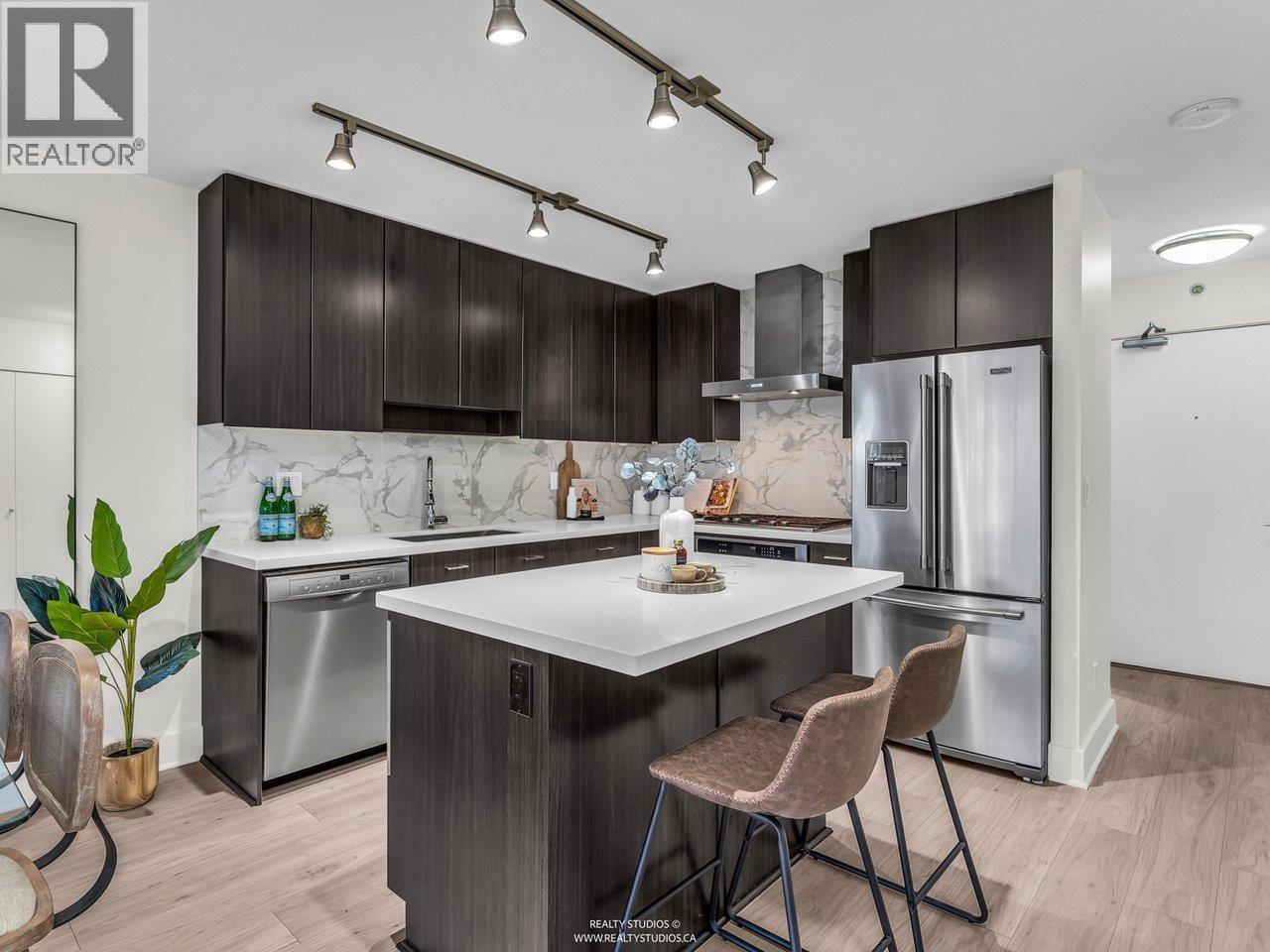 RARELY available is this bright, Northwest facing 2 bdrm & 2 bathrm suite at AVIARA by Ledmac. The extra large, end to end balcony overlooks the peaceful and well-maintained ROOF-TOP Garden and play area giving you a sense of calm privacy in an urban centre. Efficient floor plan with newer FULL SIZE APPLIANCES, updated flooring & paint. Amenities include hotel-like GUEST SUITE, exercise rm, and rec rm with pool table & wet bar. Skytrain, shopping, parks are no more than a few blocks away. The BEST location with both CONVENIENCE & QUIET. 1 parking stall and 1 storage locker included. OPEN Sat/ Sun 2-4pm (32494506)