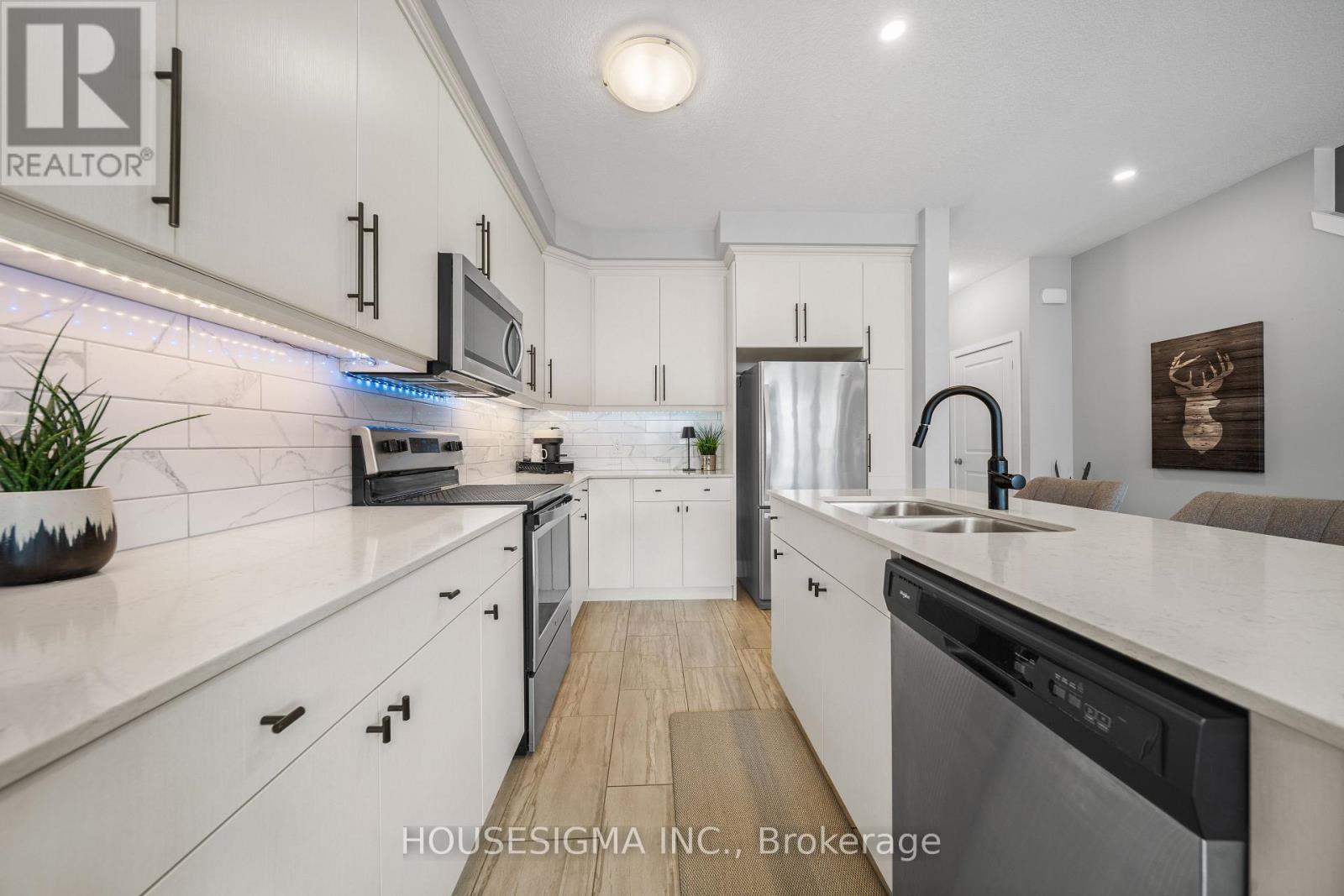 Built by Ironstone Homes, the LUNA Model offers 2,024 sq. ft. of fully finished living space designed for the season of life you're stepping into, whether growing your family or your career.Mornings begin in a bright open-concept main floor where 9-foot ceilings and engineered hardwood create a warm, elevated feel. Coffee at the quartz kitchen island. Kids finishing homework at the table. Friends gathered in a space that flows effortlessly from kitchen to dining to living. A convenient main-floor powder room keeps everyday life practical and hosting easy.Upstairs, comfort truly sets in. The spacious primary retreat features a private ensuite and two full walk-in closets because sharing space shouldn't mean sacrificing it. Two additional bedrooms are ready for nurseries, guests, or home offices, supported by another full bathroom. Second-level laundry with Whirlpool washer and dryer makes busy weeks smoother.The fully finished basement offers flexibility many townhomes don't. A large rec room for movie nights or play space includes a built-in Murphy bed and its own 4-piece bathroom, ideal for overnight guests, extended family, or a private workspace. With three full bathrooms plus a powder room, mornings feel manageable.Outside, your southwest-facing backyard deck brings warm natural light all afternoon and sunsets worth slowing down for, the kind that turn ordinary evenings into moments.Visitor parking sits right beside the unit so guests won't circle for a spot. Minutes to the 401 Highway for an easy commute, about 12 minutes to White Oaks Mall, Canadian Tire, Best Buy, LCBO, Costco, and the outlet stores. The newly built Jackson Meadows Public School is around the corner, with a French immersion elementary within walking distance, a major plus for growing families. The space, the light, the location.. this is where your next chapter begins. (42222453)