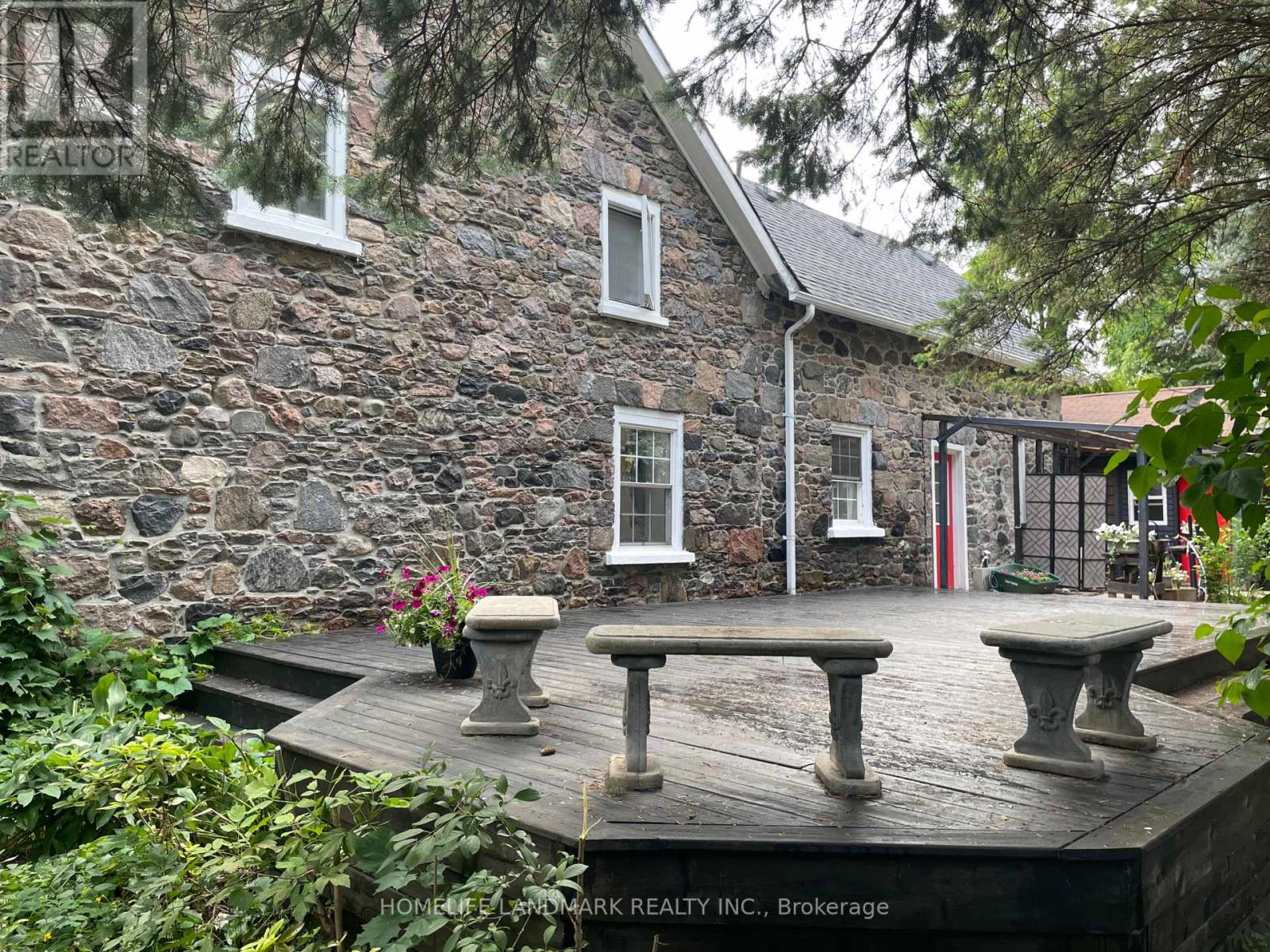 A Unique Heritage Stonehouse on a Big 144' Frontage Lot near Pickering Town Center; Full House Exterior Built with 2 Feet Thick Beautiful Raw Crystal Stones; Gothic Revival Architectural Style; A Serene Retreat Paradise with a Heavenly Perennial Garden. Existing 2 Legal Units above the Ground; North Wing Master Unit Offering 1 Master Bedroom, 1 Washroom and 1 Kitchen, Currently Tenanted; South Main Unit Offering 6 Bedrooms, 2 Washrooms and 1 Kitchen, Currently Owner & Renters Occupied; 2 Units Total Monthly Income $6850. Plus A Detached Garage, Used as Yoga Studio by the Owner Previously with 12+ Parking. Building Expansion Also Permitted by Heritage Committee. A Good Choice Whether to Use the Whole Property as a Single Family Dwelling with a Master Unit, or One Unit for Living and the Other for Rental Income, and with a Studio for Home Business, or Building and Converting into Your Dream Mansion Home. Sold As It Is. (42222755)