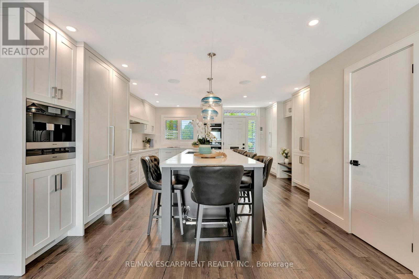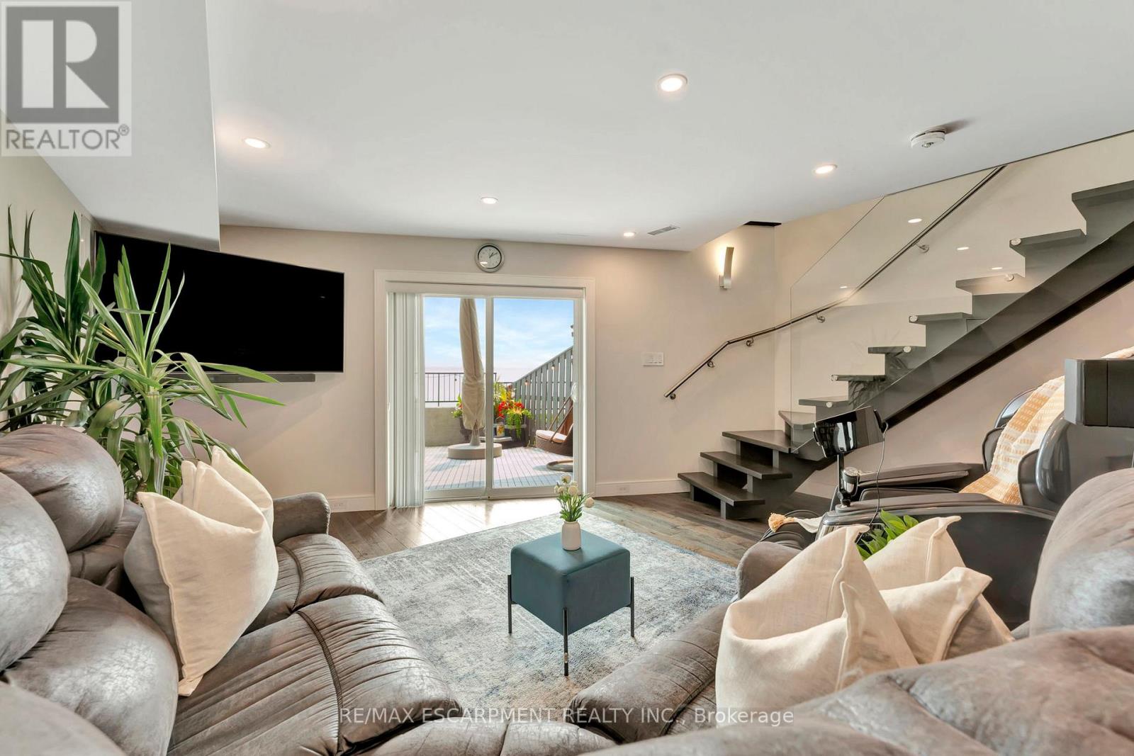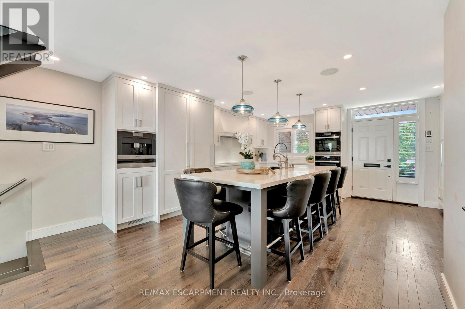 Client Rmks:Welcome to the ultimate lakefront lifestyle. This fully renovated 3-level townhouse offers unobstructed, panoramic views of Lake Ontario so close to the water, you can practically dip your toes in. Located just 600 metres from downtown Burlington, this is a rare blend of tranquility and convenience. This 3-level townhouse (1,600 plus SF) offers 1 bedrooms (potential for 2nd if you converted large walk-in closet back into a bedroom), 3 bathrooms (2 full, 1 powder) and 4 separate patio/terraces (huge 400 SF lower terrace at the water's edge). In 2020 this unit was completely gutted to the studs and rebuilt by the renowned Bespoke Home Solutions with a total renovation budget exceeding $500K . The gourmet kitchen has been masterfully crafted with designer finishes including: Insinkerator food waste disposal, hot water tank/dispenser, Porter & Charles warming drawer, Built in Miele Appliances (including a $7K plumbed in Coffee Machine), microwave/convection oven, Combi Steam Oven, Dacor Fridge & Freezer and Gravelle custom cabinetry throughout. The spacious primary suite is a true retreat, featuring a spa-inspired ensuite with heated floors, a two-person soaker tub, and a private balcony with stunning sunrise views over the lake. The second bedroom has been converted into a designer walk-in closet with custom cabinetry and a centre island, offering both form and function (easily reverted to a bedroom if desired). Lower level family room offers a full bathroom, ample storage and ability to offer a guest suite with use of a murphy bed. Backwater valve in basement. Home is equipped with Sonos built in ceiling speakers with hooked up amplifiers and speaker selector options. Large 400 SF back terrace is fashioned with a BBQ gas line and has a hook up for a Hot Tub. (42222794)