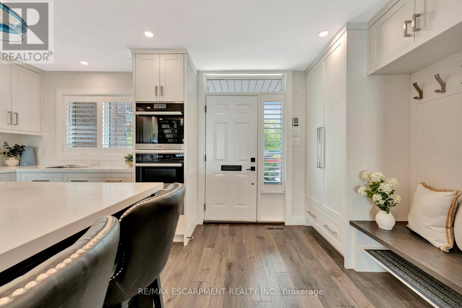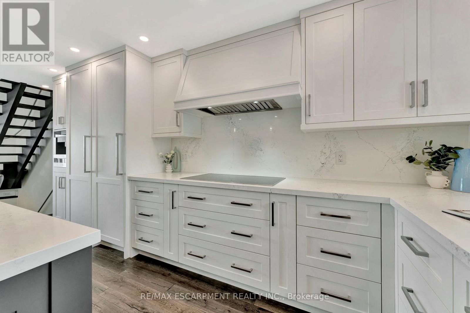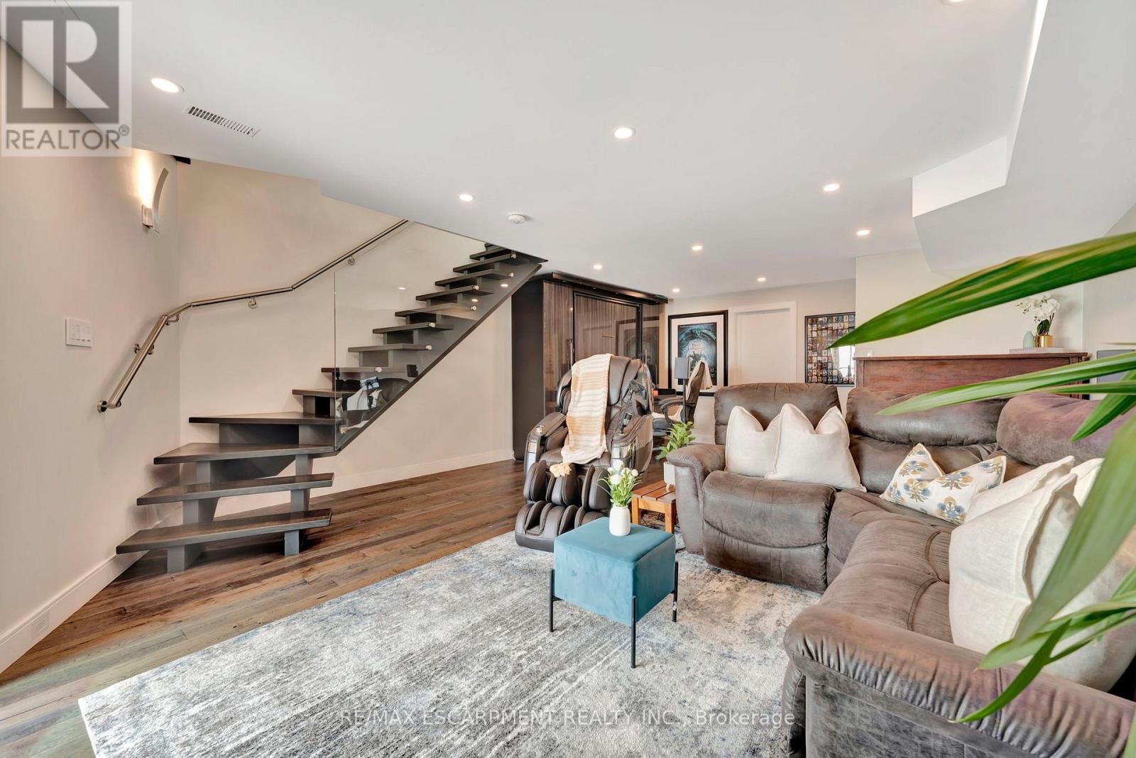 Client Rmks:Welcome to the ultimate lakefront lifestyle. This fully renovated 3-level townhouse offers unobstructed, panoramic views of Lake Ontario so close to the water, you can practically dip your toes in. Located just 600 metres from downtown Burlington, this is a rare blend of tranquility and convenience. This 3-level townhouse (1,600 plus SF) offers 1 bedrooms (potential for 2nd if you converted large walk-in closet back into a bedroom), 3 bathrooms (2 full, 1 powder) and 4 separate patio/terraces (huge 400 SF lower terrace at the water's edge). In 2020 this unit was completely gutted to the studs and rebuilt by the renowned Bespoke Home Solutions with a total renovation budget exceeding $500K . The gourmet kitchen has been masterfully crafted with designer finishes including: Insinkerator food waste disposal, hot water tank/dispenser, Porter & Charles warming drawer, Built in Miele Appliances (including a $7K plumbed in Coffee Machine), microwave/convection oven, Combi Steam Oven, Dacor Fridge & Freezer and Gravelle custom cabinetry throughout. The spacious primary suite is a true retreat, featuring a spa-inspired ensuite with heated floors, a two-person soaker tub, and a private balcony with stunning sunrise views over the lake. The second bedroom has been converted into a designer walk-in closet with custom cabinetry and a centre island, offering both form and function (easily reverted to a bedroom if desired). Lower level family room offers a full bathroom, ample storage and ability to offer a guest suite with use of a murphy bed. Backwater valve in basement. Home is equipped with Sonos built in ceiling speakers with hooked up amplifiers and speaker selector options. Large 400 SF back terrace is fashioned with a BBQ gas line and has a hook up for a Hot Tub. (42222794)