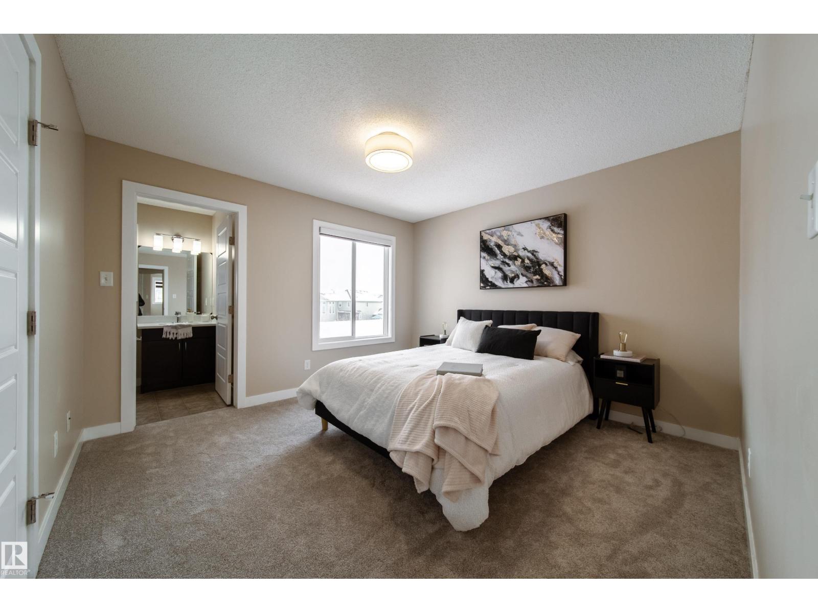 Welcome to this beautifully renovated Tamarack Common duplex, ideally situated on a quiet local-traffic street in a growing, family-friendly community. A charming front porch welcomes you into a bright, functional layout enhanced by new flooring, fresh paint, and new carpet. The kitchen showcases upgraded quartz countertops, a spacious pantry & island, and brand new appliances throughout, perfect for everyday living and entertaining. Upstairs offers good-sized bedrooms, including a comfortable primary retreat with its own 4 pc ensuite. A dedicated mudroom with new main-floor laundry adds everyday convenience. Major mechanical upgrades include an HRV system, high-efficiency furnace, and HWT for improved comfort and efficiency. Step outside to enjoy the large backyard — ideal for relaxing, play, or future garage potential. Walking distance to a newly built school, the Meadows Rec Centre, convenience store, restaurants, and amenities, with easy access to Whitemud & Anthony Henday. Move in Ready!! (33876036)