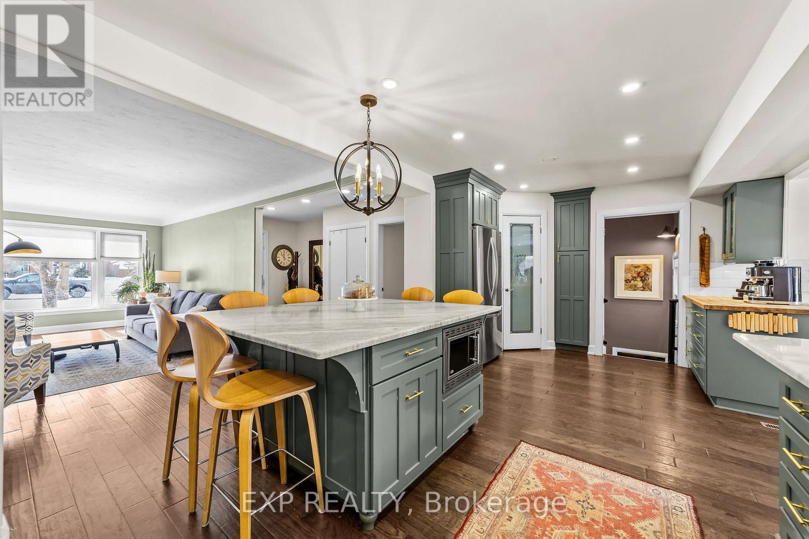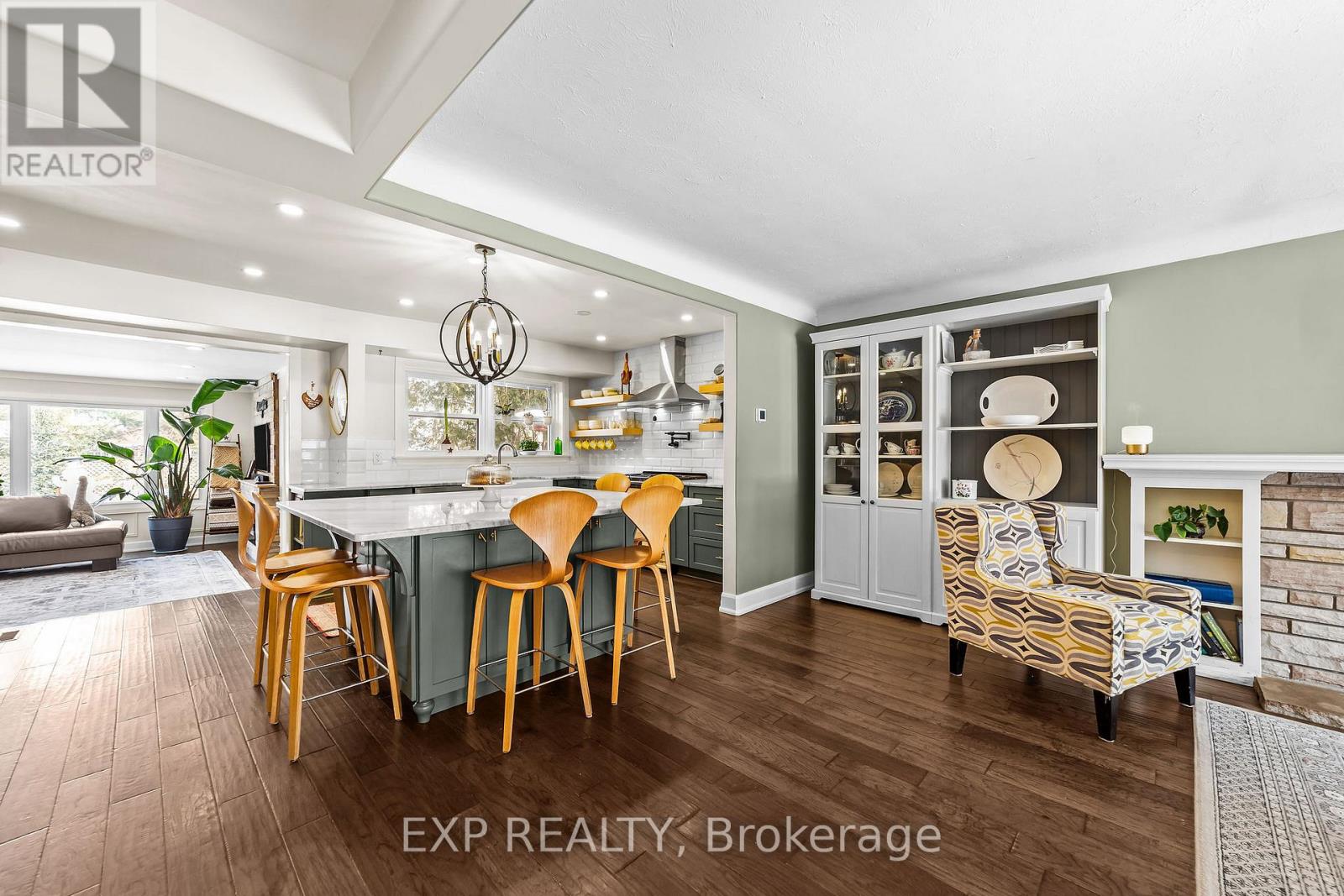 Extensively renovated and maintained, this home features numerous updates throughout. A covered front porch with framed and shingled roof completed in 2020 leads through a newer front door installed in 2022 into a main level redesigned in 2019 to create an open concept layout and expand the front entry space. Engineered hardwood flooring was installed across the main floor in 2020, the majority of windows were replaced in 2018, and exterior doors were updated approximately four years ago. The kitchen was renovated in 2020 and includes new cabinetry, marble countertops, farm sink, pot filler, direct exterior exhaust vent, pantry shelving, and a dishwasher replaced in 2025.The rear sunroom was renovated in 2018 with improved insulation, drywall ceiling, pot lighting, engineered hardwood flooring, a Napoleon electric fireplace installed approximately seven years ago, and French doors leading to the 280 sq ft deck updated in 2023. Bedrooms are recently painted with engineered hardwood flooring and replacement windows. The main floor bathroom was renovated in 2023 with new tile flooring and walls, walk-in shower, updated fixtures, vanity and pot lighting, and an electric towel bar.The lower level includes stairs replaced by London Stair and Railing in 2022 with an additional stair added for improved stepping angle, a tiled landing with newer door leading to the 225 sq ft flagstone patio, furnace replaced in 2022, exercise room carpet updated in 2022, and basement family room and bathroom painted in 2026. Exterior updates include siding, soffit, fascia and eavestroughs in 2018, garage door with keypad entry and two openers installed in 2023, back fence posts replaced in 2024, east side fence with gates completed in 2023, and hot tub heater, pump and controls replaced approximately two years ago along with lid and lifter. (42222856)