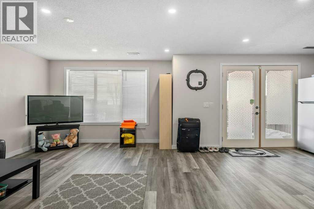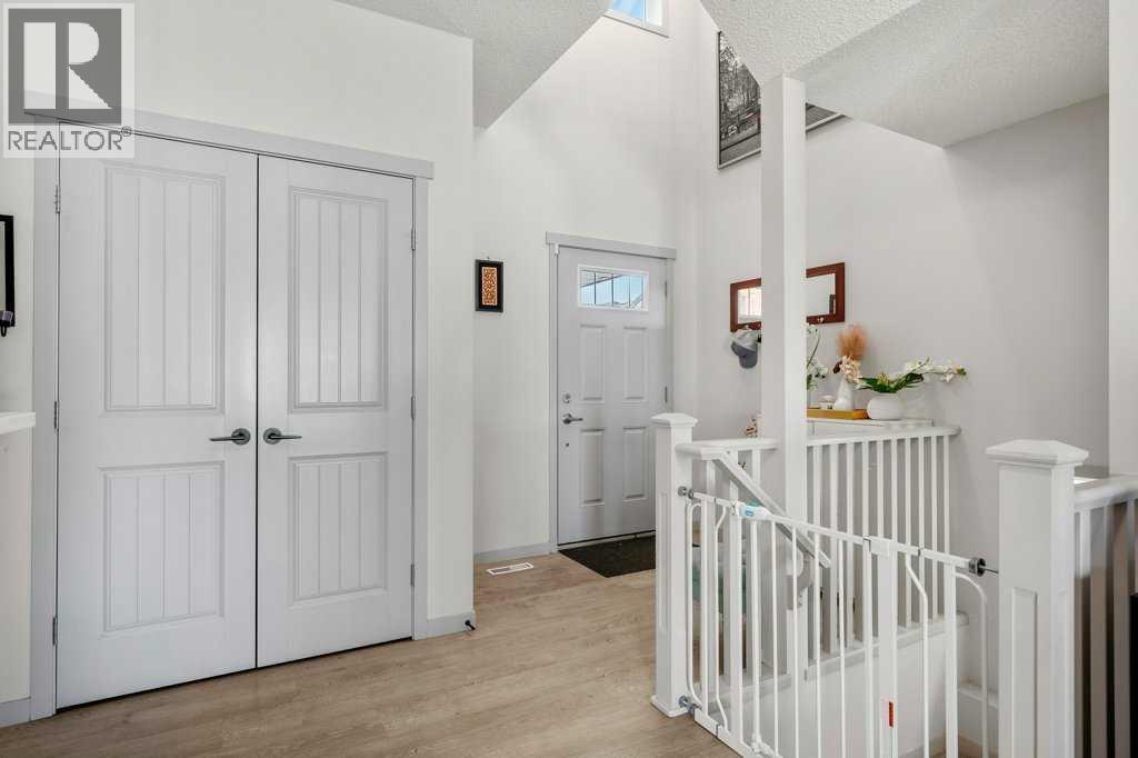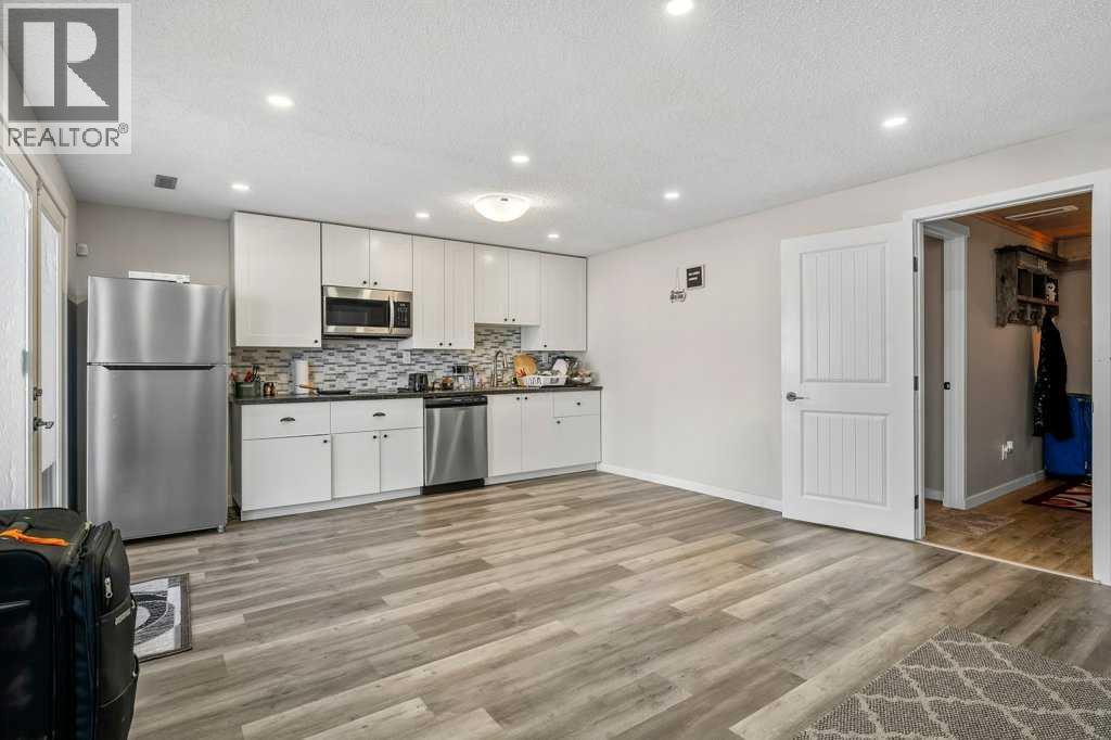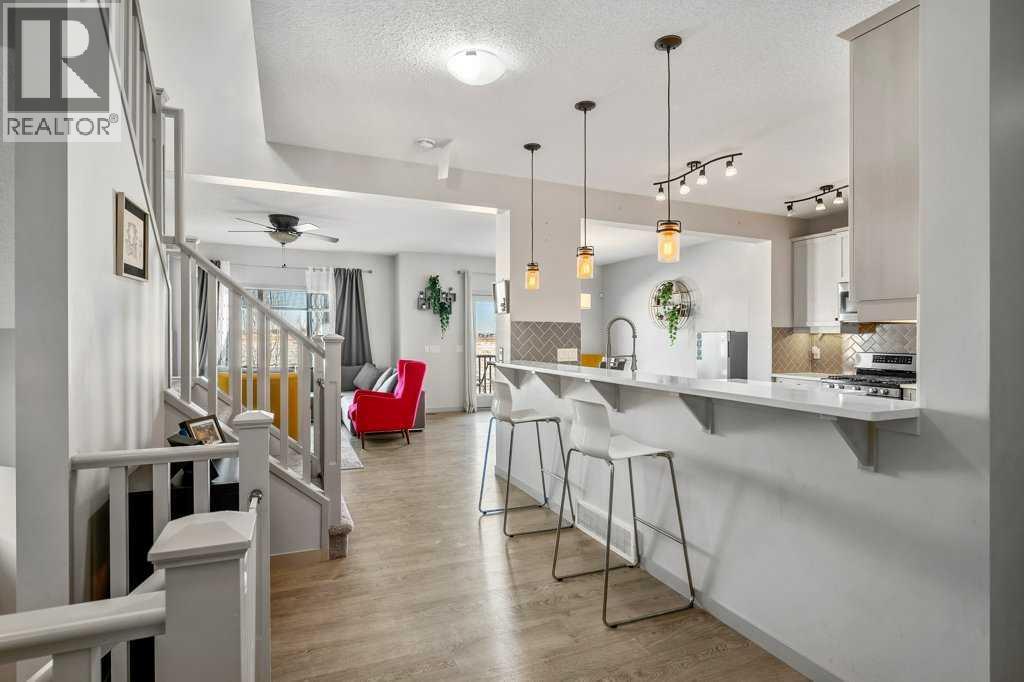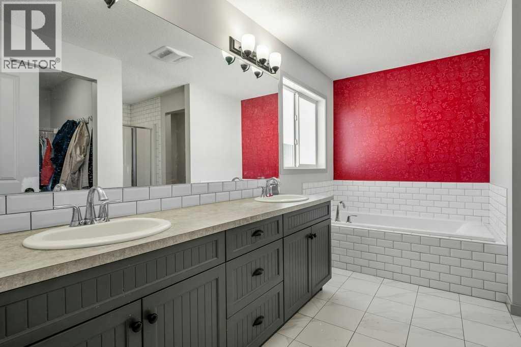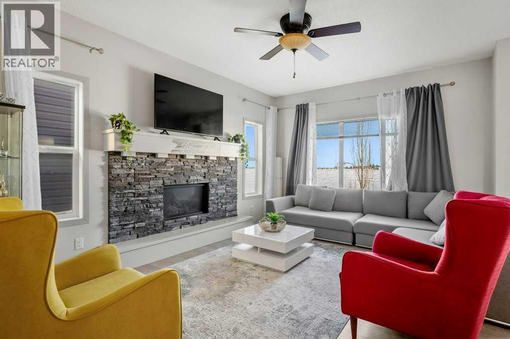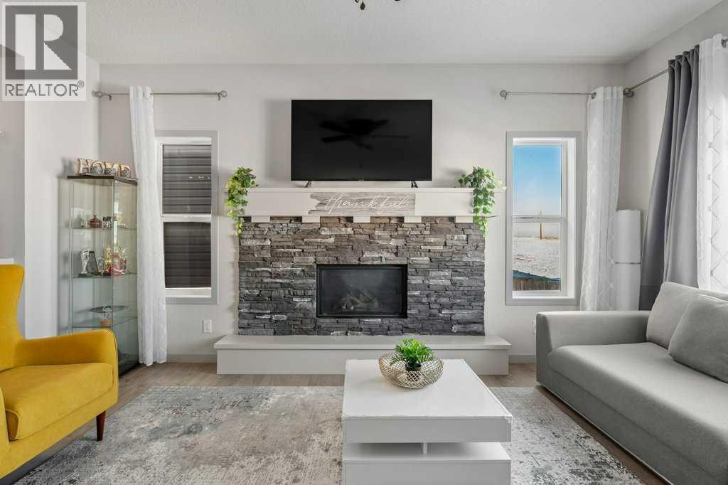 Situated on a quiet, family-friendly street just steps from parks and green spaces—with no neighbours behind—this impressive home offers a fully developed walkout basement with an illegal one-bedroom suite, central air conditioning, newer shingles, and a striking curb-appeal-rich front elevation boasting vertical siding and stone accents. Step inside to 9’ ceilings and neutral tones throughout, creating a bright and welcoming atmosphere. A convenient side mudroom with a 2-piece bathroom sits just off the entry, while the back of the home opens into an entertainment-style layout designed for modern living. The kitchen features a full appliance package including a gas stove, extended cabinetry, quartz countertops, prep island, walk-through pantry, herring bone backsplash—anchored by a massive eating bar overlooking the spacious family-size dining area with access via the sliding doors to the upper vinyl deck wrapped in railing.The rear family room is warmed by a focal gas fireplace with upper mantle and lower hearth, perfectly positioned to capture brilliant east-facing morning light. Open railings and transom windows lead upstairs to a thoughtfully designed upper level, highlighted by a central bonus room with barn door closure. Two front children’s bedrooms share a tiled 4-piece bathroom accented with subway tile, while an upper laundry room adds everyday convenience. The rear primary retreat easily accommodates a king-size bed and includes a walk-in closet and spa-inspired 5-piece ensuite featuring tiled floors, dual sinks, a deep soaker tub wrapped in tile accents, and an oversized walk-in shower.The walkout lower level is fully finished and filled with natural light from a wall of windows, offering a second living space, kitchen area with a full appliance package, fourth bedroom, and a 3-piece bathroom—ideal for extended family or supplemental living. Outside, the yard is fully fenced and landscaped, complete with a lower concrete patio, synthetic grass put ting green, and a wrap-around walkway from front to back.Located on a traditional lot, this well-appointed home delivers space, functionality, and lifestyle—sure to impress. (31688563)