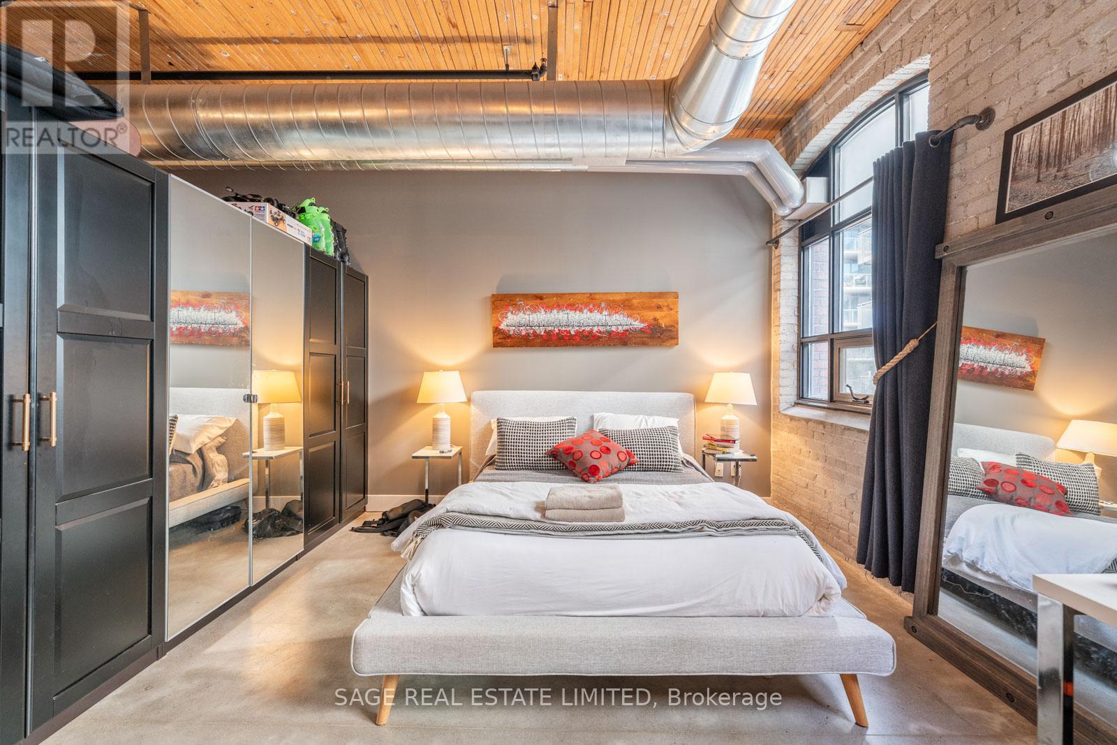 This hard loft isn't your typical "loft-style" condo that throws in a faux beam and calls it a day. This is the real deal - a true hard loft in a 1914 built building, with exposed brick, heavy timber, post and beam ceilings, and the kind of character you can't replicate (no matter how hard someone tries with a renovation budget and a Pinterest board). Inside you'll find over 800 sq ft of open-concept living, with smart updates that actually matter. A renovated updated washroom, a custom built wall that adds function and separation without ruining the loft vibe, and custom closets because let's be honest storage matters. And yes - it comes with parking and a locker, because living somewhere cool is great, but having somewhere to put your car and your stuff is priceless. The building itself is everything people say they want when they say "hard loft". It's historic, authentic, and full of that old-school industrial charm that newer condos try to imitate and somehow always miss. Step outside and you're in one of the best pockets in the east end. You're a stone's throw from some of the best pubs, bars, and restaurants around, with the Broadview Hotel just up the street for boutique-hotel vibes, cocktails, and "we're only staying for one" lies. Add in fine dining and Michelin-rated spots nearby, great parks, quick access to the DVP, and an easy hop to downtown - and suddenly you're living in the kind of neighbourhood people won't shut up about (for once, they're right). Genuine Hard lofts are rare. Hard lofts like this in the east end with parking, a locker are even rarer. If you've been waiting for something with real character, congrats. You found it. (42223155)