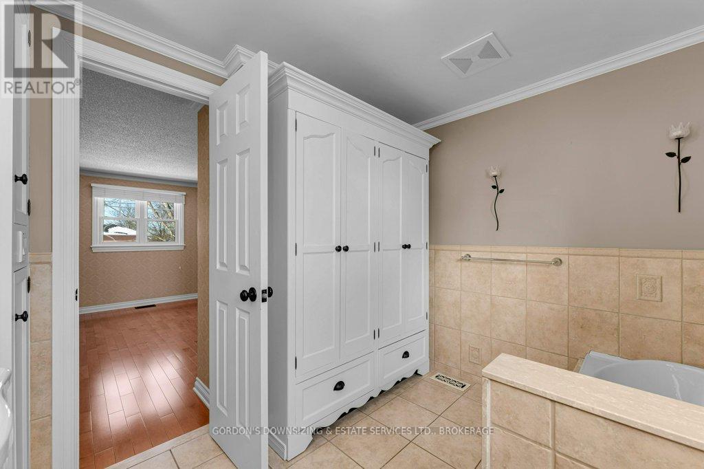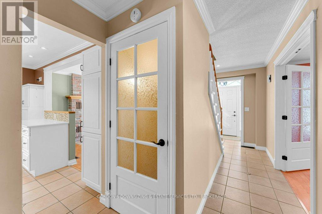 Welcome to 1 Buckingham Court, a beautifully maintained two-storey brick residence with attached garage in a highly desirable east-end neighbourhood. This exceptional 4-bedroom, 4 -bathroom home blends timeless charm with thoughtful upgrades, delivering comfort, style, and everyday functionality. From the moment you arrive, the home's welcoming presence and curb appeal sets the tone. Offering approximately 1,765 sq. ft. of well-designed living space, the main level features hardwood flooring, a tiled entryway, and a bright living room accented with French doors and wooden shutters on all windows. The updated kitchen is both stylish and practical, showcasing quartz countertops, tiled backsplash, ample cabinetry with pull-out, under cabinet lighting and a generous pantry. The adjoining dining room features a gas fireplace and a large bay window; the kitchen also flows seamlessly into a grand family room with a vaulted ceiling, custom built-in cabinetry with a home office workstation and gas fireplace. From here, step out to a private backyard with mature trees, a spacious deck an interlocking stone patio, and a hot tub-perfect for relaxing or hosting guests. Upstairs, three generously sized bedrooms offer custom closet organizers and 3-piece main bath. The primary suite features a 3-piece ensuite with custom cabinetry, creating a peaceful retreat. For an added touch of everyday luxury, all bathrooms have in-floor heating. The fully finished lower level offers impressive versatility with a fourth bedroom, a 3-piece bathroom, a spacious laundry area with sink, ample counterspace and cabinetry, a playroom, TV/rec room, utility room, and additional storage area. Recent updates of a new furnace and heat pump (2025) ensure peace of mind and move-in readiness while the home's design and premium finishes reflect uncompromising pride of ownership. Offers are being presented March 5th at 1:00pm. (42223440)