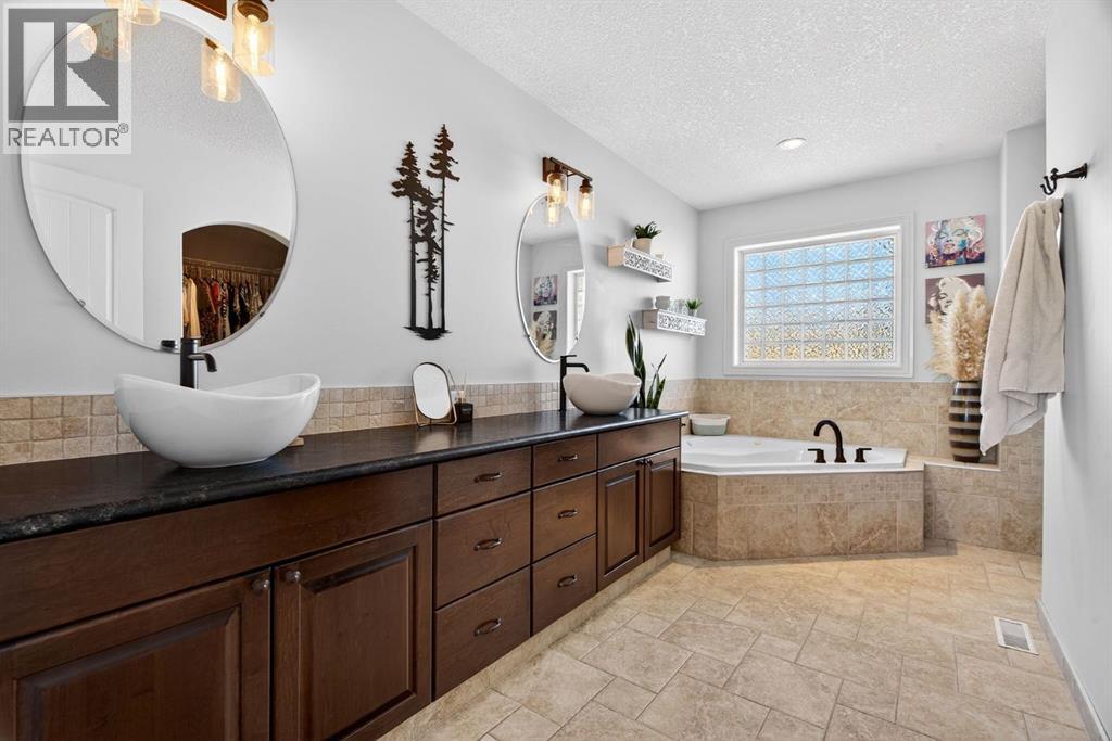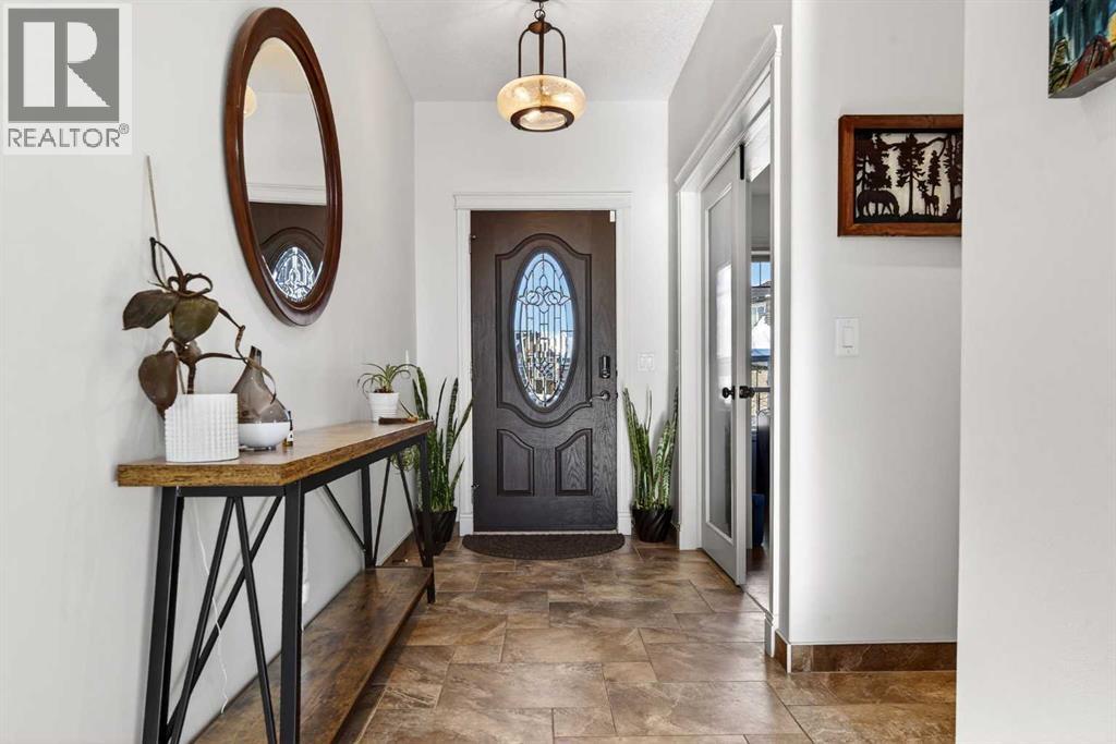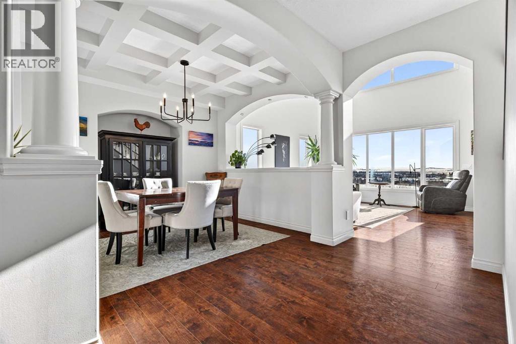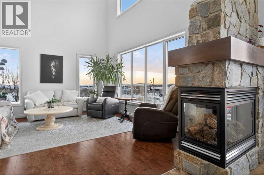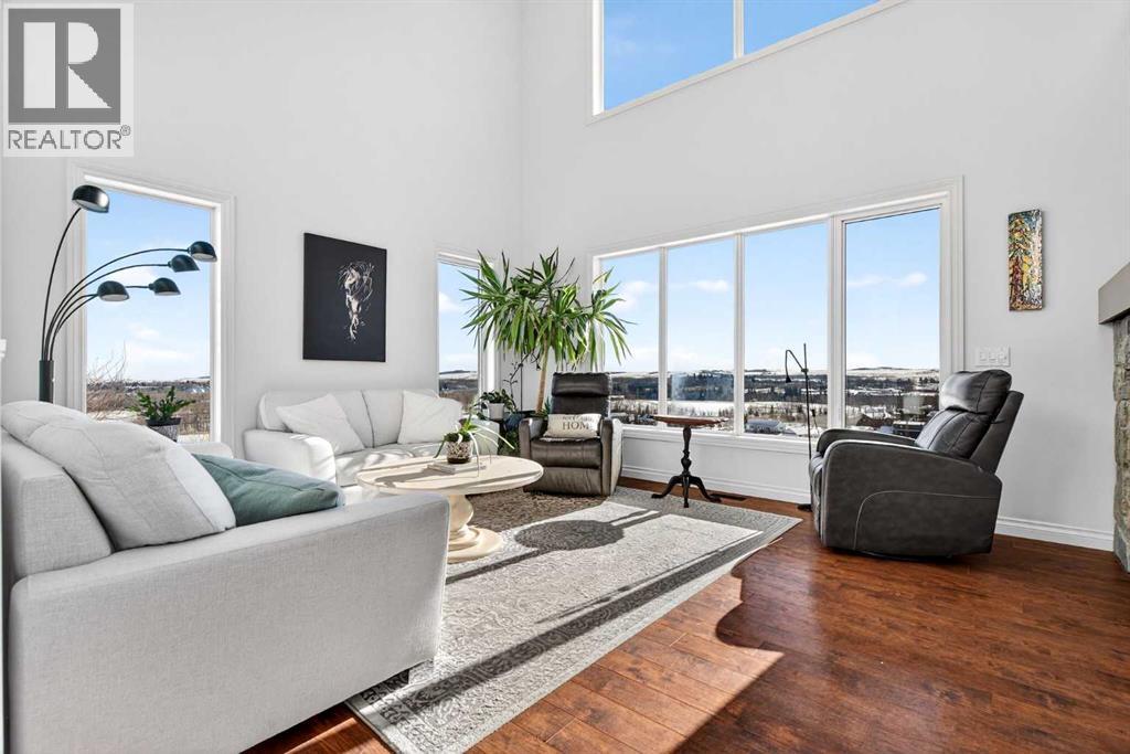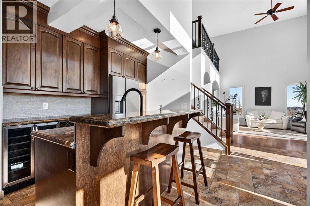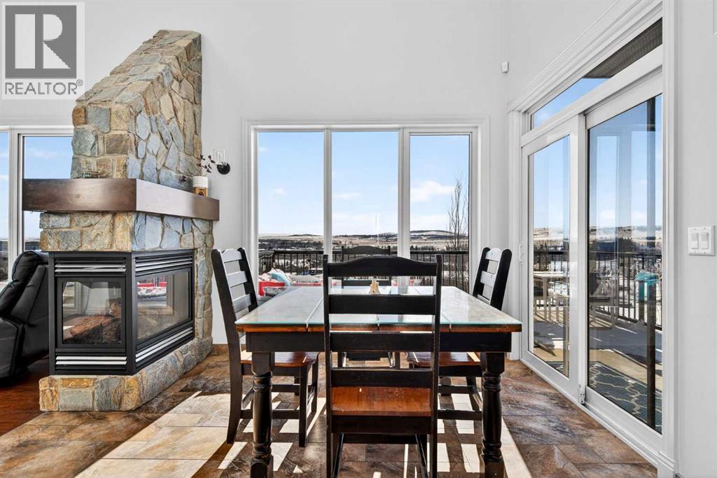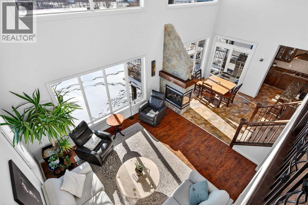 Perched on one of Diamond Valley’s most sought-after pie-shaped lots, 609 Sunrise Close is a true custom walkout with uninterrupted south-facing views and over 3000 sq ft of fully developed living space. From the moment you arrive, the curb appeal sets the tone. Step up to the front entry and into a home where scale and light immediately take over; soaring ceiling heights, expansive windows, and a main level designed to capture every ounce of that southern exposure. The layout was built for real life. A bright front office offers privacy for work-from-home days. A formal dining room anchors family gatherings. The double-vaulted family room, centred around a custom gas fireplace, feels both grand and inviting. At the heart of it all is a kitchen built to perform, featuring granite countertops, travertine backsplash, stainless steel appliances, a 36” gas cooktop, built-in wall oven, raised eating bar, and a walk-through pantry connecting seamlessly to the mudroom and oversized double garage. Open the doors off the breakfast nook and step onto the upper deck, indoor-outdoor living with views for days. Upstairs, the primary suite is a true retreat. Wake up to south-facing views, enjoy a private sitting area and balcony, and unwind in the impressive ensuite featuring dual vanities, a jetted tub, and a custom tiled two-person shower. The oversized walk-in closet with built-in shelving completes the space. Two additional bedrooms and a full bath offer comfortable space for family, while the upper laundry keeps everyday living practical. The loft-style bonus room is a standout feature. Overlooking the main living area below, it maintains an open architectural feel while still functioning as a separate retreat. Thoughtfully placed upper windows were designed to capture those same sweeping south views, meaning even from your upstairs TV room, you’re connected to the landscape beyond. It’s a space that feels elevated, literally and visually, and adds another layer of flexibili ty to the home. The walkout basement opens up even more opportunity. With in-floor heat, two large additional bedrooms, a full bathroom, separate entrance, second laundry, and a kitchenette, the space is ideal for multi-generational living, a nanny suite, extended guests, or added privacy for older children. Bright, spacious, and functional, it doesn’t feel like a basement. Outside, the fully fenced 8,500 sq ft pie-shaped lot offers room to play, garden, entertain, and grow. The south exposure means long evenings, open skies, and uninterrupted views. There is dedicated space for a hot tub, already roughed in and waiting. An exposed aggregate driveway, central air conditioning, updated lighting, and fresh paint add to the long list of thoughtful upgrades throughout. Located in one of Diamond Valley’s most desirable neighbourhoods, you’re surrounded by walking paths, schools, and the small-town lifestyle so many are searching for, all while enjoying the space, privacy and views! (31685333)