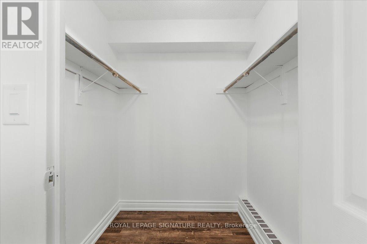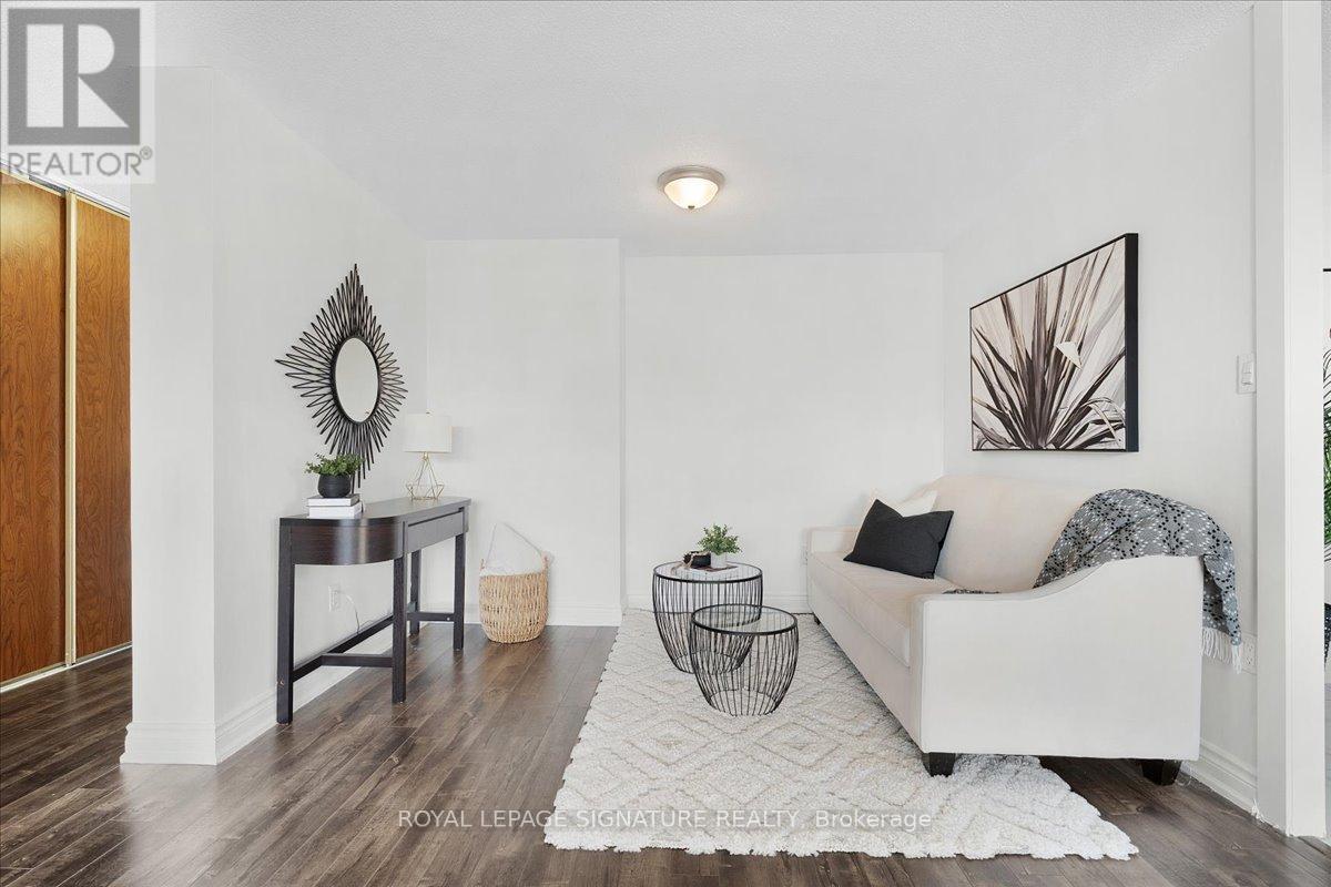 Move-in ready, this beautifully renovated, freshly painted 2 bedroom, 1.5 bath corner suite offers the perfect blend of space, smart design, serenity and unbeatable convenience: All on a lower floor for easy access without elevator traffic.Enjoy a bright, open-concept living and dining area that's perfect for entertaining, paired with a large updated kitchen featuring full-size appliances, modern countertops, rich cabinetry and an oversized walk-in pantry. This smart split-bedroom layout provides excellent privacy, with each bedroom tucked away on opposite sides of the unit. You'll also find a full size separate laundry room a rare condo convenience! Finally step outside onto your private balcony to unwind with peaceful views in a quiet, end-unit setting.Highlights:All-Inclusive Maintenance Fees: Heat, hydro & water and dedicated underground parking. Prime Location: TTC transit, schools, shopping, places of worship, parks and HWY 401/407 Desirable End Unite: Quiet, private and filled with natural light New balcony doors/windows December 2025.This is more than a condo it's a smart investment in a great location. Don't miss out on this spacious, stylish, and serene home! (42223457)