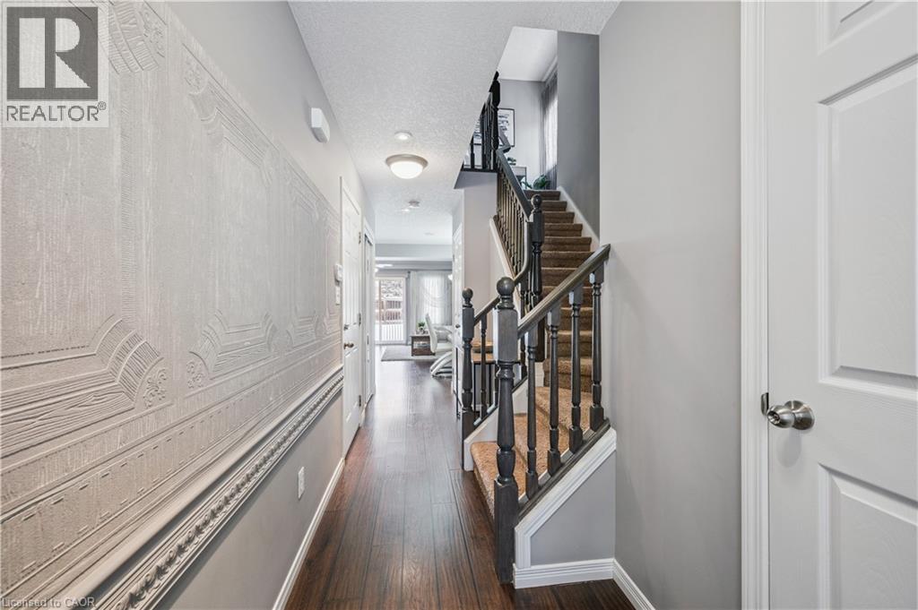 Welcome to 7 Upper Mercer Street — a beautifully finished end-unit freehold townhome nestled in the highly desirable Lackner Woods neighbourhood of Kitchener. This stylish 3-bed, 2.5-bath home offers an open-concept main floor with rich dark hardwood and ceramic tile flooring, modern lighting, and a bright living area that flows seamlessly into the upgraded kitchen featuring quartz countertops, stainless steel appliances, a generous peninsula and ample stylish cabinetry — the perfect space for everyday living and entertaining. A convenient powder room on the main level adds thoughtful functionality. Upstairs, the large primary bedroom boasts a walk-in closet and 3-pc ensuite, accompanied by two additional large-sized bedrooms and a well-appointed 4-pc main bath with stylish finishes. Outside, enjoy a private backyard space — no neighbours behind — ideal for BBQs and summer gatherings. Built with quality and comfort in mind, the home includes central air conditioning, forced air heating, and attached parking, with visitor parking two steps away. Located just minutes to Highway 401, the Expressway, and Guelph/Waterloo Region Airport, this home also gives you access to trails along the Grand River, top-rated schools, parks, Chicopee Ski & Summer Resort, shopping, dining, and public transit, making everyday living effortless and convenient. (70208802)