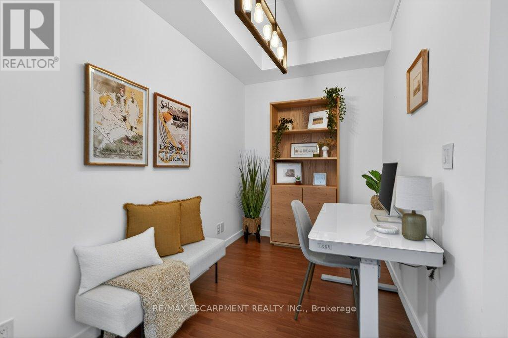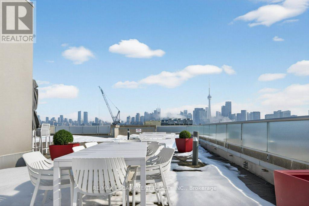 Welcome to trendy Kind West living. This affordable 1 bedroom plus den is filled with natural light and showcases open loft-inspired design with 9-foot ceilings. Step inside to a bright airy layout that offers effortless, self sufficient main-floor living at its best. The modern kitchen is both stylish and functional, featuring stainless steel appliances including a gas stove, ceramic backsplash, sleek countertops, track lighting and a movable island - perfect for entertaining or everyday use. The well-placed den just off the kitchen offers flexible space, ideal for a dining area, a home office or extra sleeping area. The spacious 4-piece bathroom is bright and contemporary, complete with ceramic backsplash and an oversized mirror. The primary bedroom features floor-to-ceiling windows that flood the space with natural light and a generous closet for ample storage. Laundry is conveniently found in-suite. Continue through the unit to a comfortable living area that opens onto your private balcony, equipped with a gas line and BBQ and stunning sunset views - an ideal setting to unwind. Residents enjoy exceptional building amenities including 24-hour concierge service, a rooftop terrace with BBQs and lounge seating, a fully equipped gym, a large party room, ample visitor parking and a non-smoking environment throughout. All of this is just steps from Trinity Bellwoods Park, Liberty Village, TTC transit, boutique shopping and some of the city's best restautants and nightlife. This is your opportunity to own a slice of vibrant King West living - at an affordable price. One underground space included. RSA (42223765)