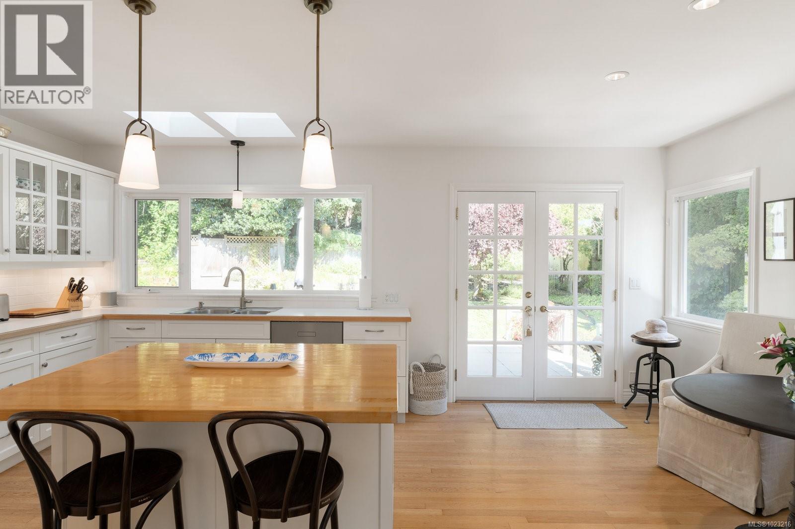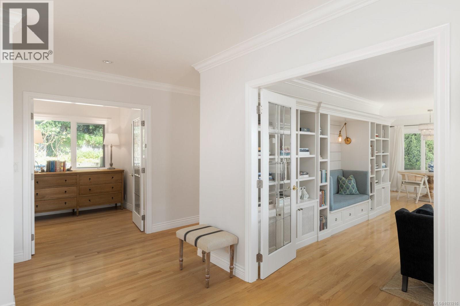 Welcome to 2944 Tudor Avenue, an exceptional West Coast home in the heart of the prestigious Ten Mile Point neighborhood. Set on a beautifully landscaped, south-facing 0.32-acre lot, this elegant 5-bedroom, 4-bathroom home offers over 4,200 sq ft of meticulously redesigned living space - this home blends modern refinement with timeless coastal charm. Step into a grand foyer and experience the warmth of radiant-heated oak, limestone, travertine, and wool floors. The bright, airy chef’s kitchen anchors the main level and opens to a breakfast nook and French doors that lead to an English-style garden oasis. The formal living and dining areas are wrapped in large windows showcasing breathtaking ocean and mountain views, bathing the home in natural light. Upstairs, the luxurious primary suite features a spa-inspired ensuite, a generous custom walk-in closet, and a cozy window bench with panoramic ocean and mountain views. Additional bedrooms offer flexibility for family, guests, or office use. The lower levels include a gym, wine room, a custom library wall with built-in seating and task lighting, in addition to a private guest suite complete with its own full kitchen and in-suite laundry. This thoughtfully appointed home includes on-demand hot water, a heated double garage, and a 9-zone irrigation system. Quality of the building materials is second-to-none, the home has been meticulously maintained ensuring it remains in pristine condition for its new owners. Outdoor spaces are complemented by mature trees, vibrant gardens, and visits from local wildlife—including hummingbirds, cranes, deer, and even rock lizards. Located just steps from the Pacific Ocean, the University of Victoria, scenic parks, beaches, and the Konukson Park and Mystic Vail Trailheads, this home offers a rare balance of privacy, elegance, and connection to nature in one of Victoria’s most sought-after neighborhoods. (30424966)